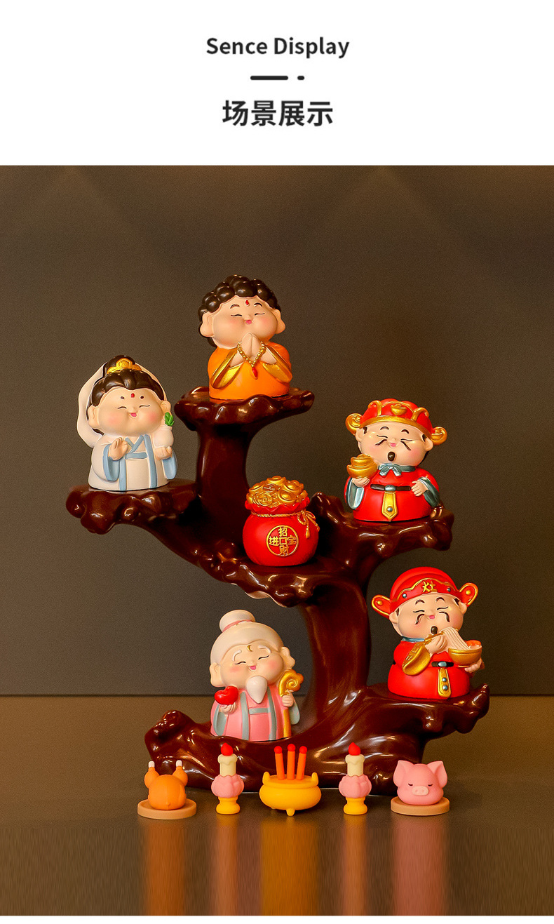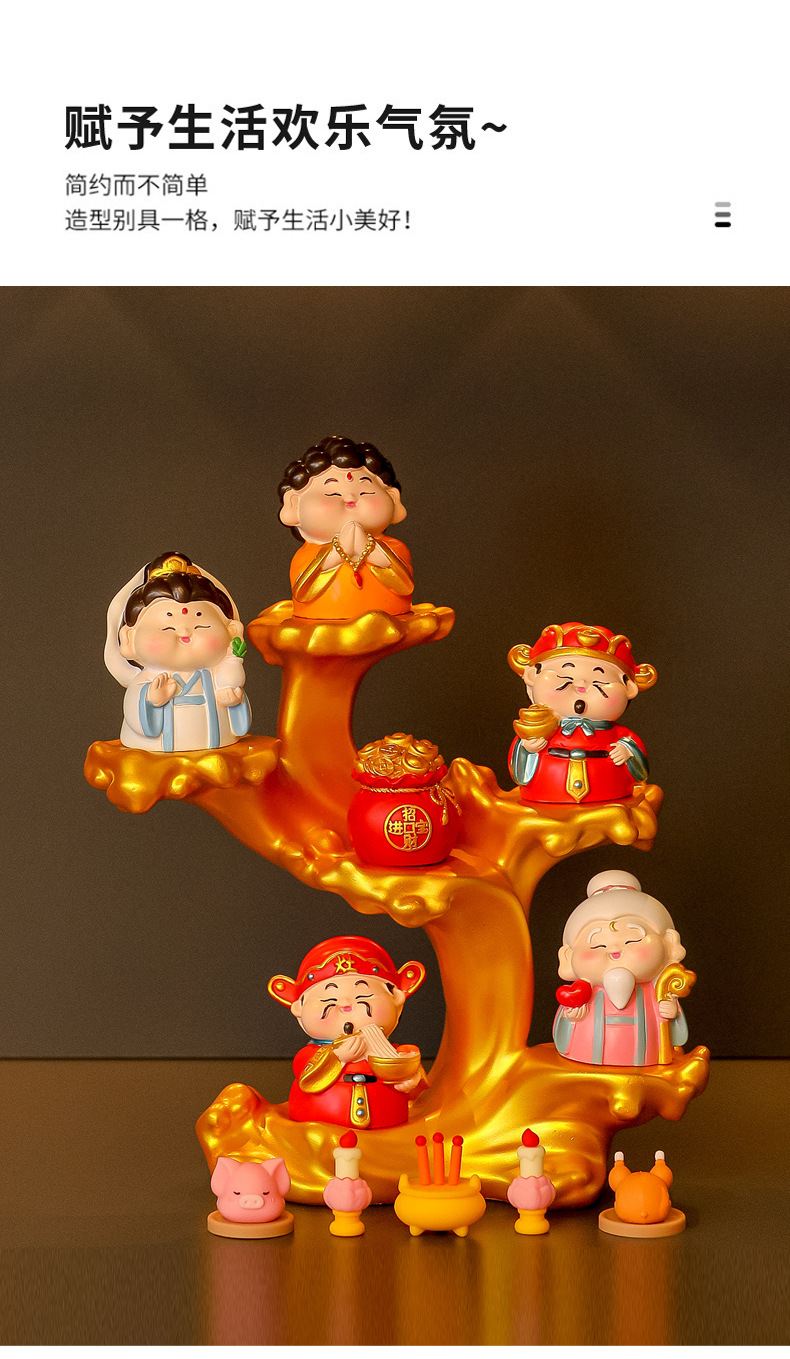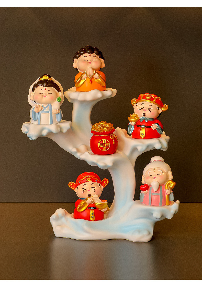 해피 요정 샹윈 디스플레이 스탠드 사무실 입구 카운터 장식 다양한 부의 신 데스크탑 스토리지 랙 장식