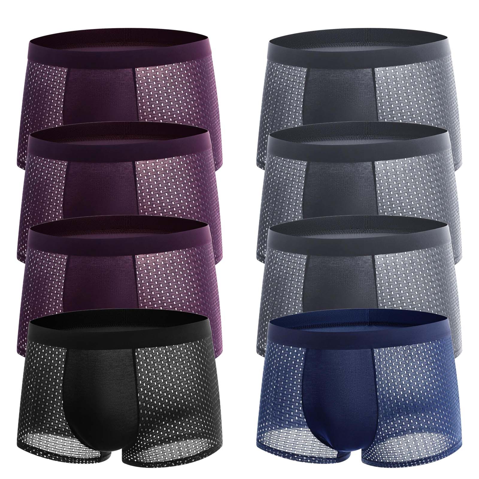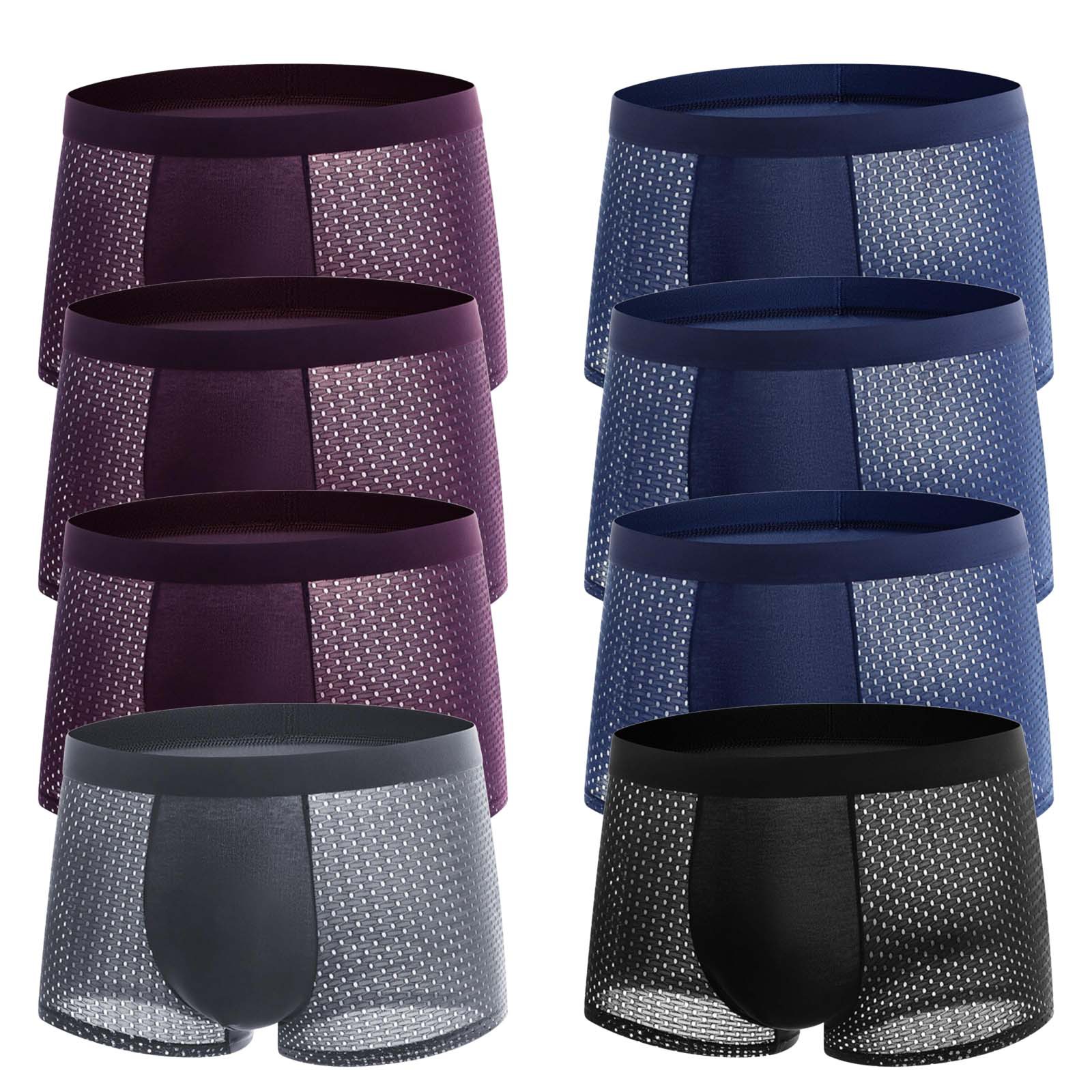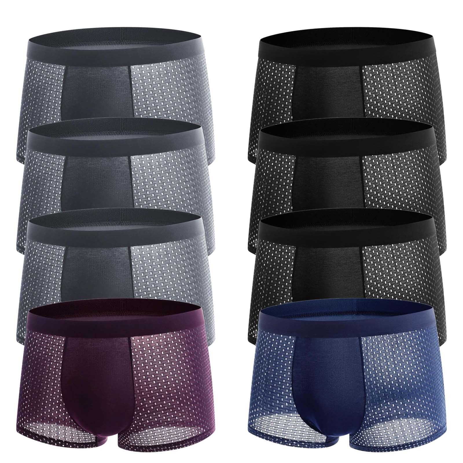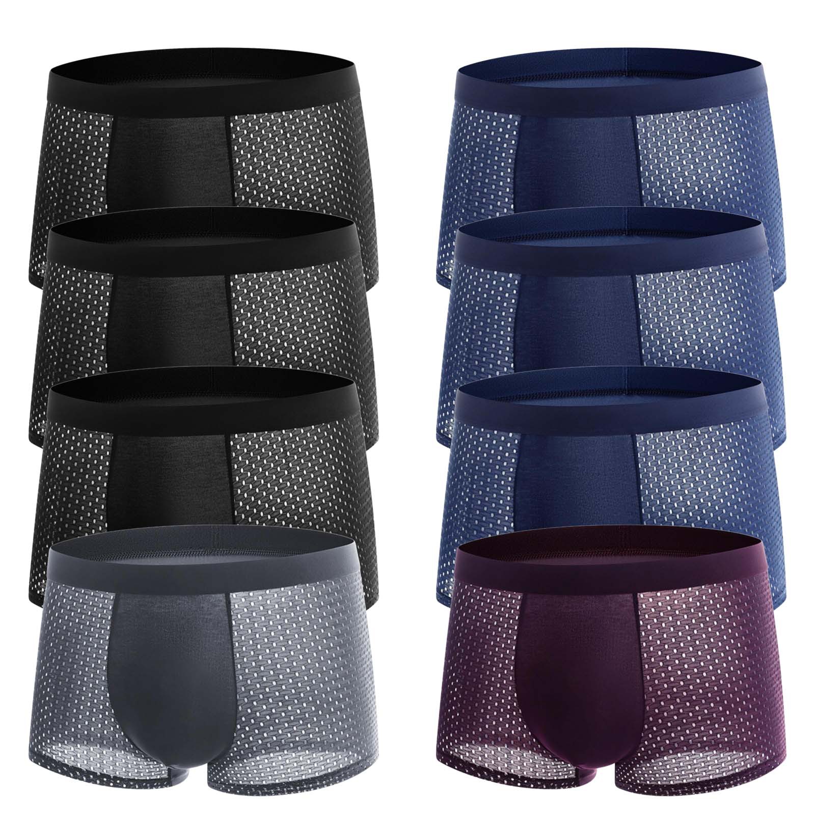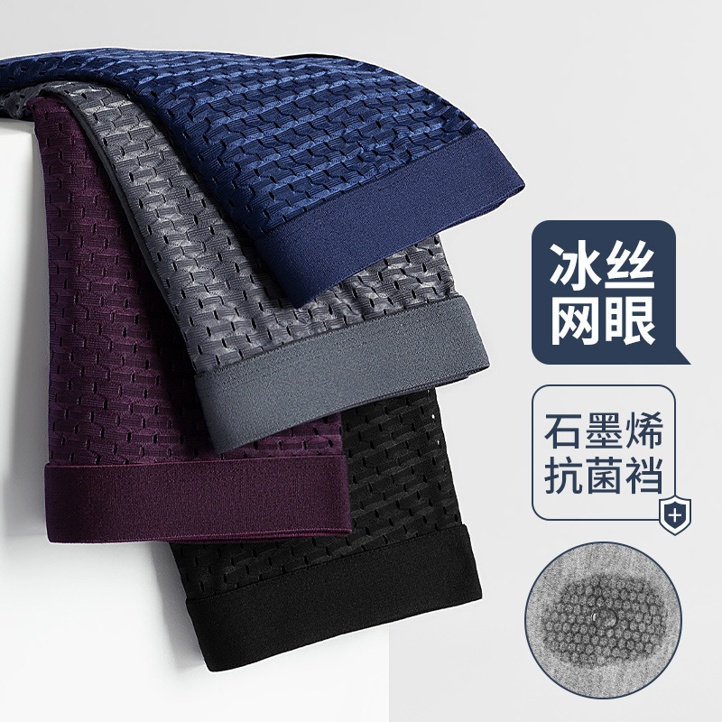 남성용 여름 얼음 메쉬 속옷 도매 전체 메쉬 하프 메쉬 통기성 중간 허리 편안한 사각형 복서 팬티스토어 가기