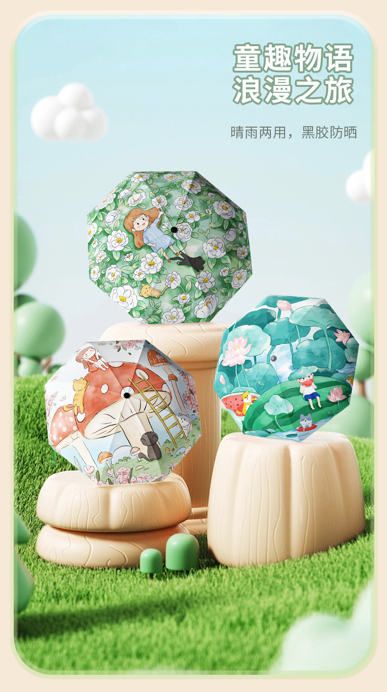 만화 8 뼈 70% off 우산 UV 비닐 파라솔 남성과 여성 솔리드 컬러 방풍 어린이 70% off 우산 태양 우산 비 또는 빛 우산스토어 가기