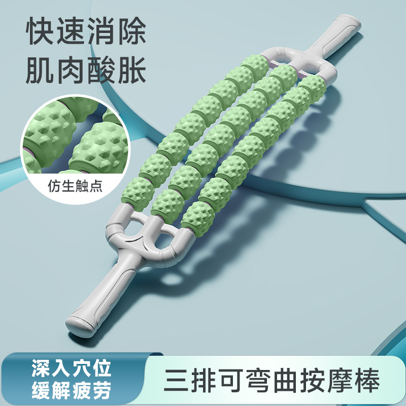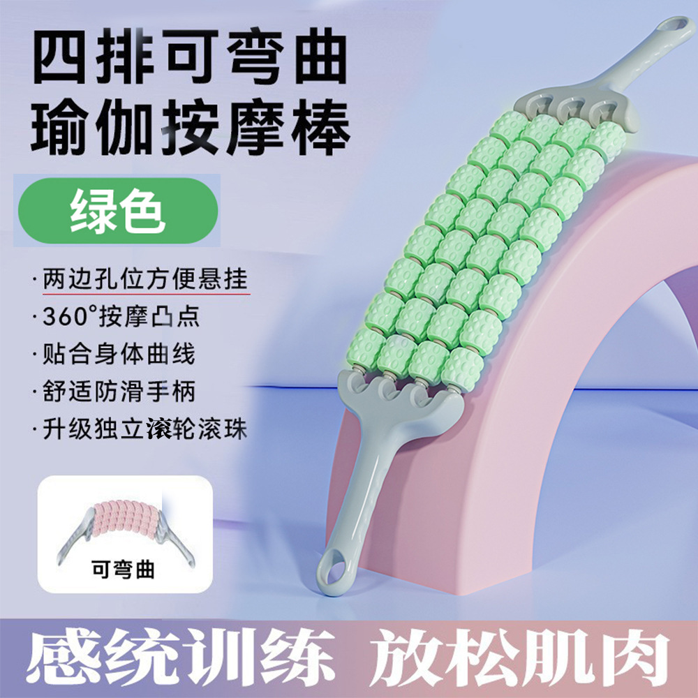 • [업그레이드된 굵은 4열 구부릴 수 있음] 32구슬 녹색 마사지 스틱