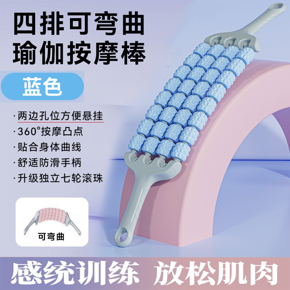 4 줄의 유연한 마사지 스틱 요가 메이스 아이들은 훈련 근육 이완 마사지가 머리카락의 세대가 될 수 있다고 느낍니다.스토어 가기