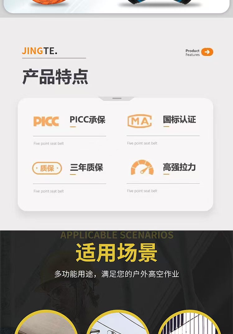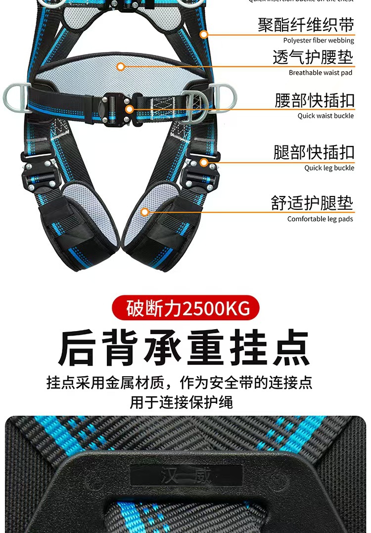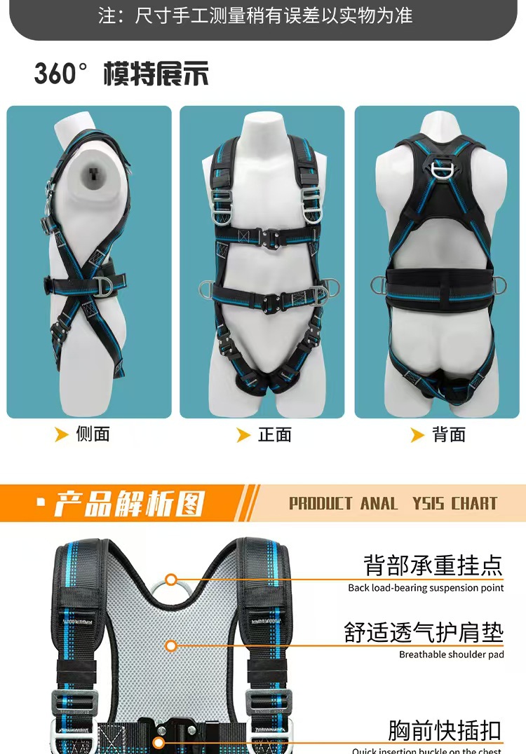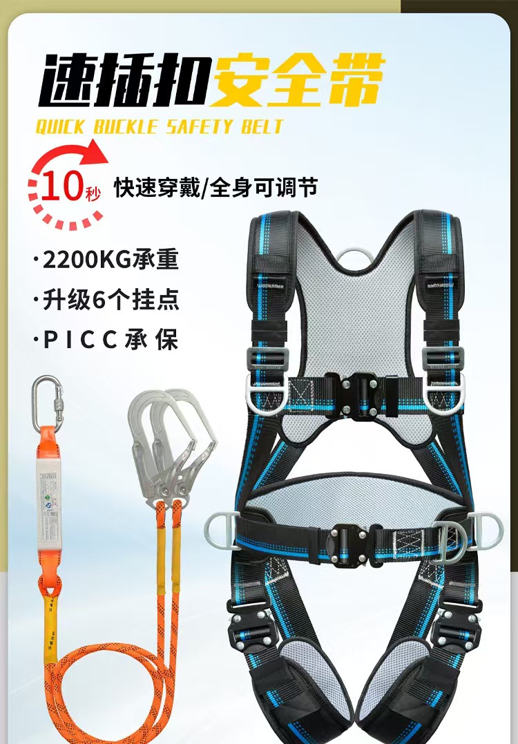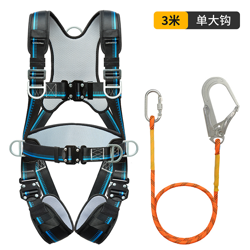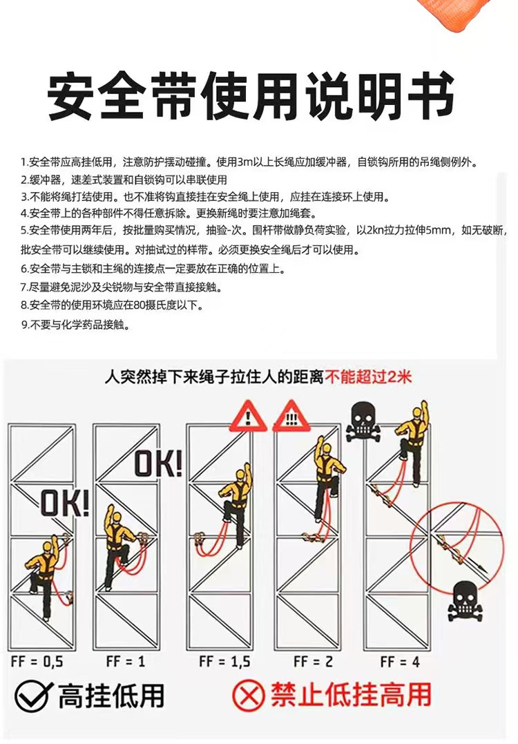 국가 표준 5점식 등 보호 및 다리 보호 업그레이드된 추락 방지 전신 안전벨트 고공 작업 건설용 잠금장치 포함스토어 가기