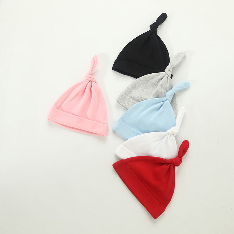 신생아 모자, 얇은 면 소재, 남녀공용, 단색, 0-3개월 아기, 봄, 가을용, 순면