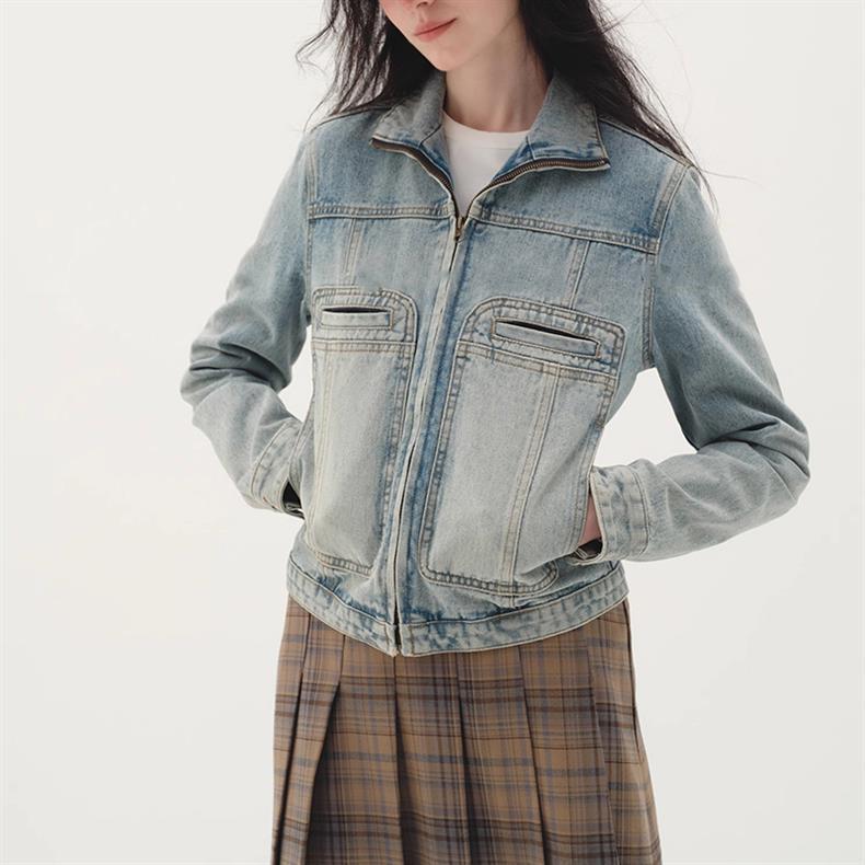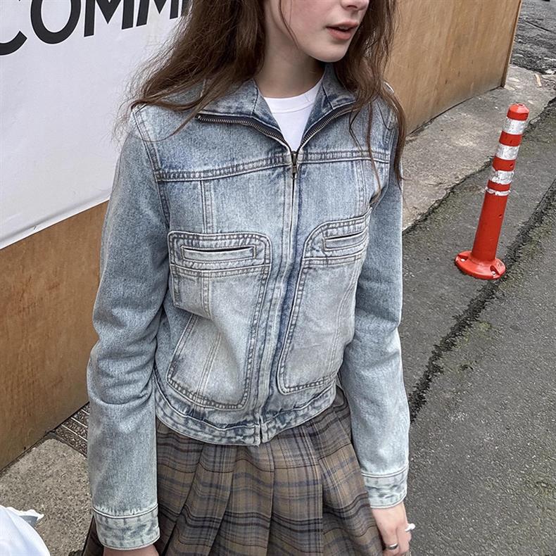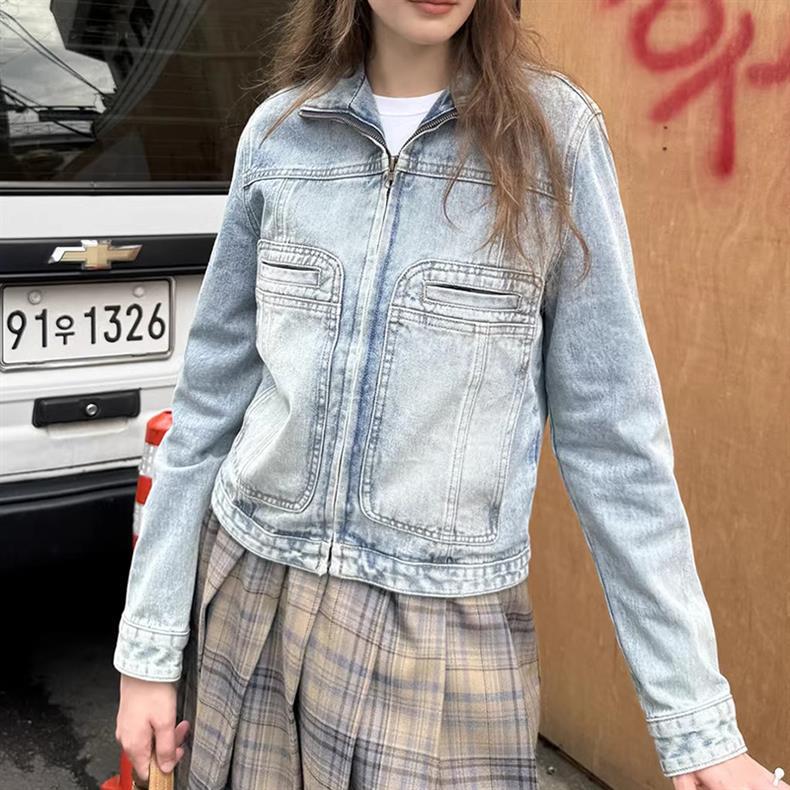 스트리트 레트로 올드 라이트 블루 데님 재킷 여성 봄, 가을 새로운 디자인 작은 재킷 짧은 탑