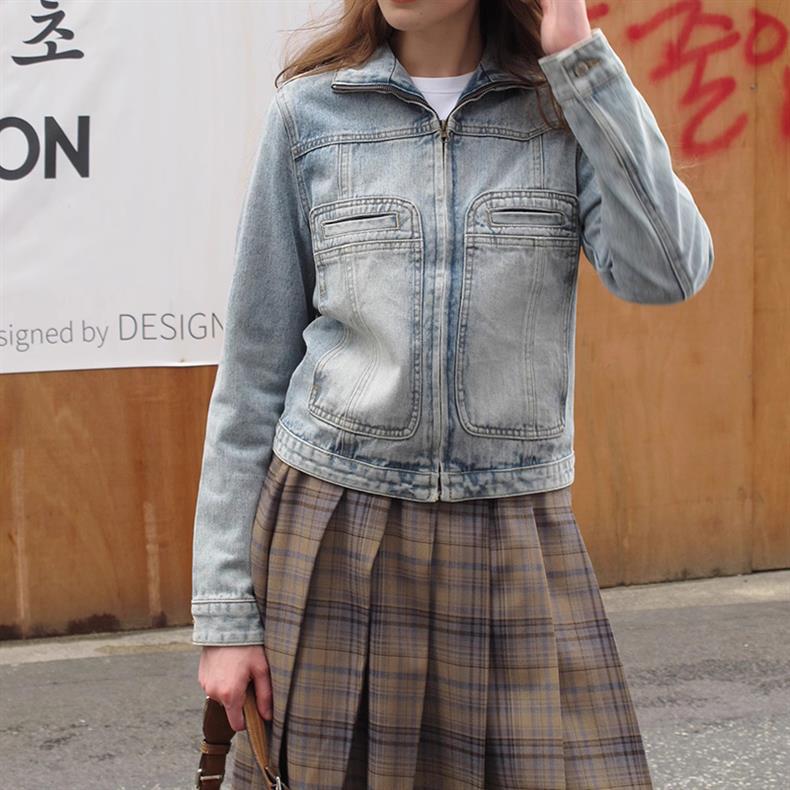 스트리트 레트로 올드 라이트 블루 데님 재킷 여성 봄, 가을 새로운 디자인 작은 재킷 짧은 탑스토어 가기