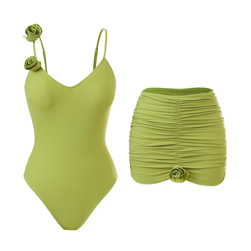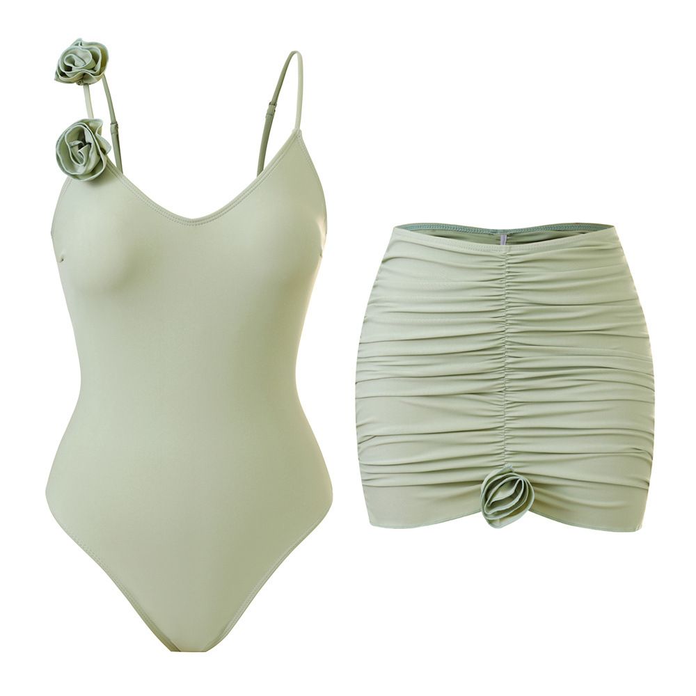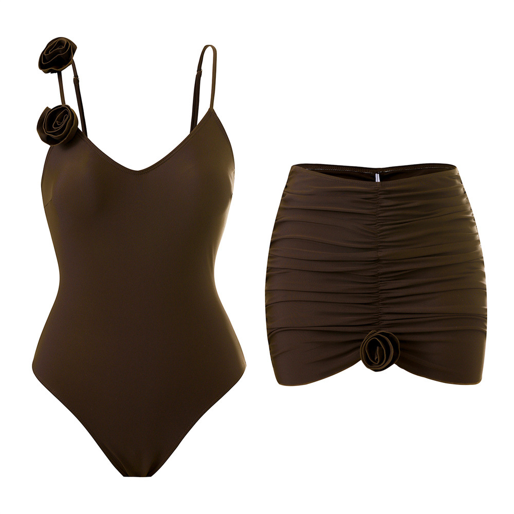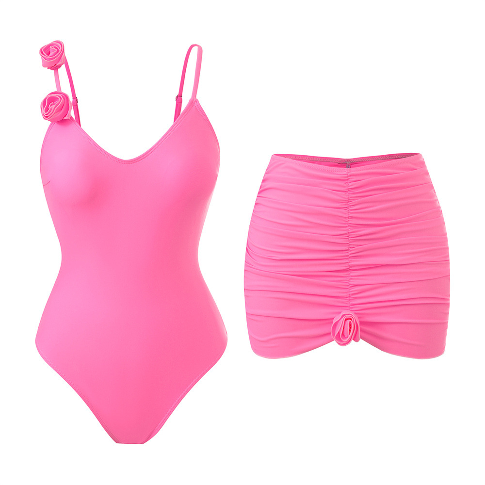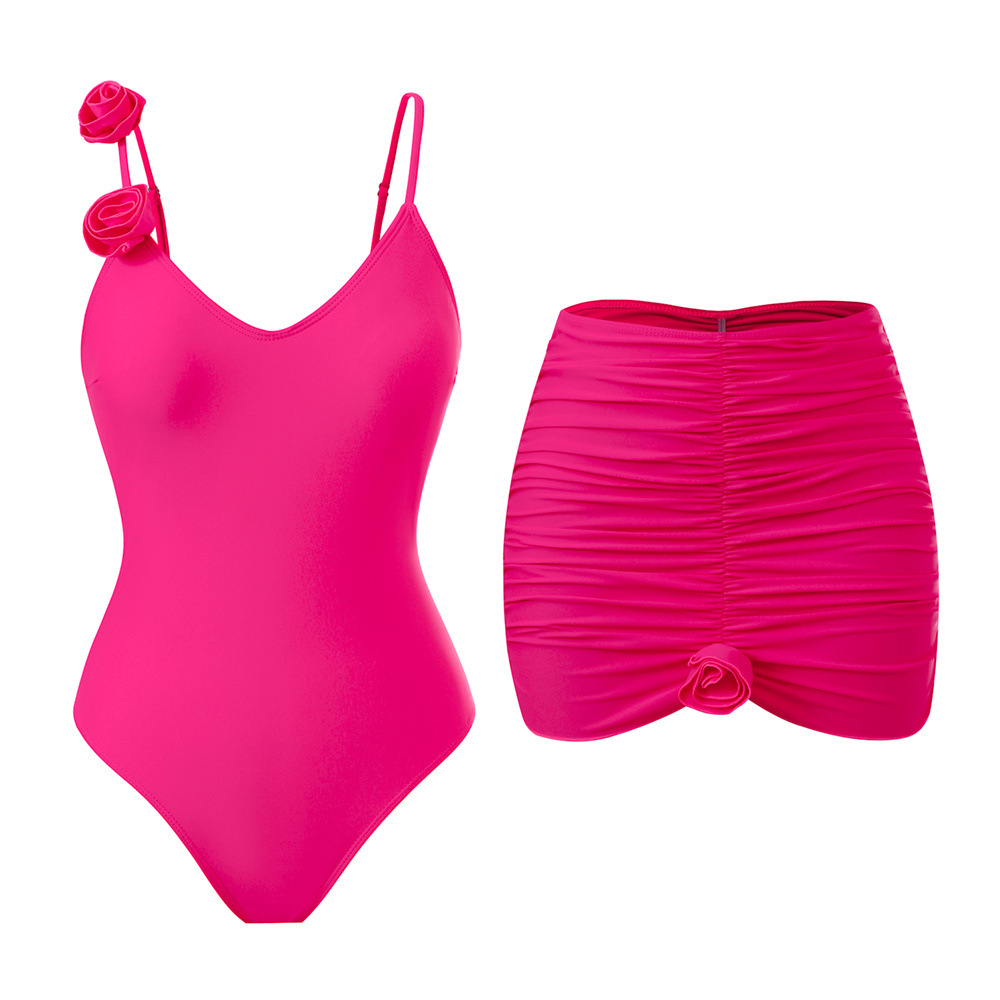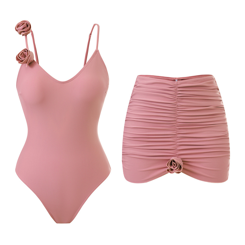 Spot 2025 유럽과 미국의 패셔너블한 섹시한 여성 수영복, 배를 커버하고 슬림한 원피스 나일론 입체 꽃 수영복 세트