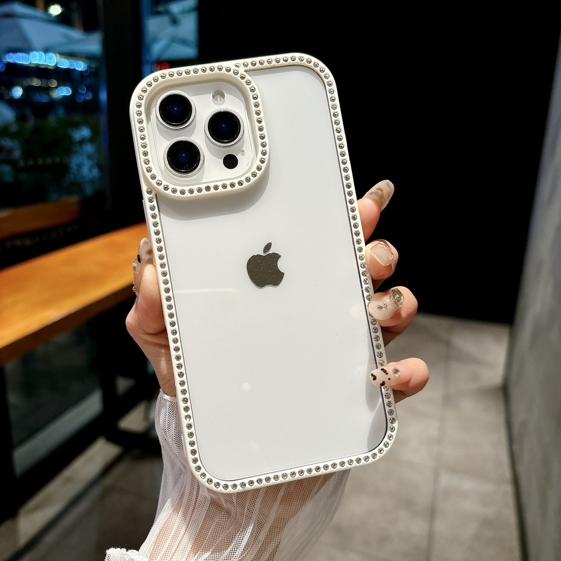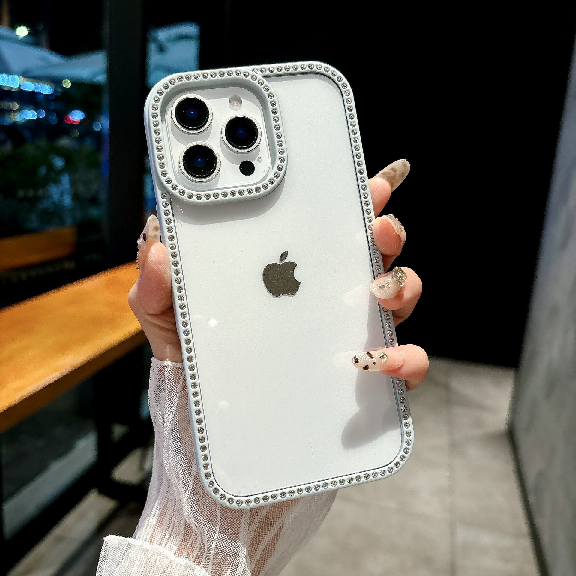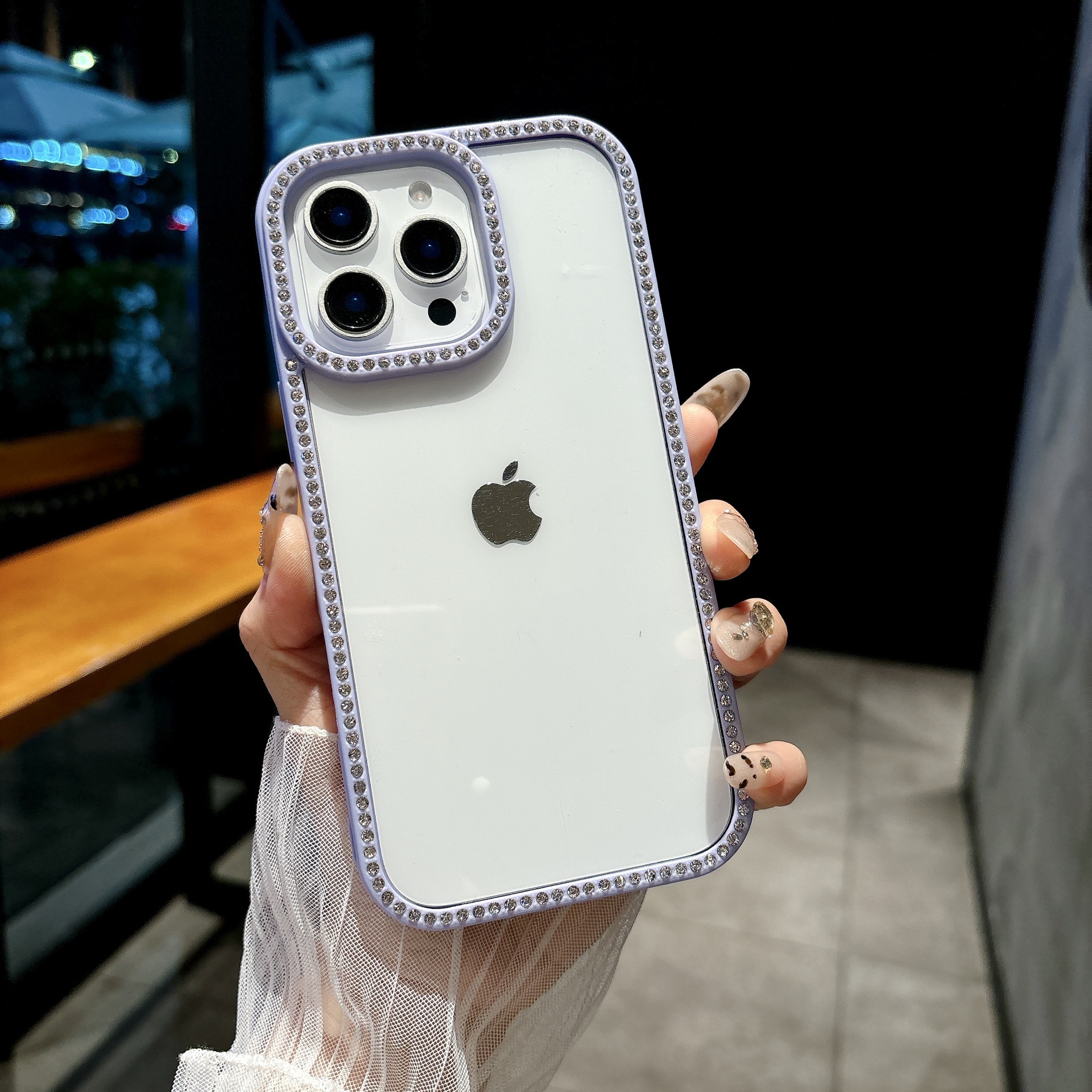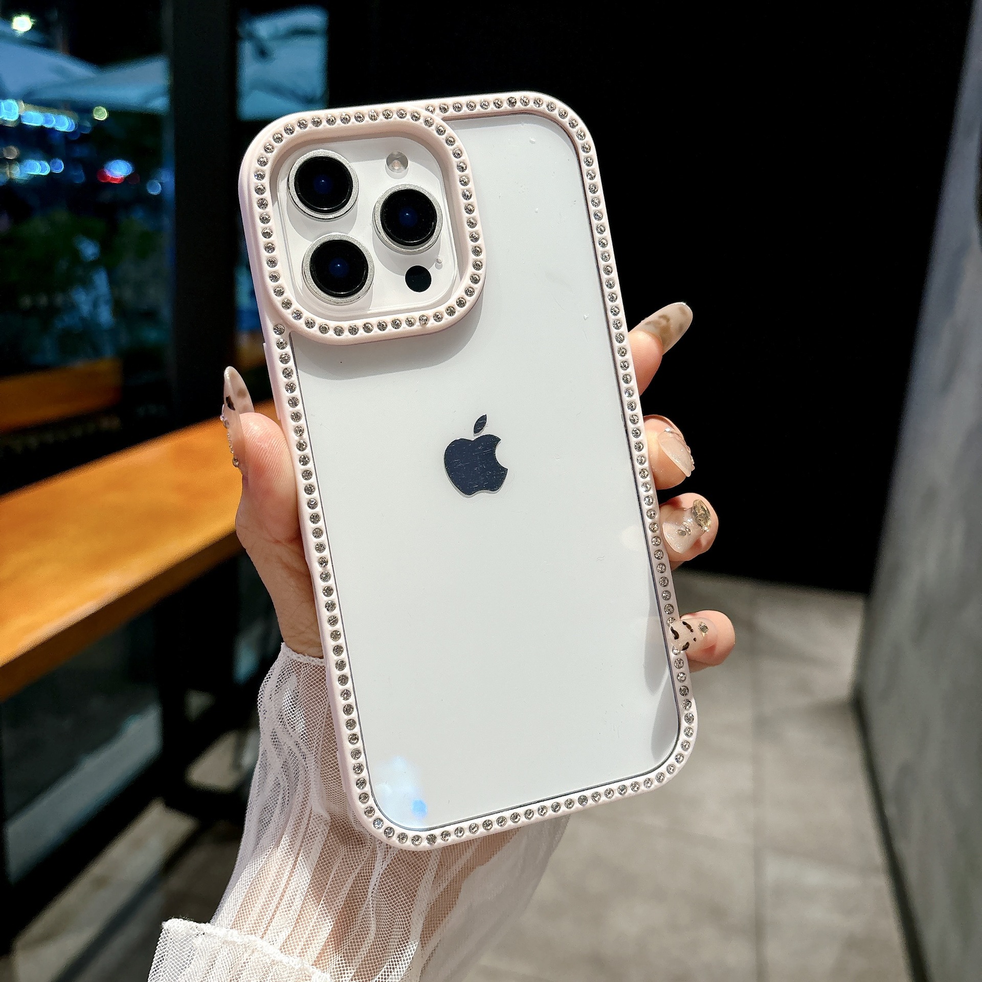 产品特点:ins糖果色闪钻边框 高清高透 全包边防摔 预留挂绳口!