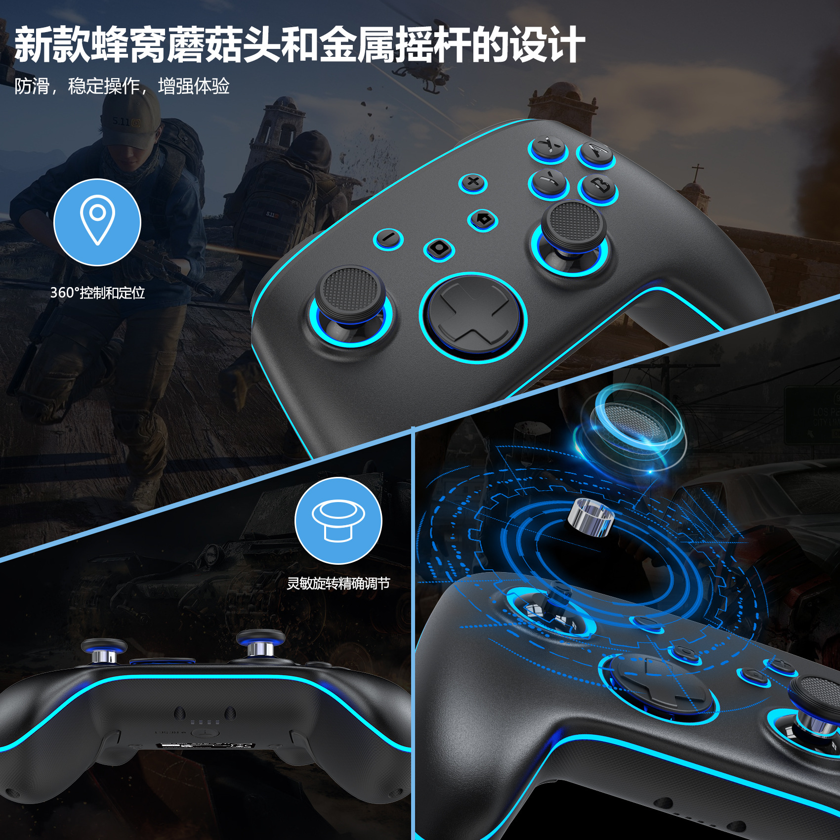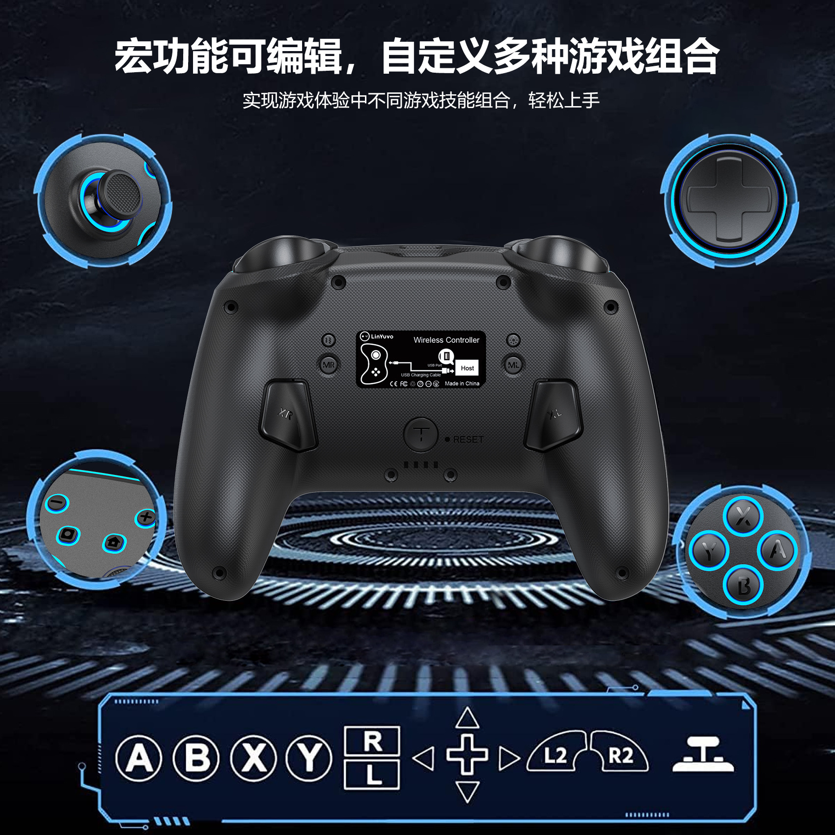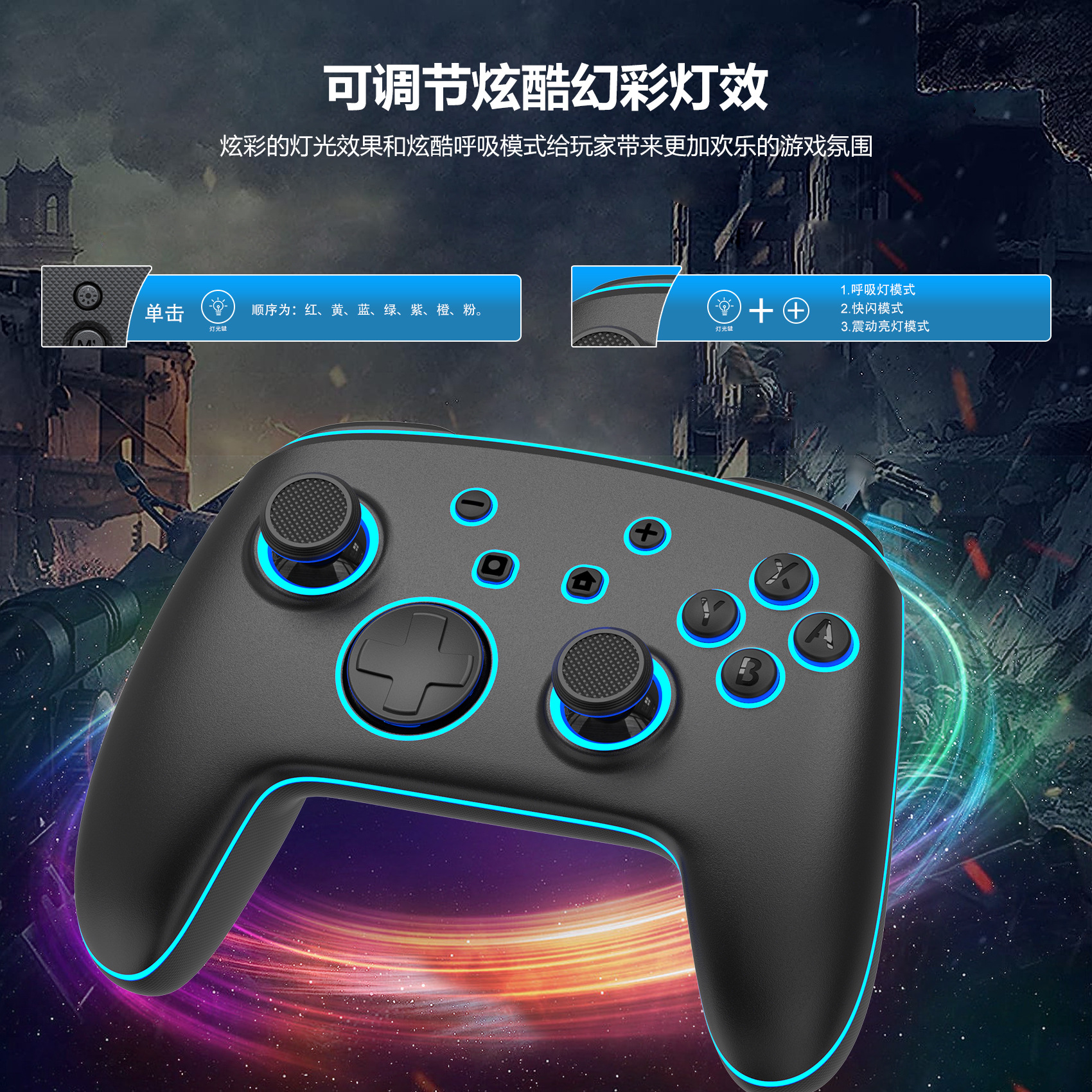 LinYuvo PC/스위치/IOS 블루투스 게임 컨트롤러 RGB 조명 홀 모델