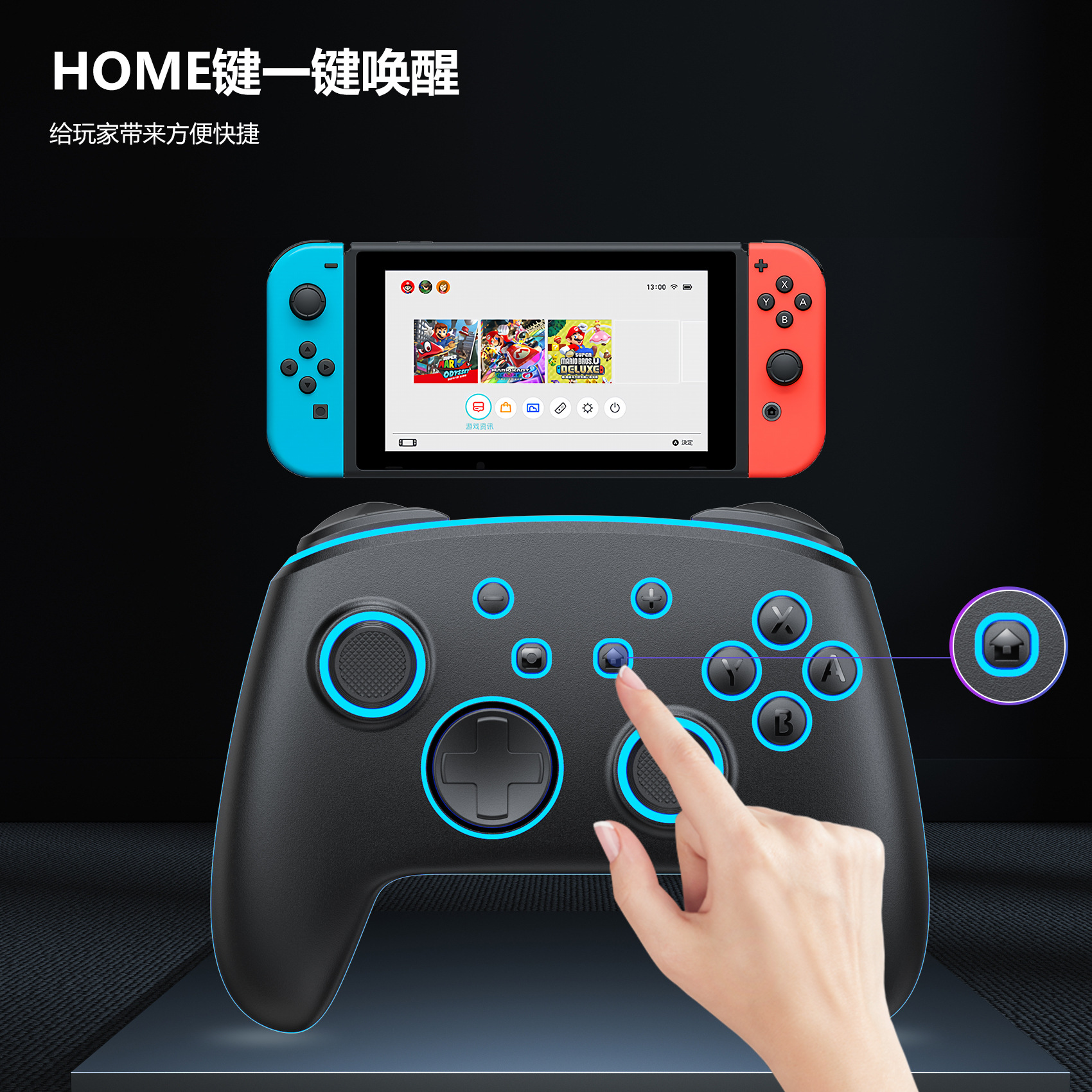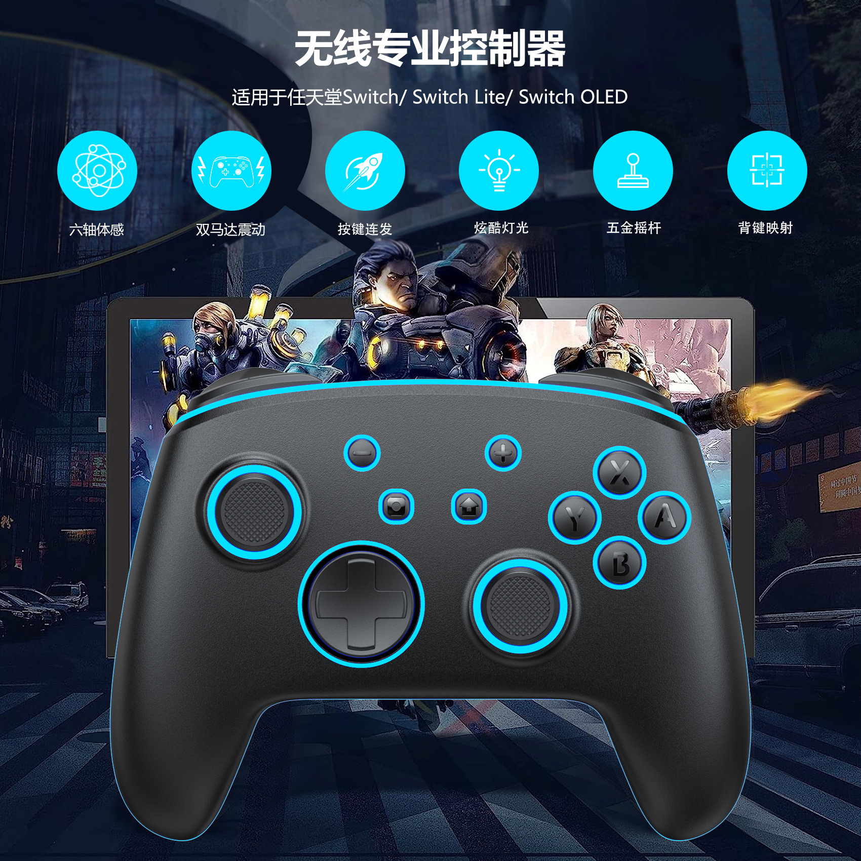 LinYuvo PC/스위치/IOS 블루투스 게임 컨트롤러 RGB 조명 홀 모델스토어 가기