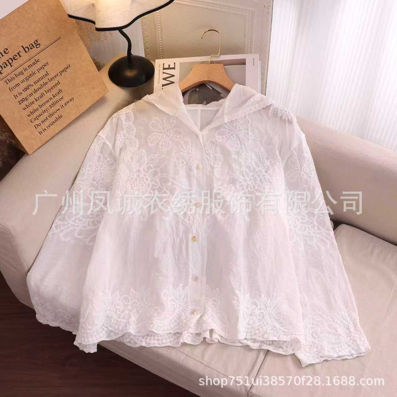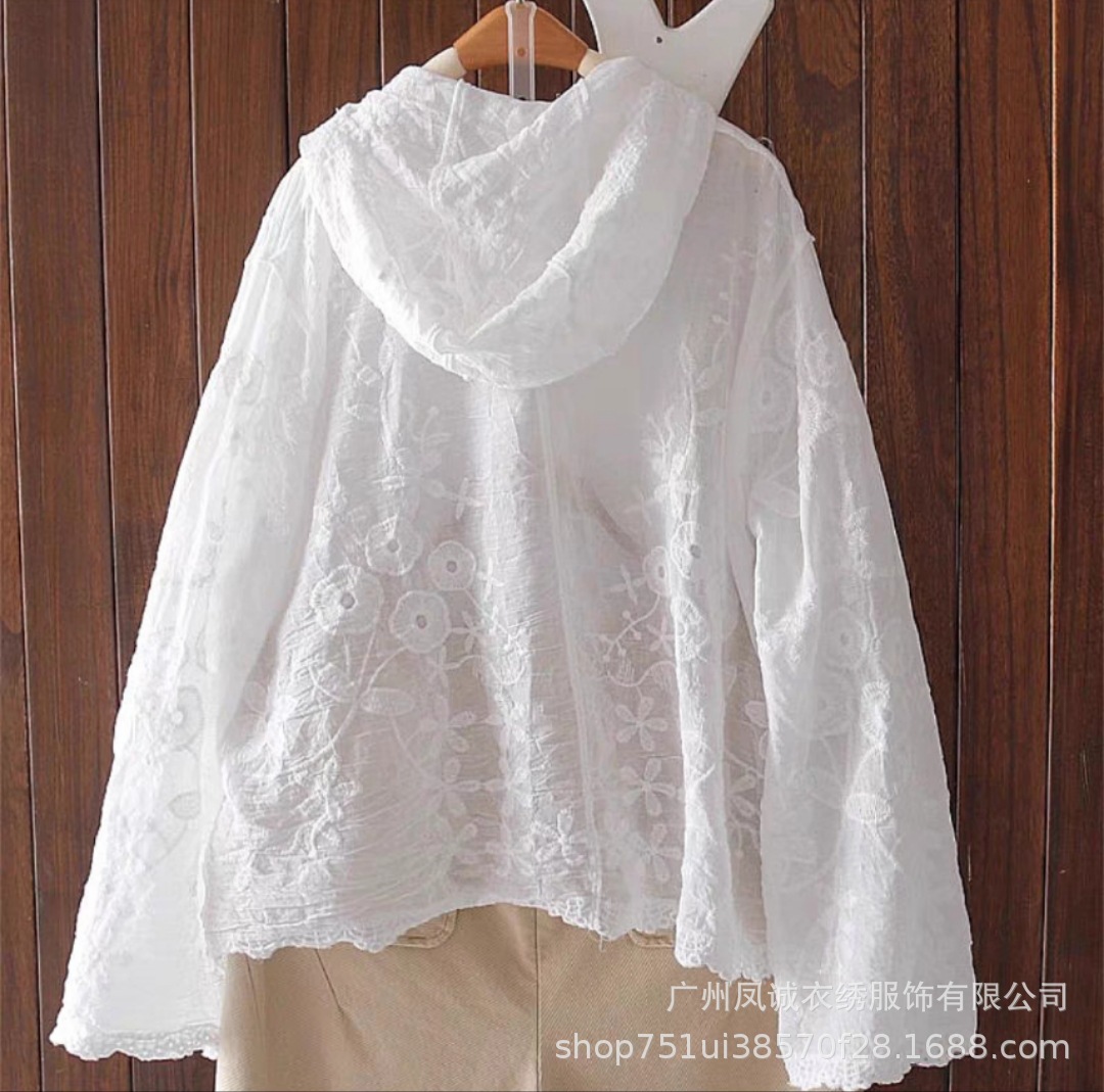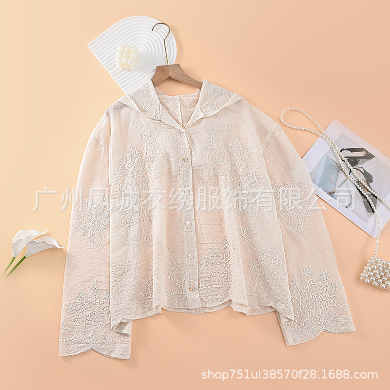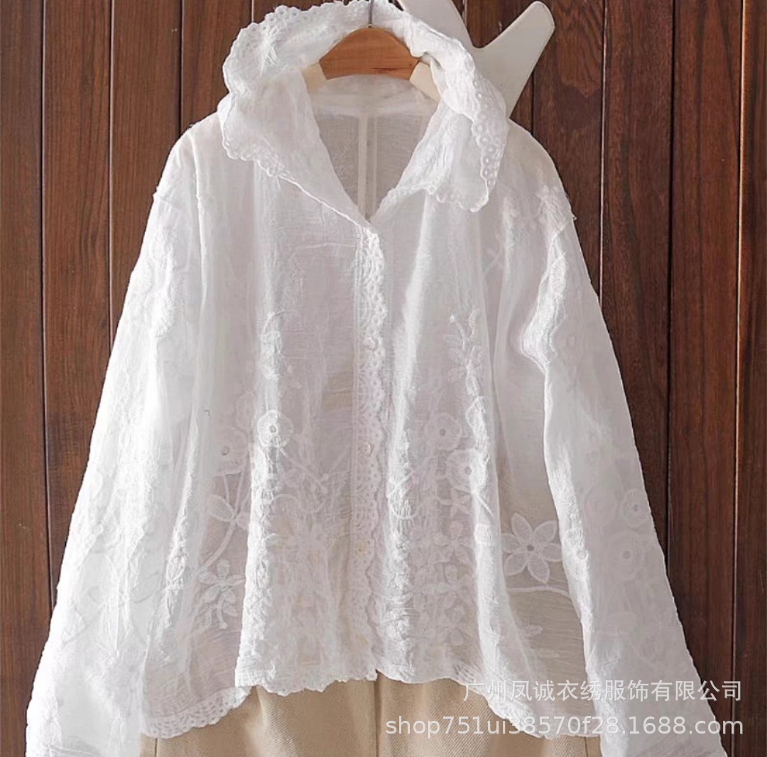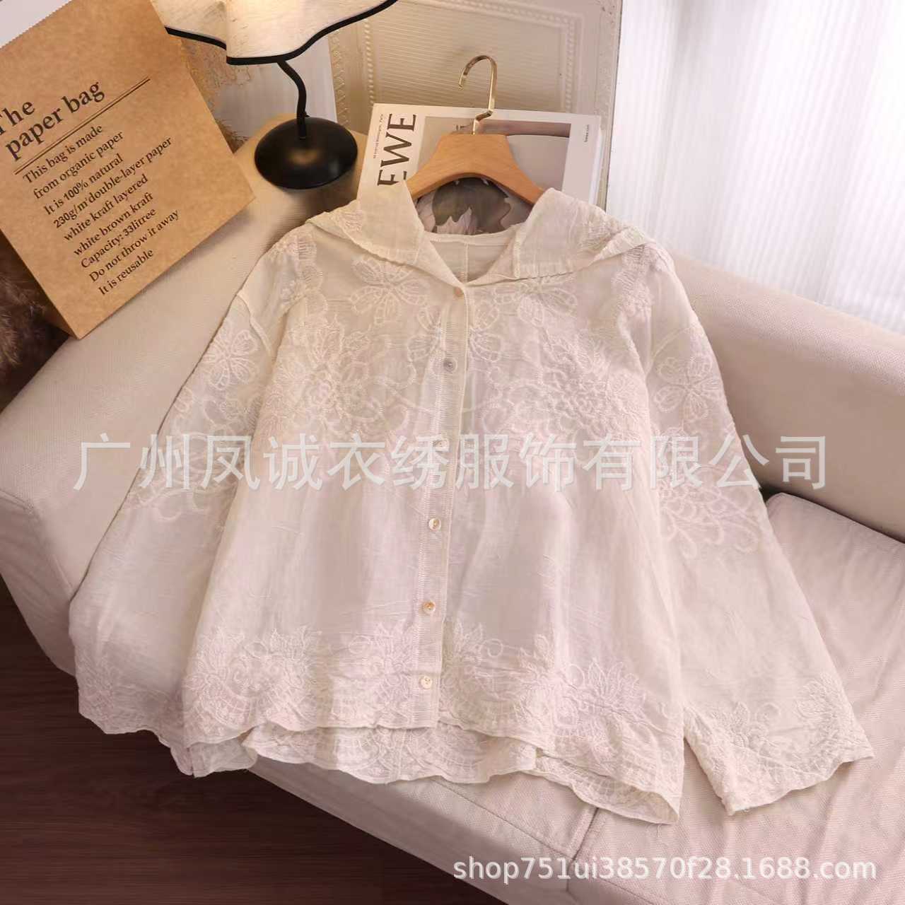 여성을 위한 포레스트 스타일 스위트 후드 예술적 자수 후드 탑, 슬림하고 루즈하며 다재다능한 싱글 브레스트 긴팔 셔츠