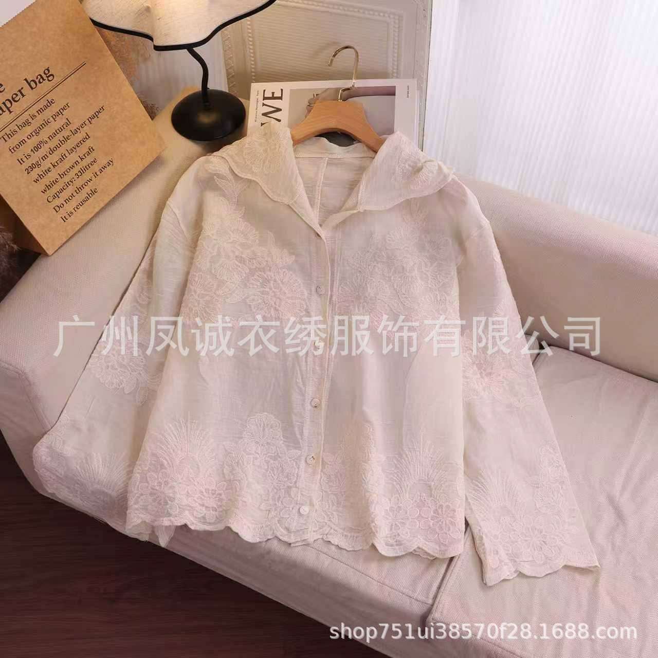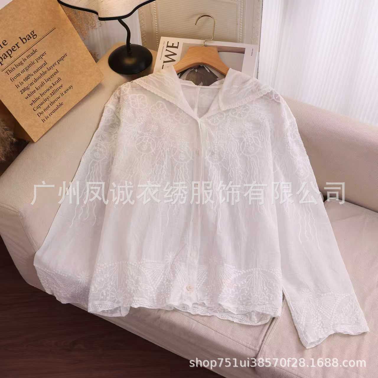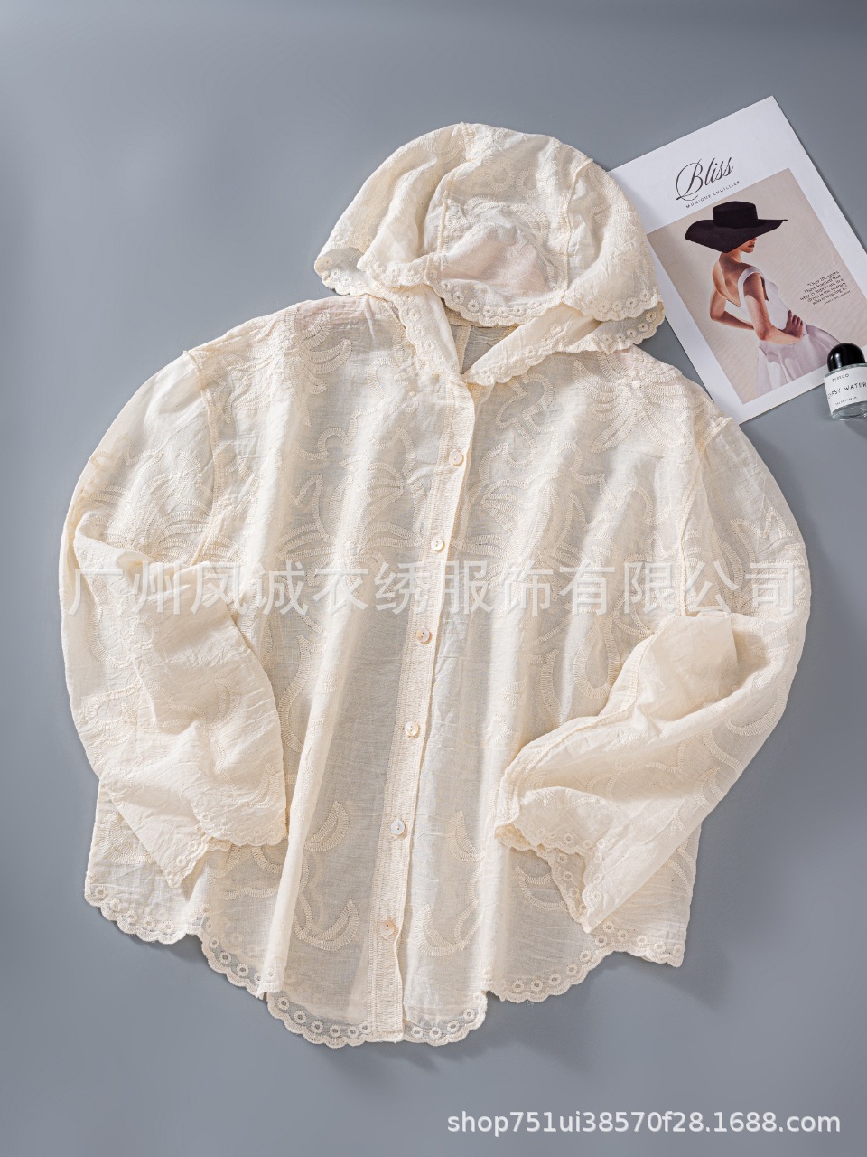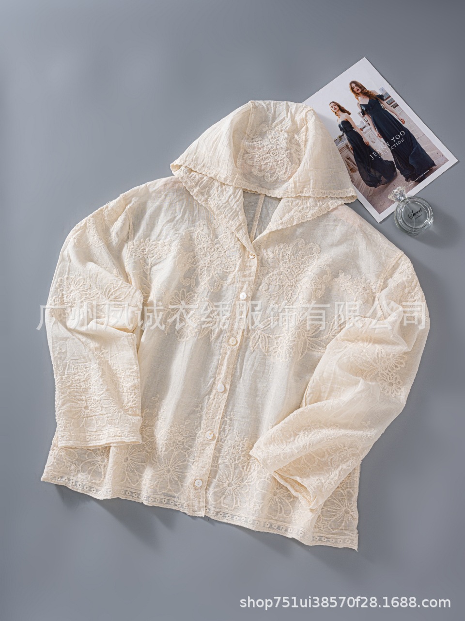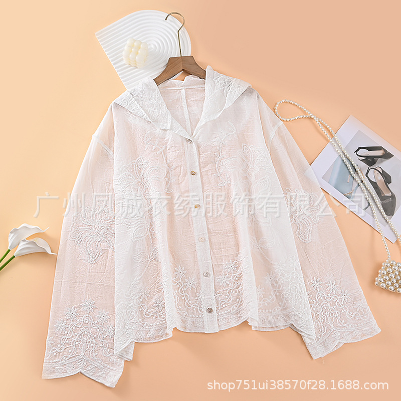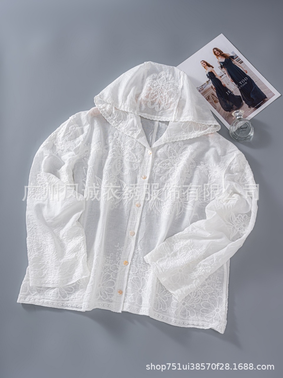 여성을 위한 포레스트 스타일 스위트 후드 예술적 자수 후드 탑, 슬림하고 루즈하며 다재다능한 싱글 브레스트 긴팔 셔츠