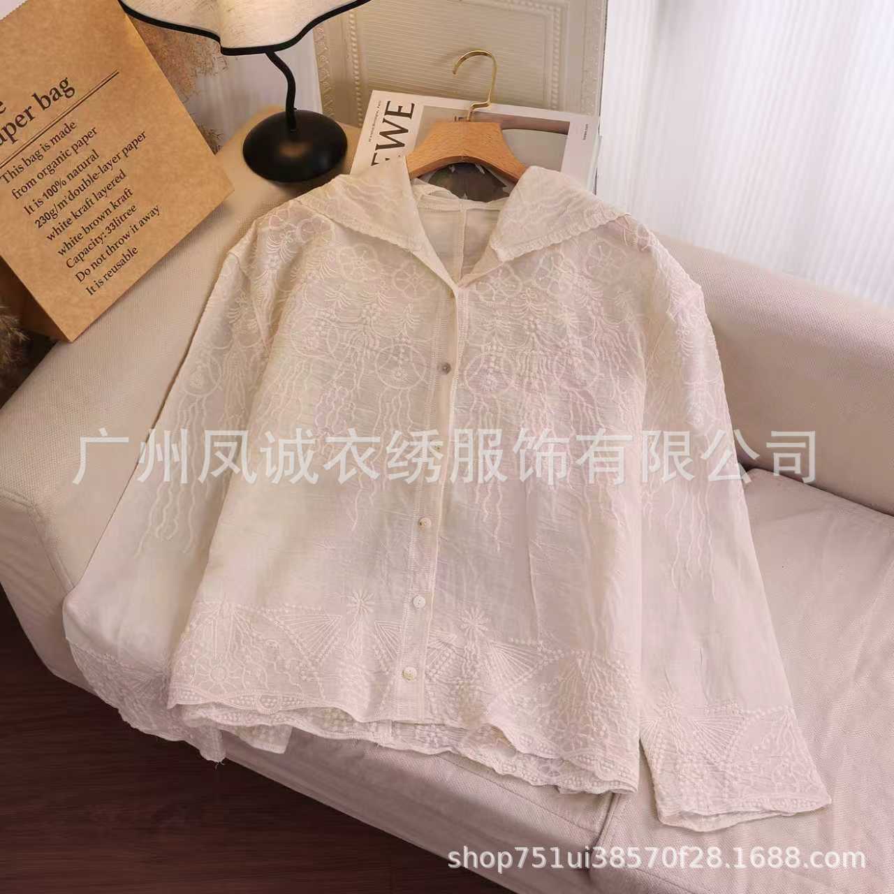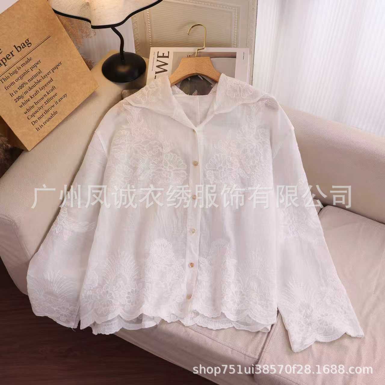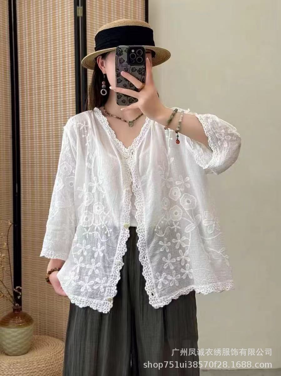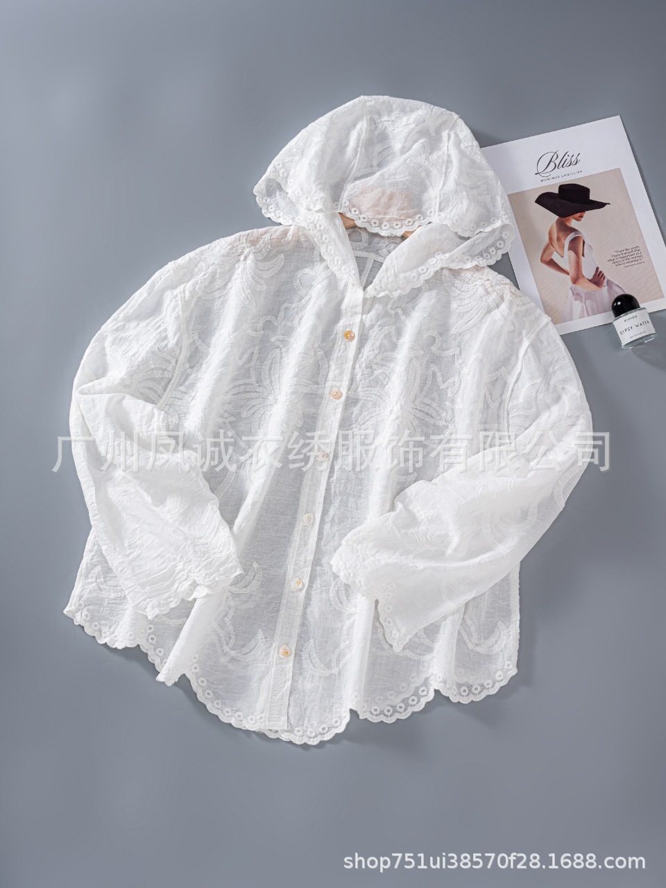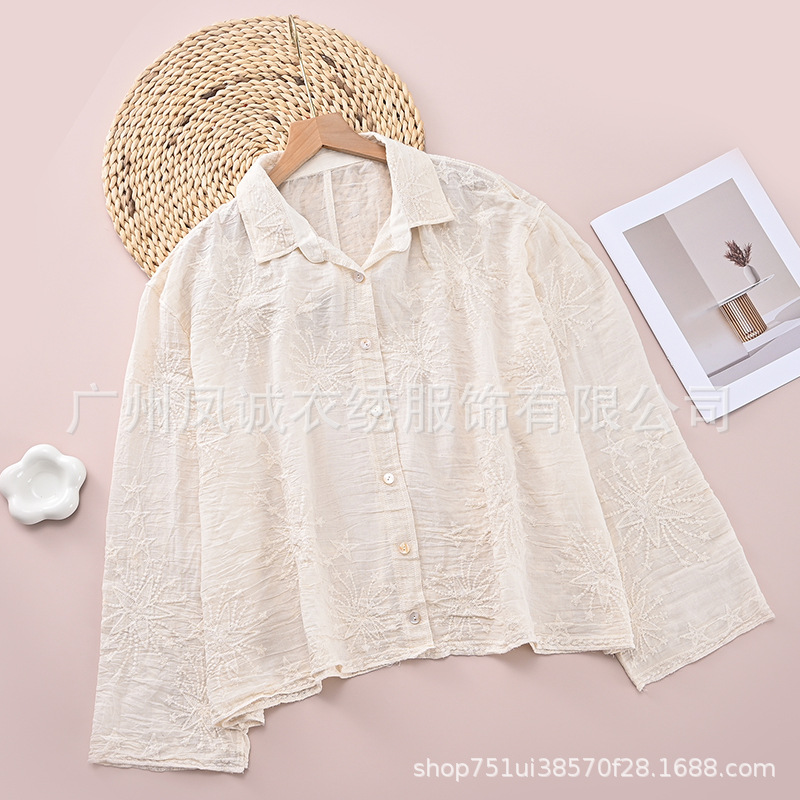 여성을 위한 포레스트 스타일 스위트 후드 예술적 자수 후드 탑, 슬림하고 루즈하며 다재다능한 싱글 브레스트 긴팔 셔츠