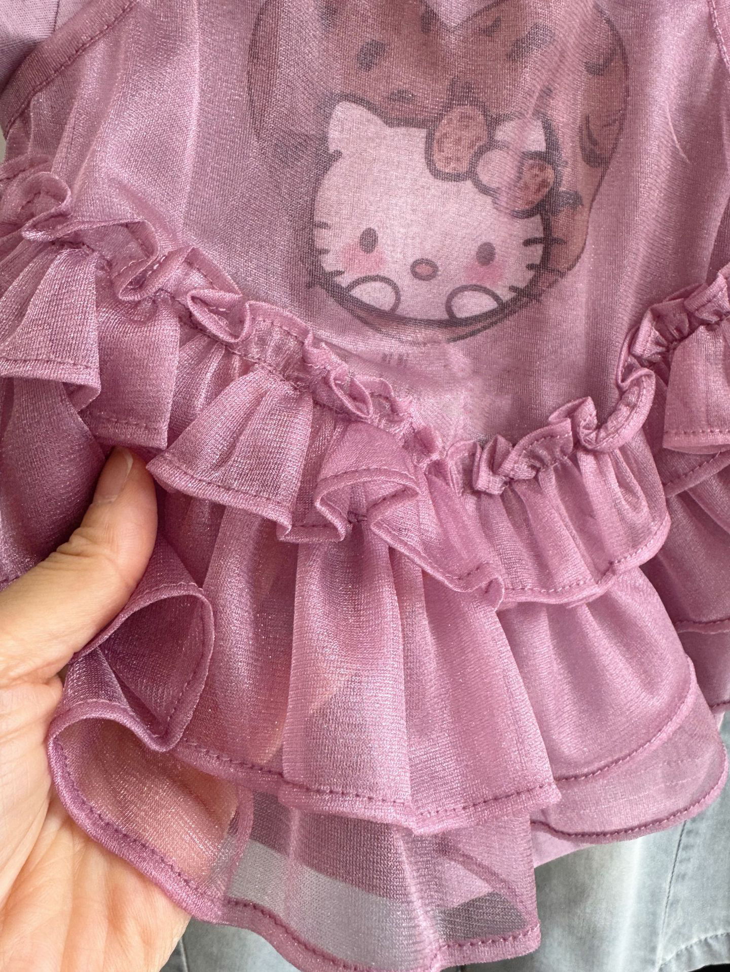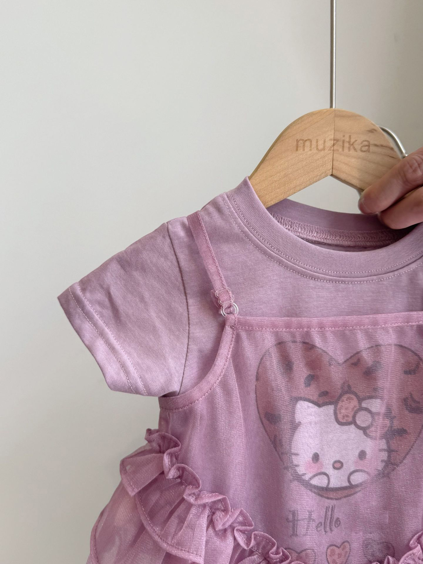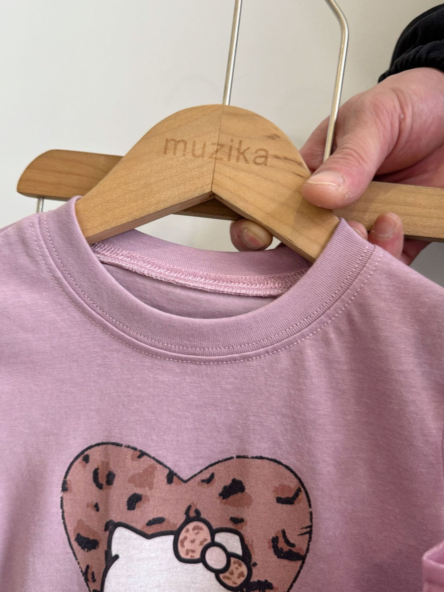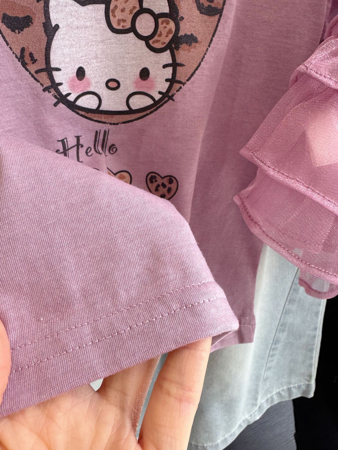 2025 새로운 여름 소녀 티셔츠 만화 레이스 라운드 넥 서스펜더 핑크 탑 청바지 정장스토어 가기