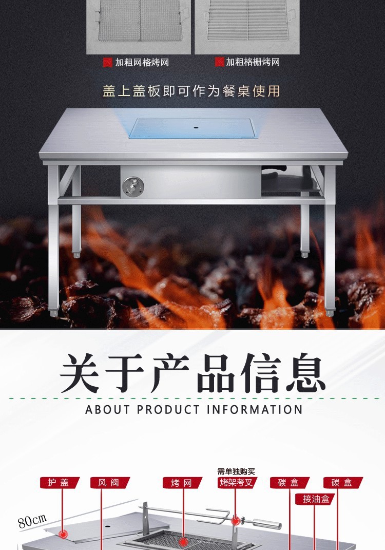 상업용 무연 스테인레스 스틸 바베큐 테이블 셀프 서비스 숯 야외 스톨 홈 바베큐 양고기 다리 스토브 그릴 및 끓이기 올인원스토어 가기
