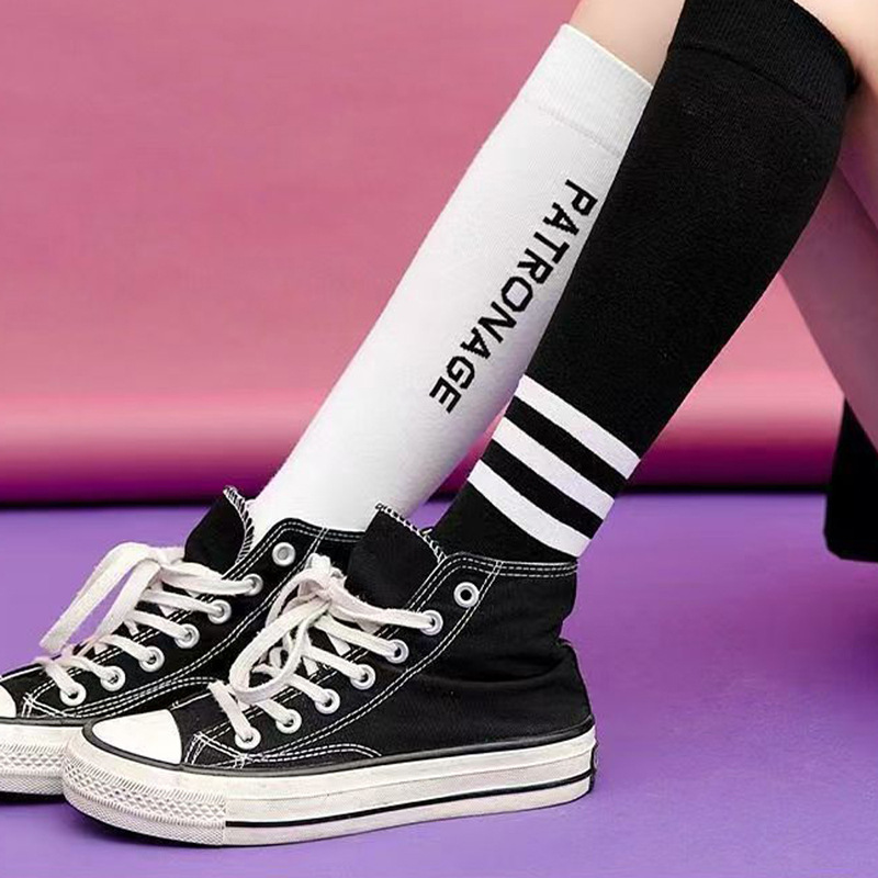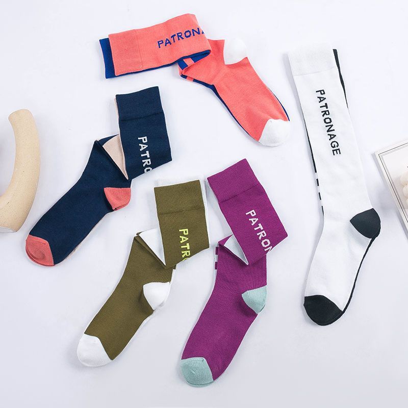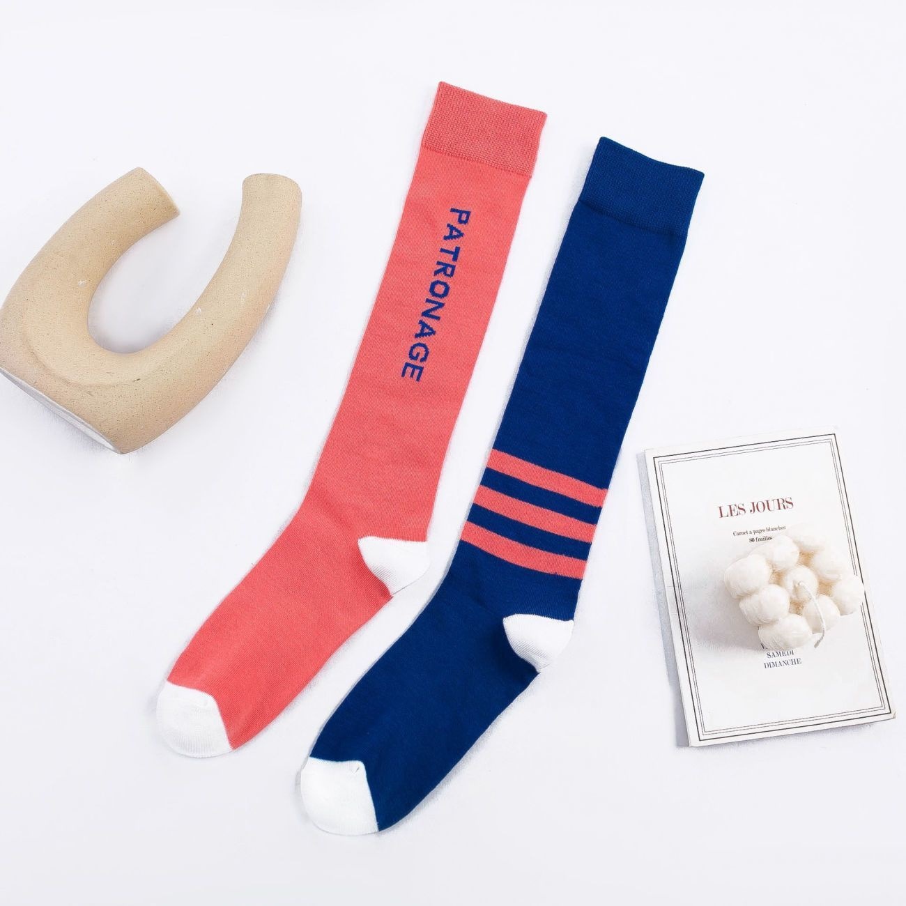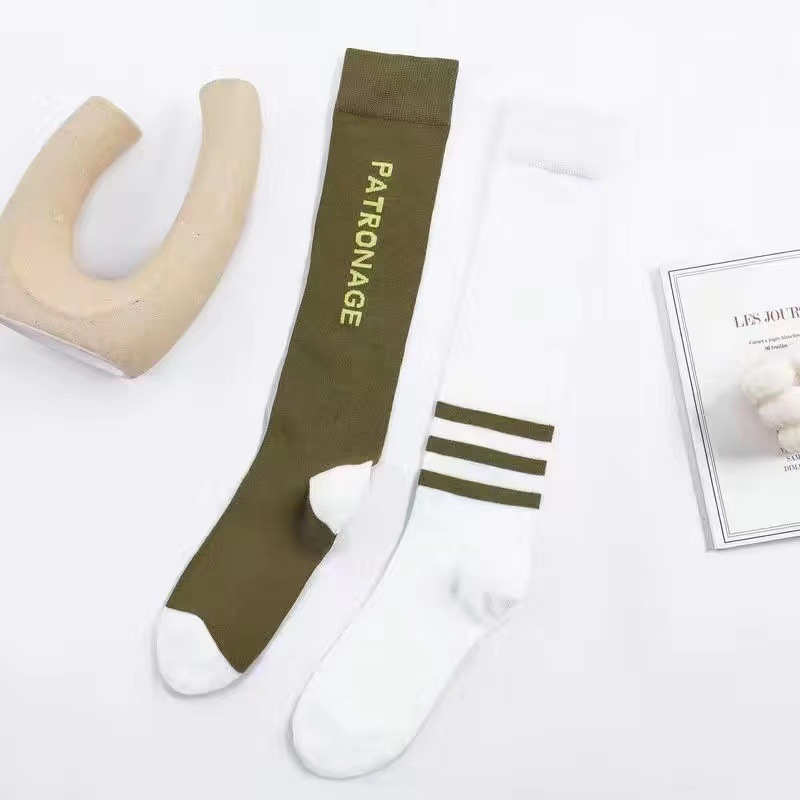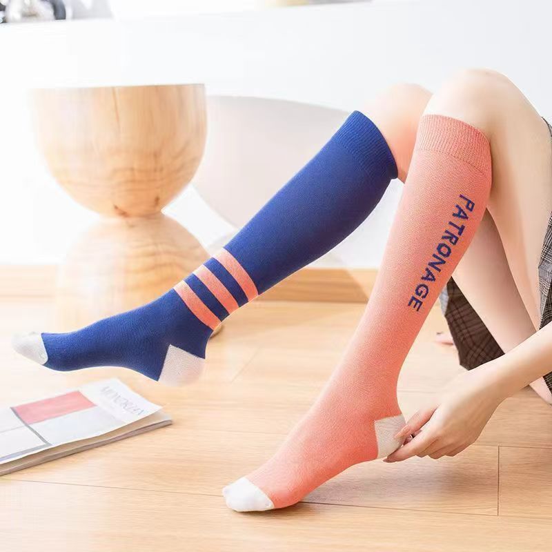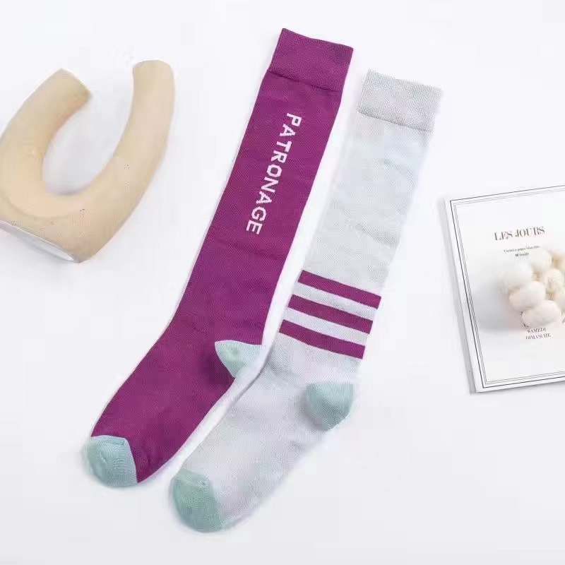 뜨거운 새로운 비대칭 스포츠 양말 피트니스 러닝 양말 무릎 높은 종아리 양말 패션 컬러 매칭 편지 중간 튜브 양말스토어 가기
