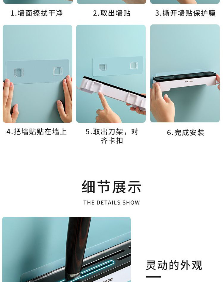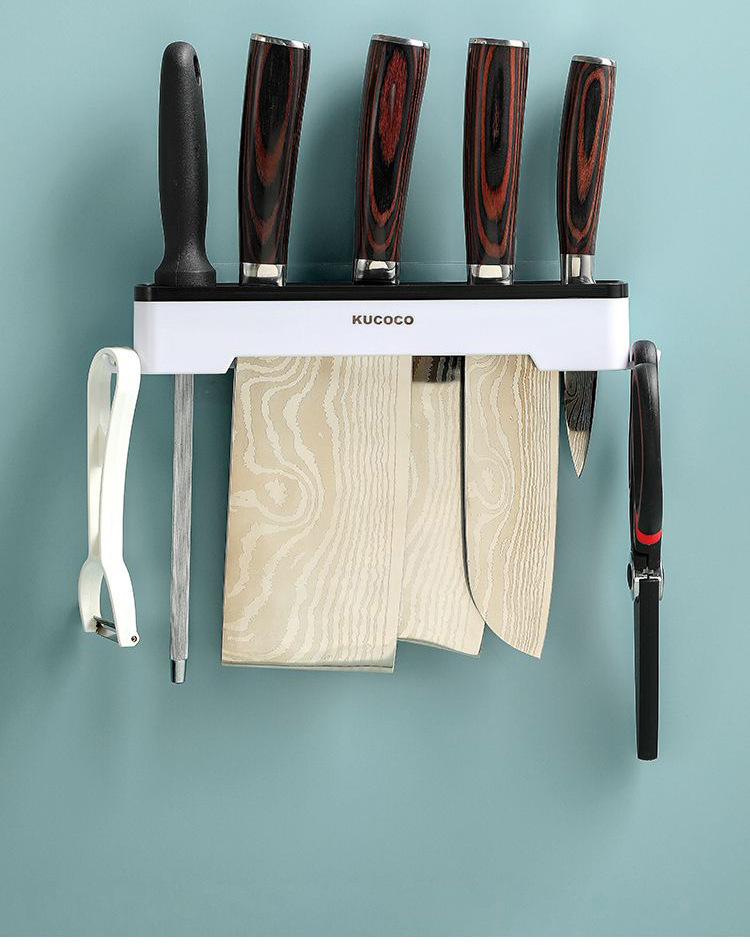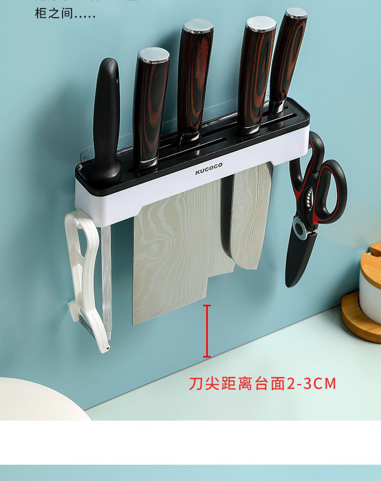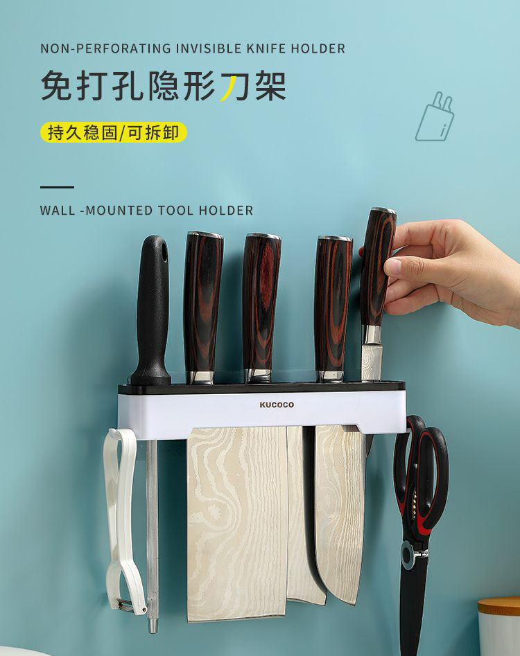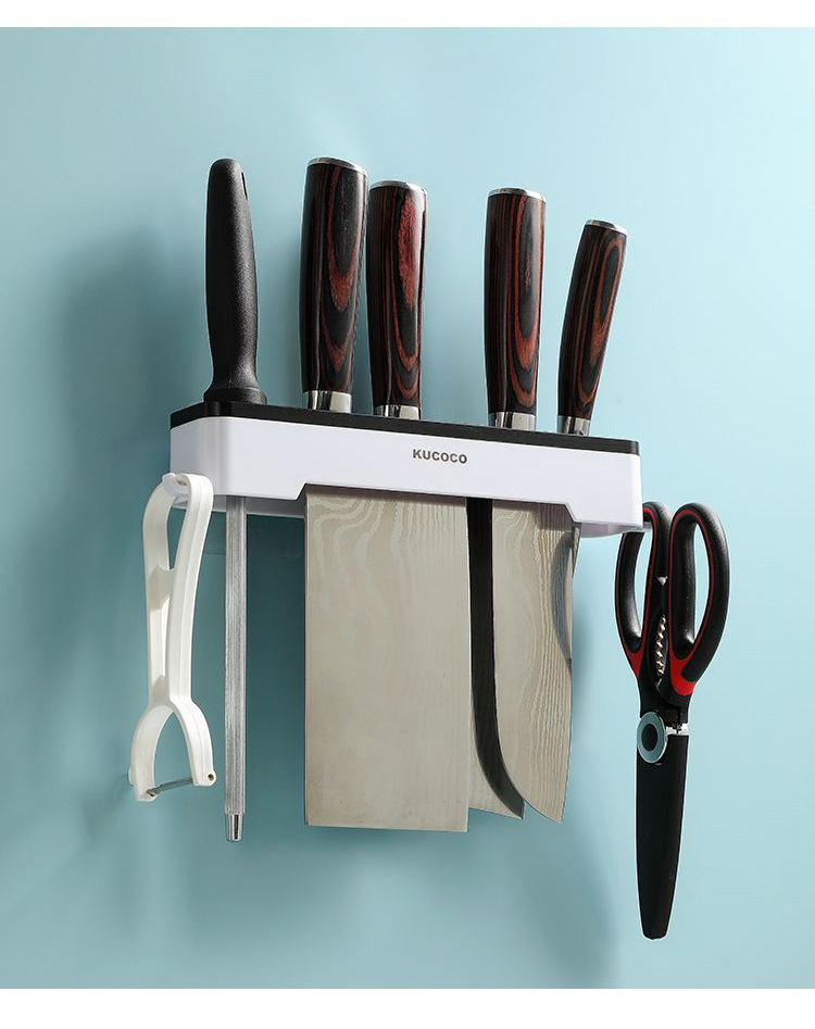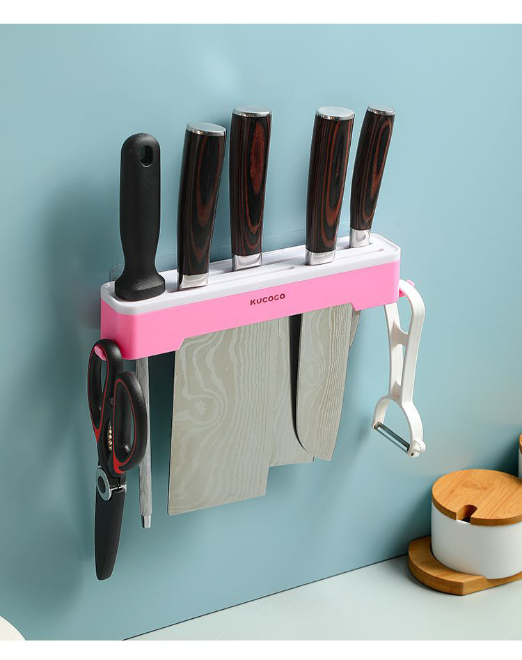 구멍을 뚫지 않고 새로운 주방 칼 홀더 보관 랙 벽걸이 형 보관 랙 플라스틱 가정용 다기능 칼 홀더 도매스토어 가기