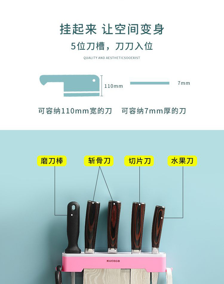구멍을 뚫지 않고 새로운 주방 칼 홀더 보관 랙 벽걸이 형 보관 랙 플라스틱 가정용 다기능 칼 홀더 도매