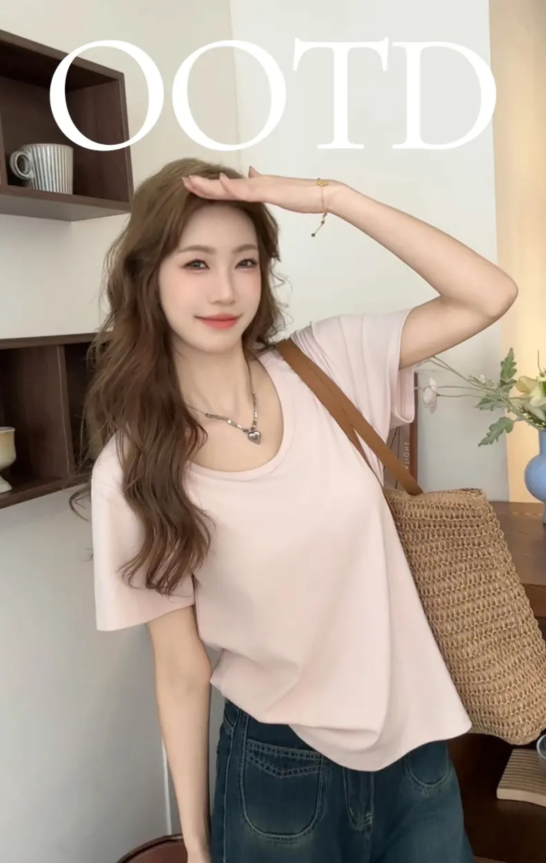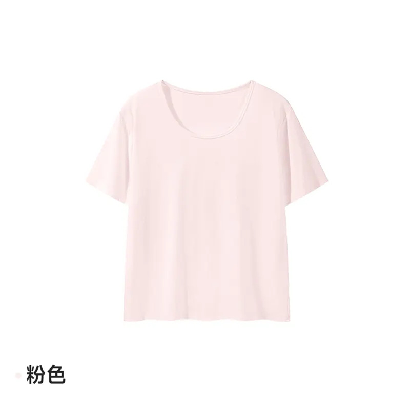 2025 뉴 여름 핑크 U-칼라 캐주얼 올 매치 루즈 반팔 티셔츠 여성용 어깨 게으른 반소매 티셔츠 탑스토어 가기