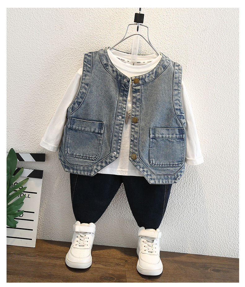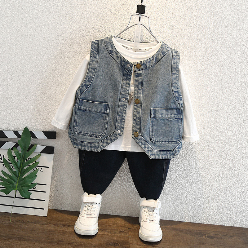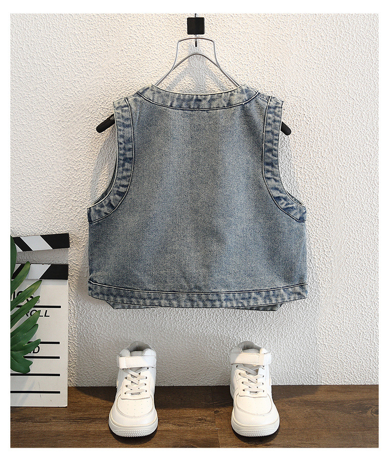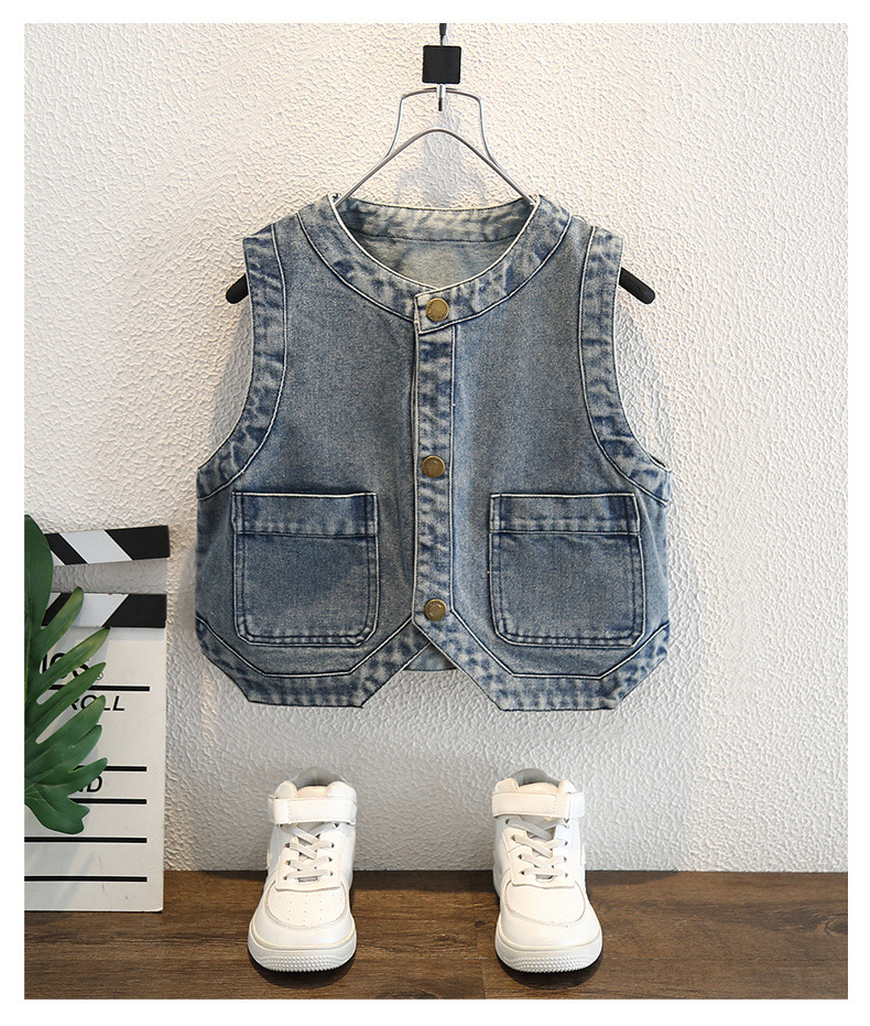 아동용 조끼 소년 봄, 가을 2025 새로운 유행 아동복 잘 생긴 아기 데님 겉옷 조끼 트렌디하고 멋집니다.스토어 가기