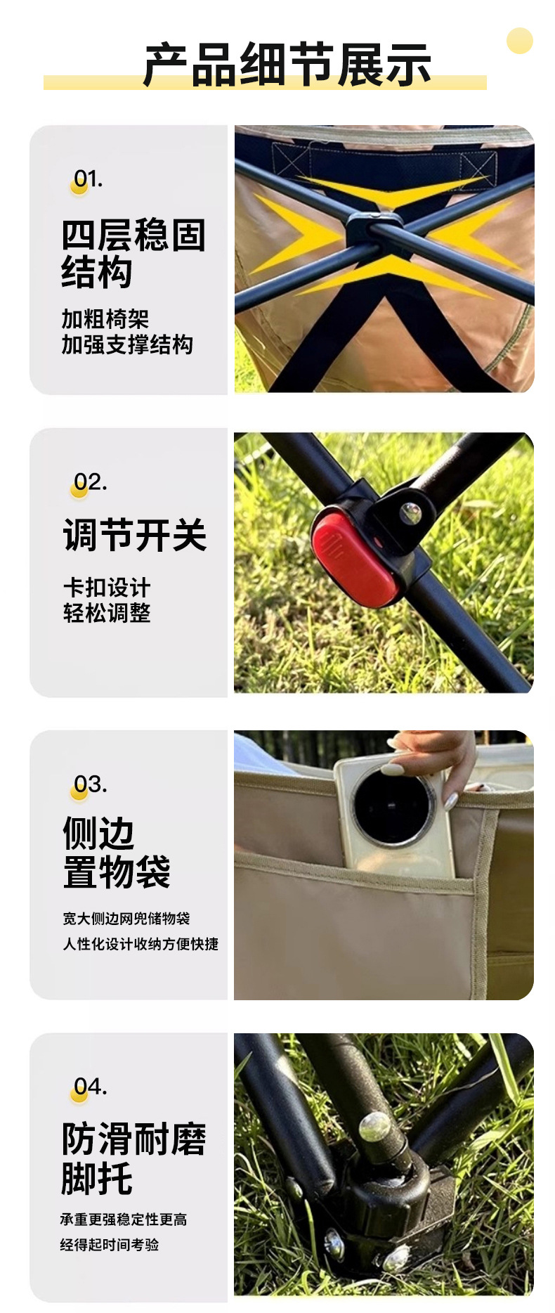 야외 문 의자 캠핑 의자 발코니 리클라이너 홈 레저 접이식 의자 발 트레이 조정 가능스토어 가기