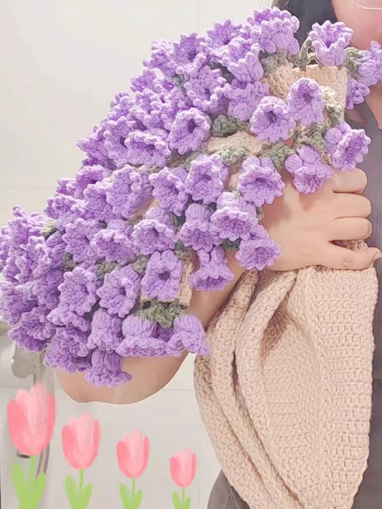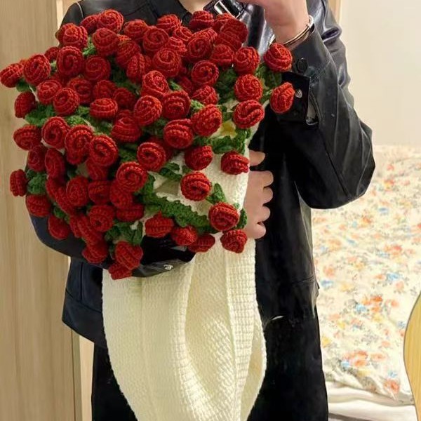 [완료] 수제 크로 셰 뜨개질 장미 꽃다발 릴리 계곡 꽃다발 양모 니트 담요는 그녀의 가장 친한 친구를 보내기 위해 그의 여자 친구를 보내기 위해 장미 장미스토어 가기