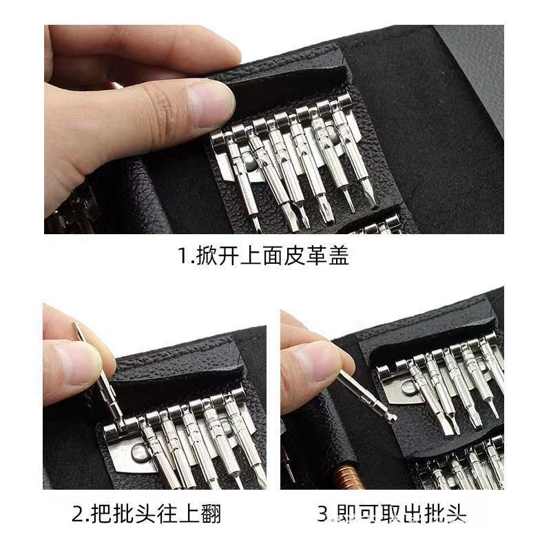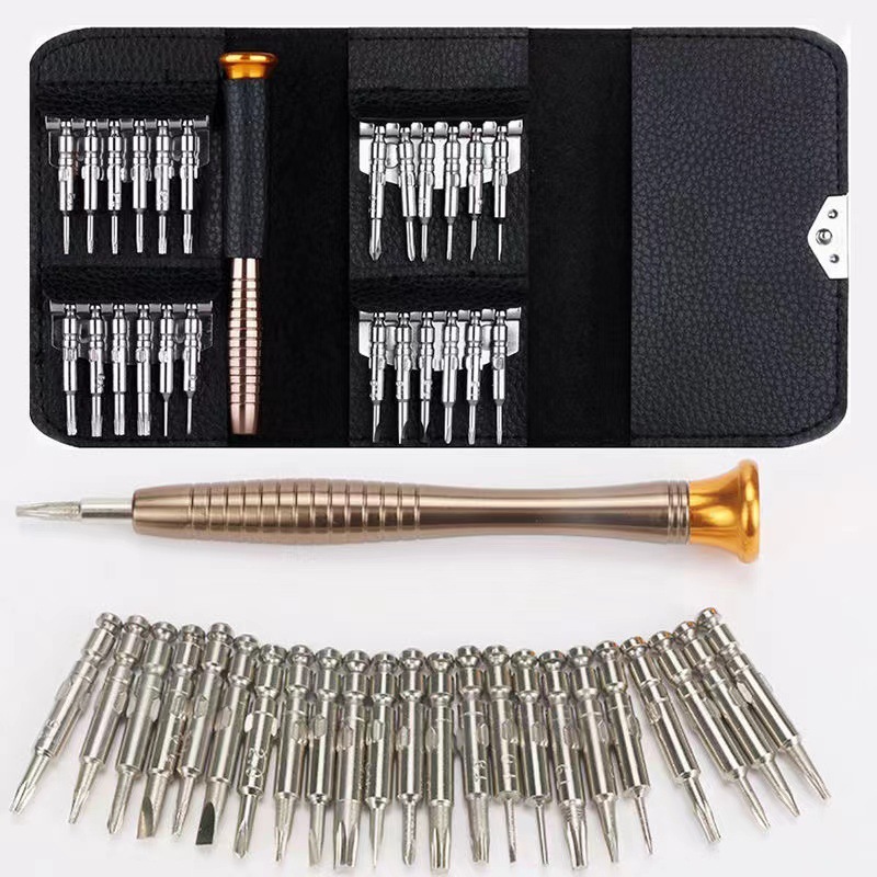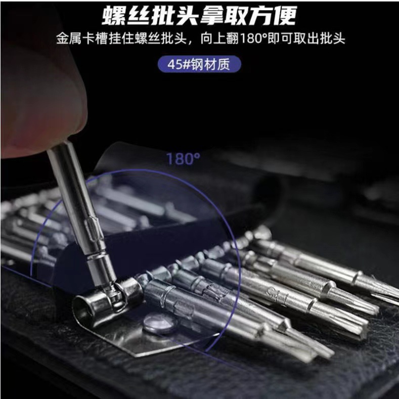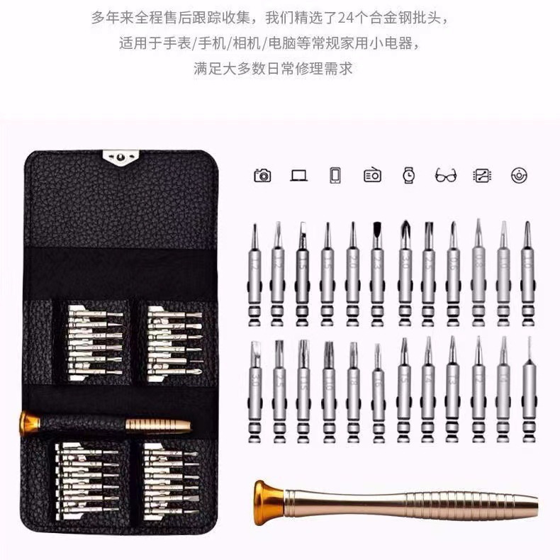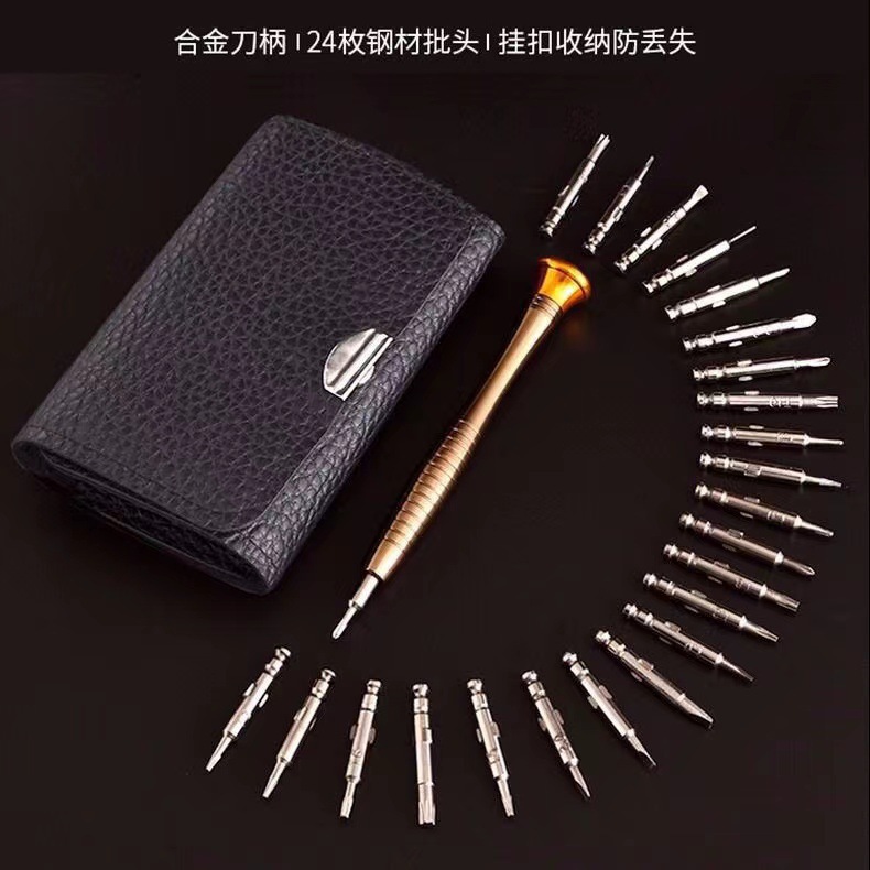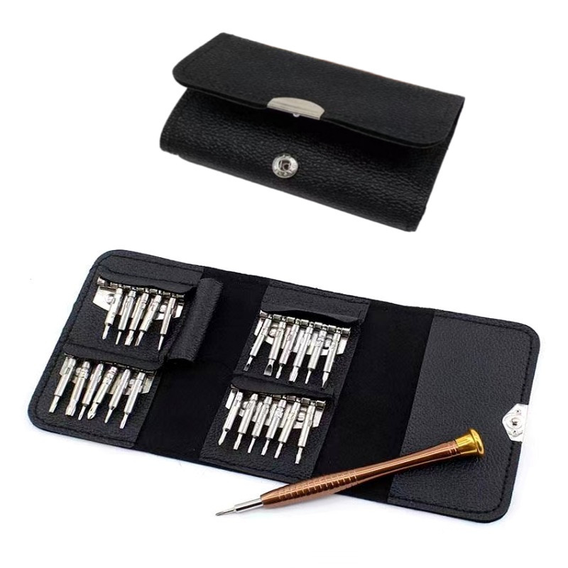 다기능 25-in-one 스크루 드라이버 가죽 가방 세트 스크루 드라이버 분해 도구 알루미늄 합금 강한 자기 하이 퀄리티 배치 헤드