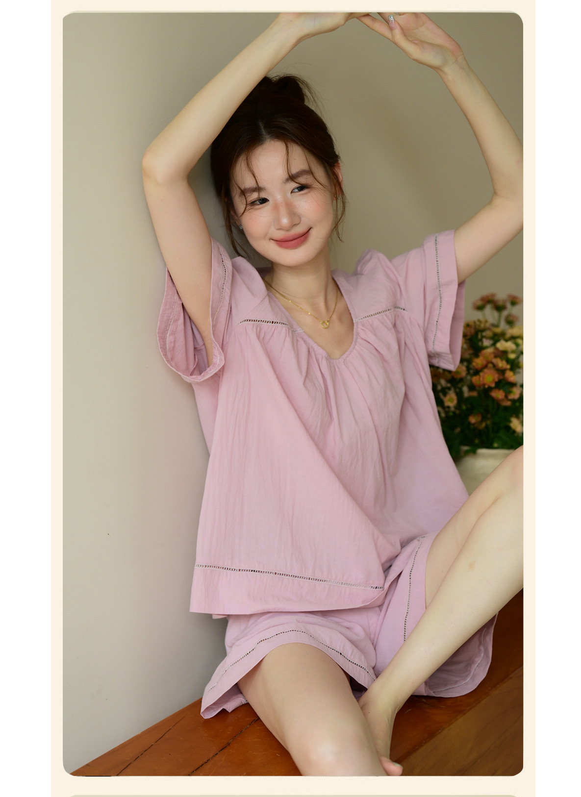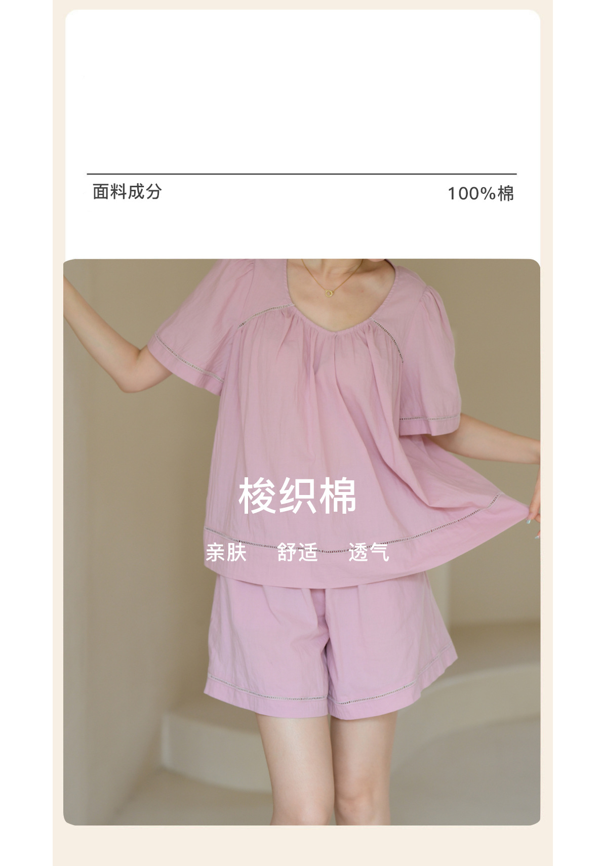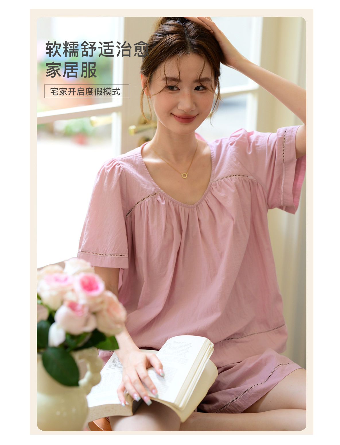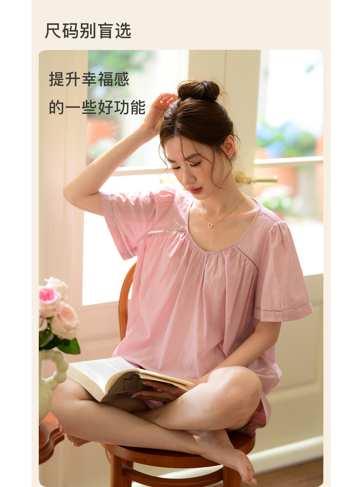 여성용 잠옷 여름 2025 새로운 스타일의 면으로 짠 느슨하고 편안한 반팔 반바지 정장은 집 밖에서 입을 수 있습니다스토어 가기