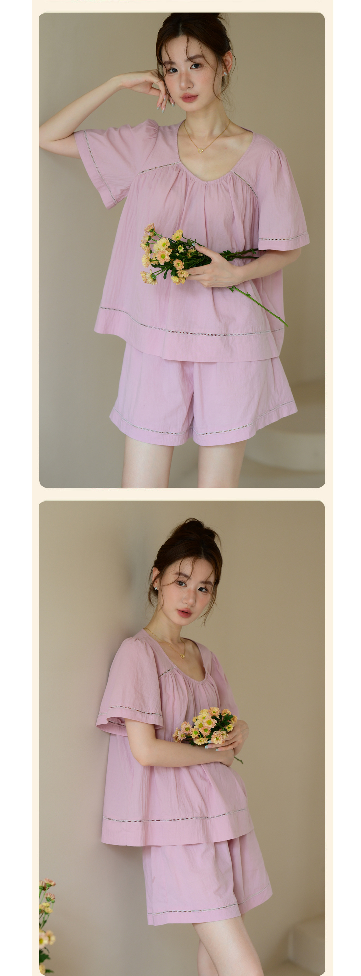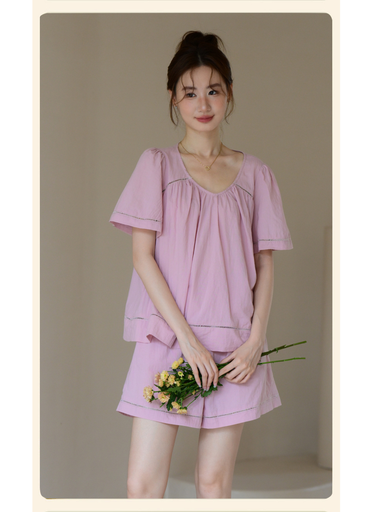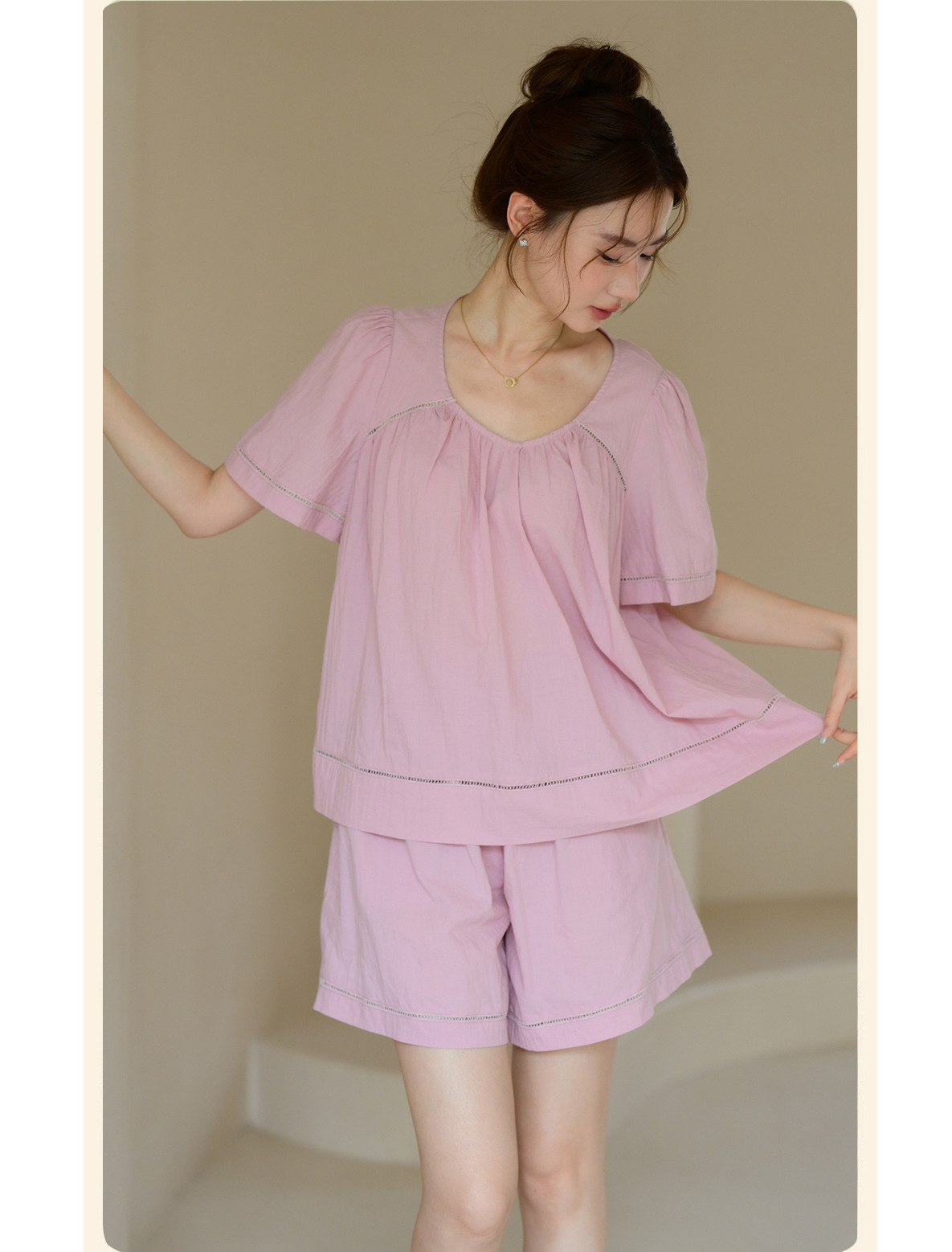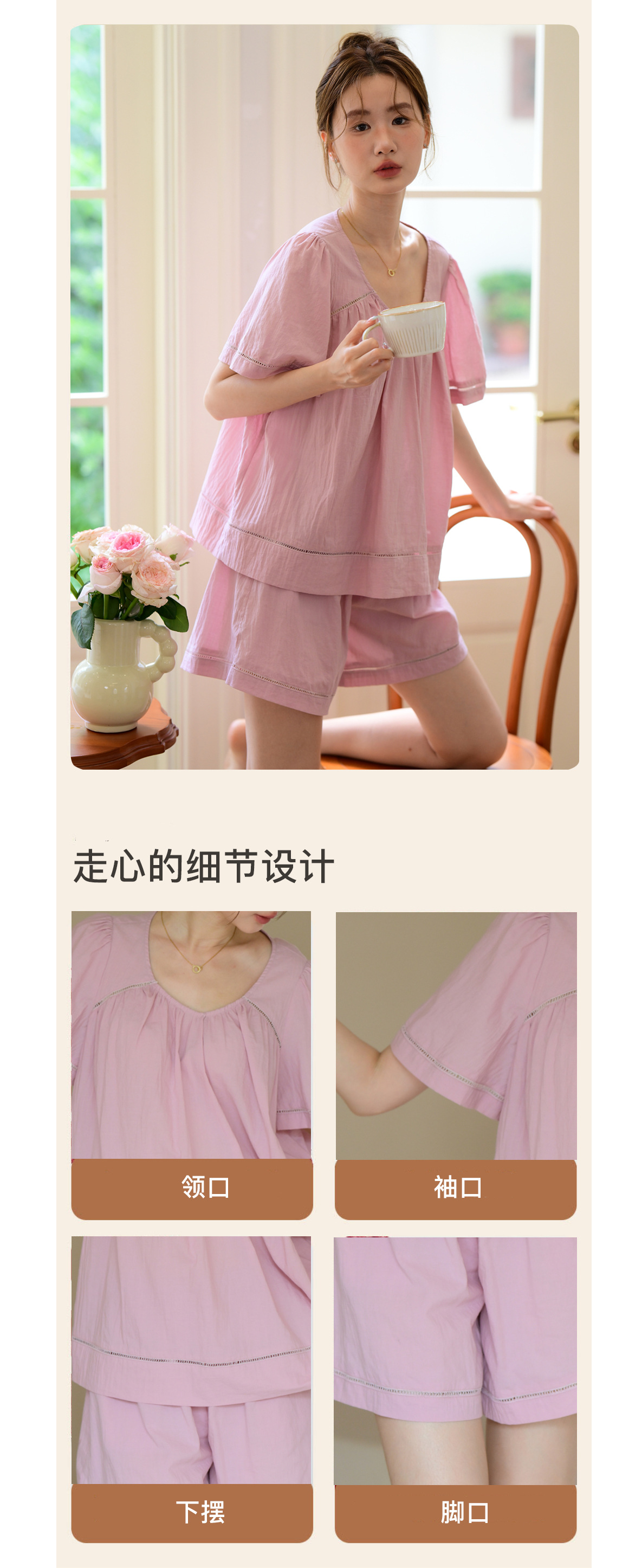 여성용 잠옷 여름 2025 새로운 스타일의 면으로 짠 느슨하고 편안한 반팔 반바지 정장은 집 밖에서 입을 수 있습니다스토어 가기
