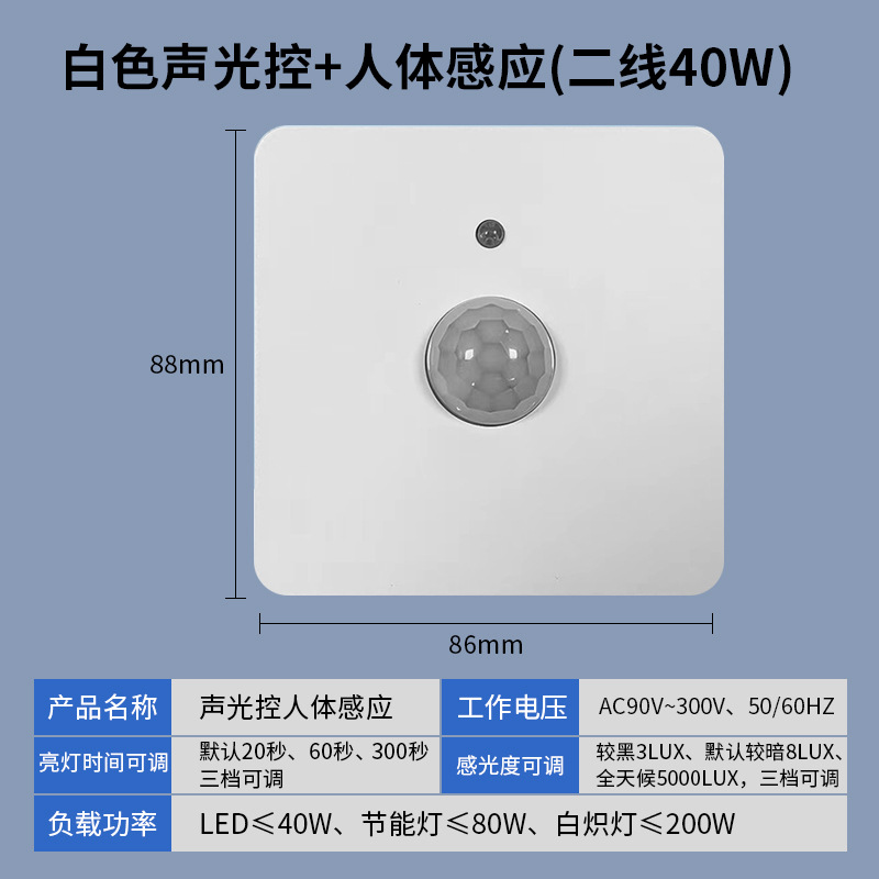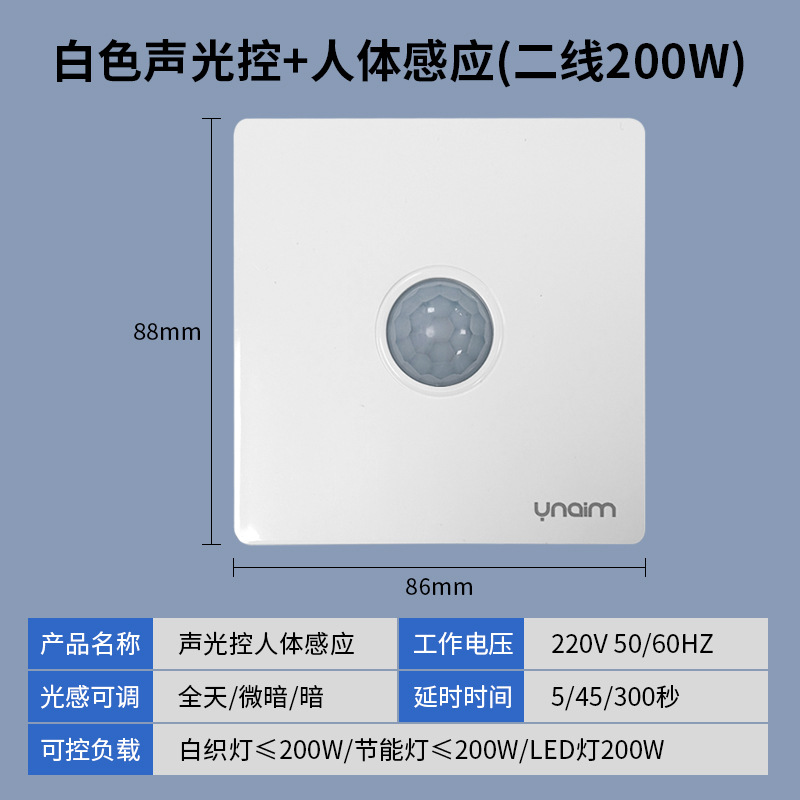 86 유형 음성 제어 인체 센서 스위치 지능형 LED 복도 지연 적외선 센서 표면 장착 및 숨겨진 2선