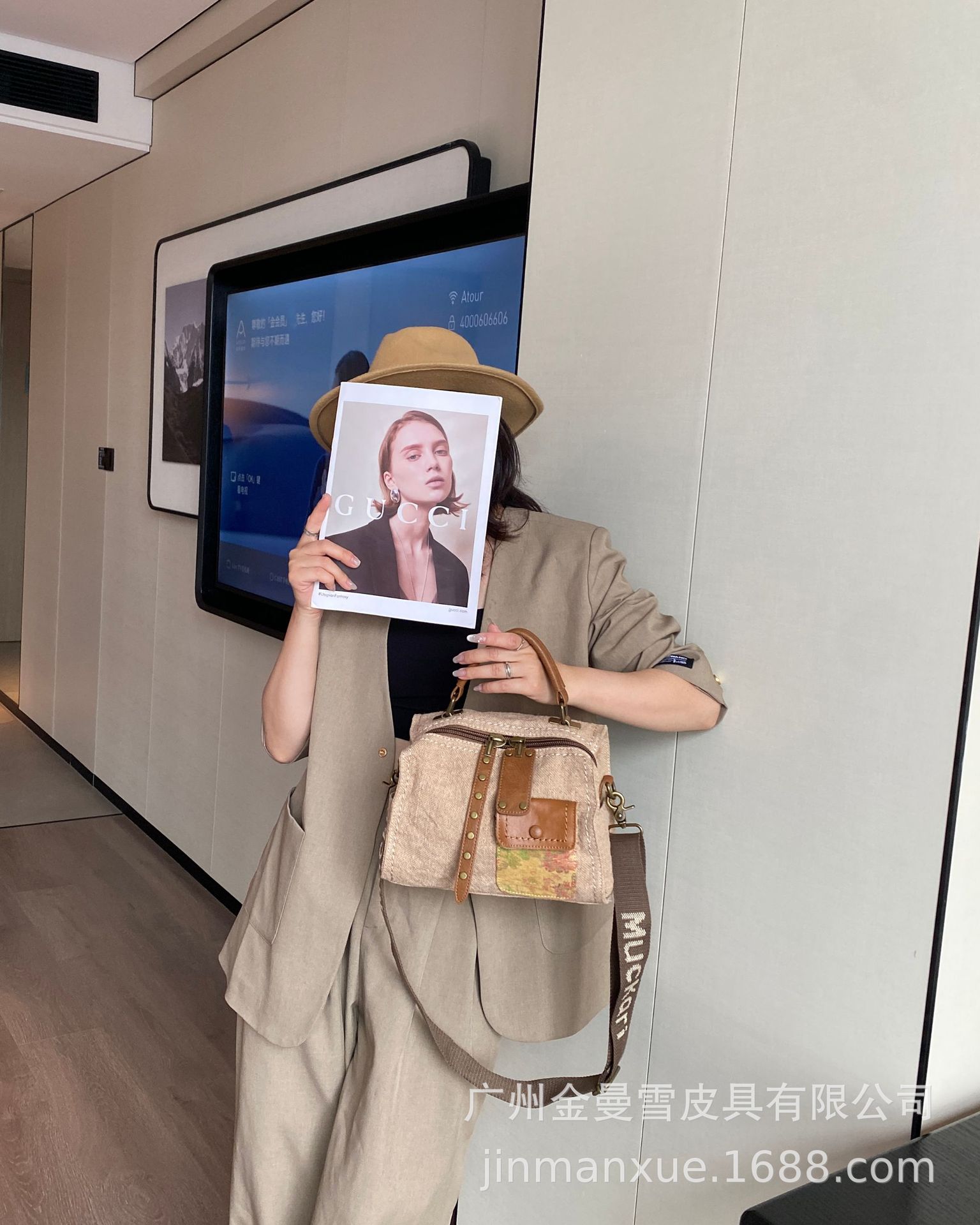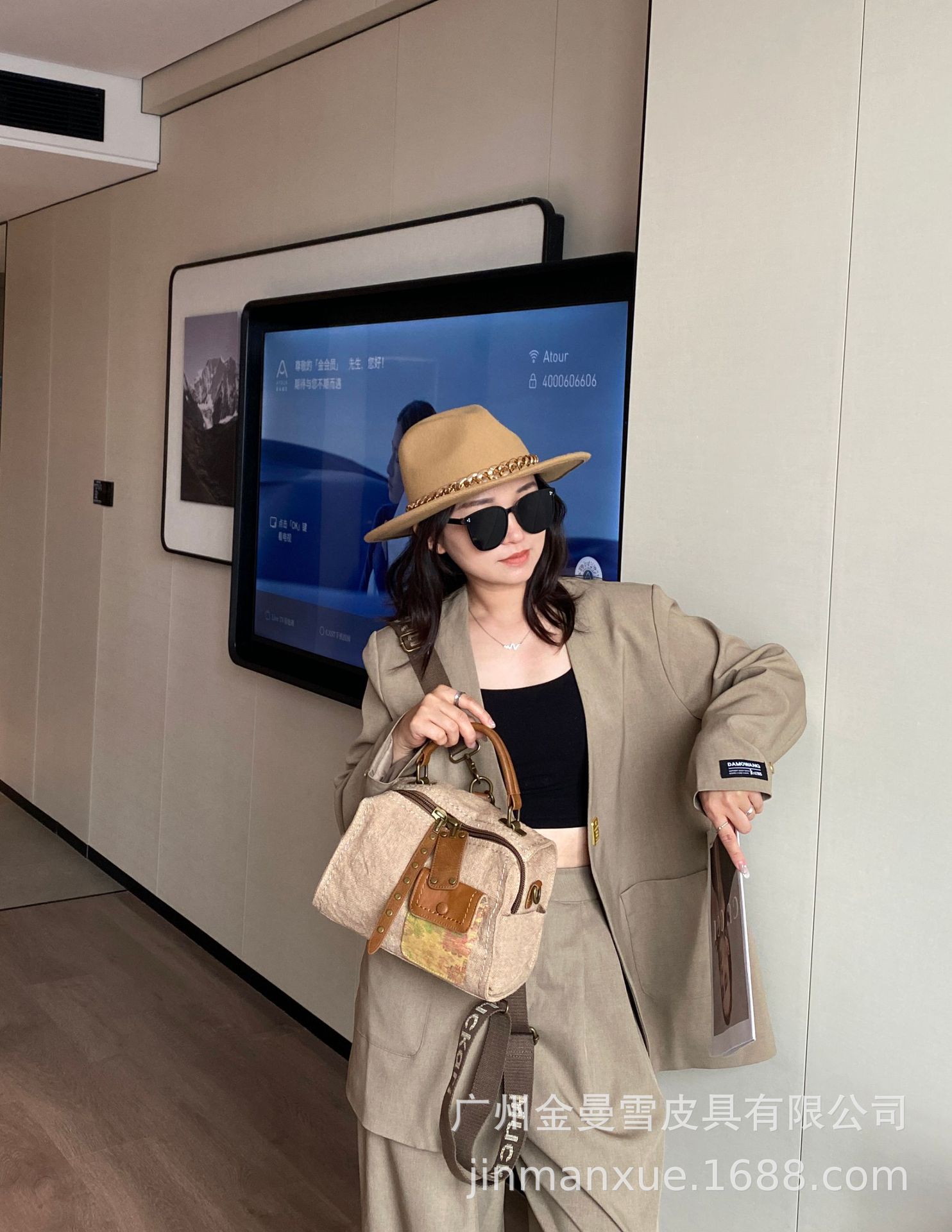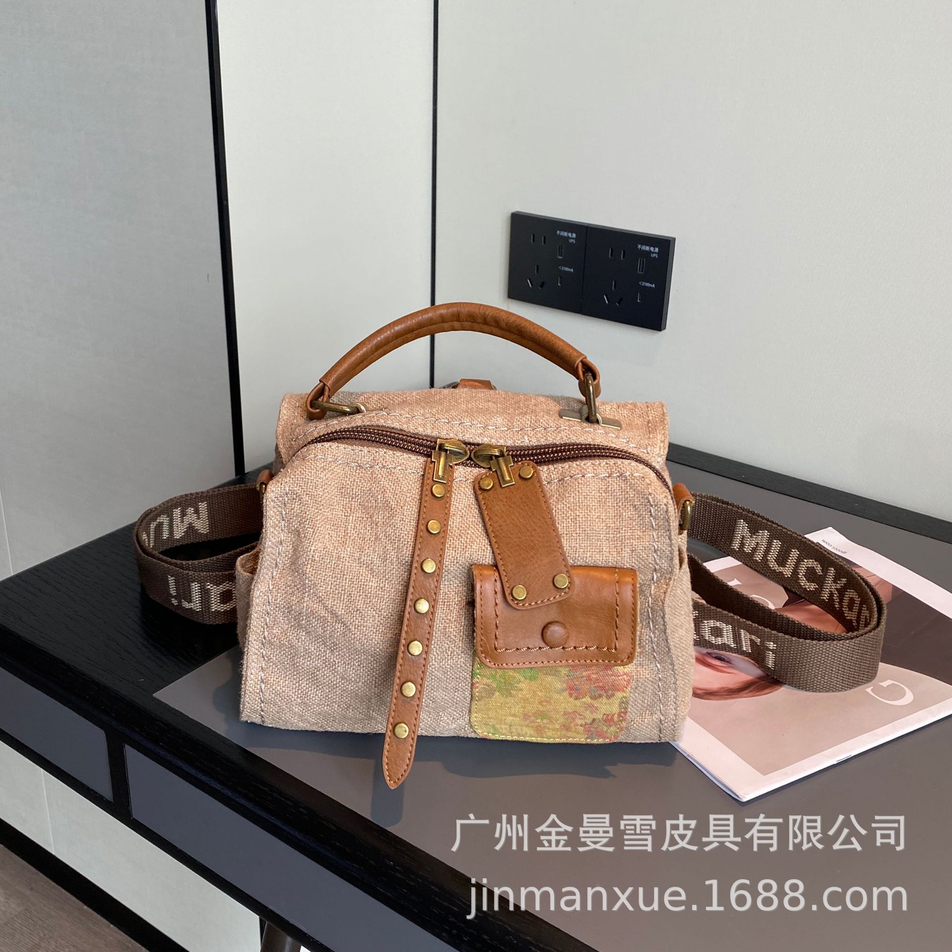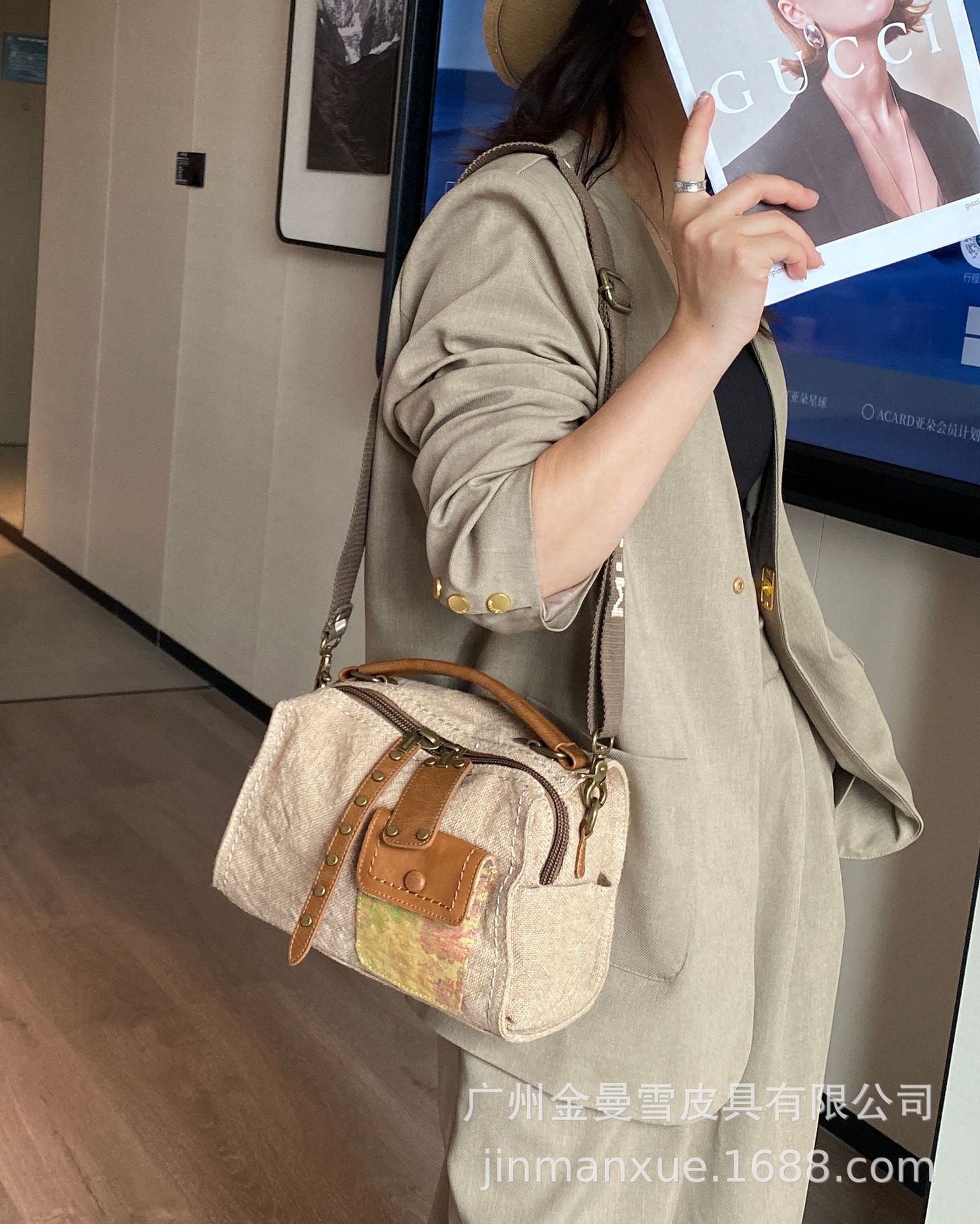 국경 간 문학적이고 예술적인 면 및 린넨 여성용 휴대용 보스턴 백 크로스 바디 복고풍 프린트 다용도 통근 단순 숄더 백