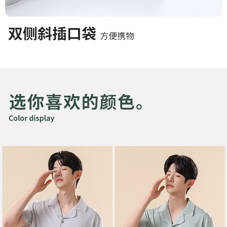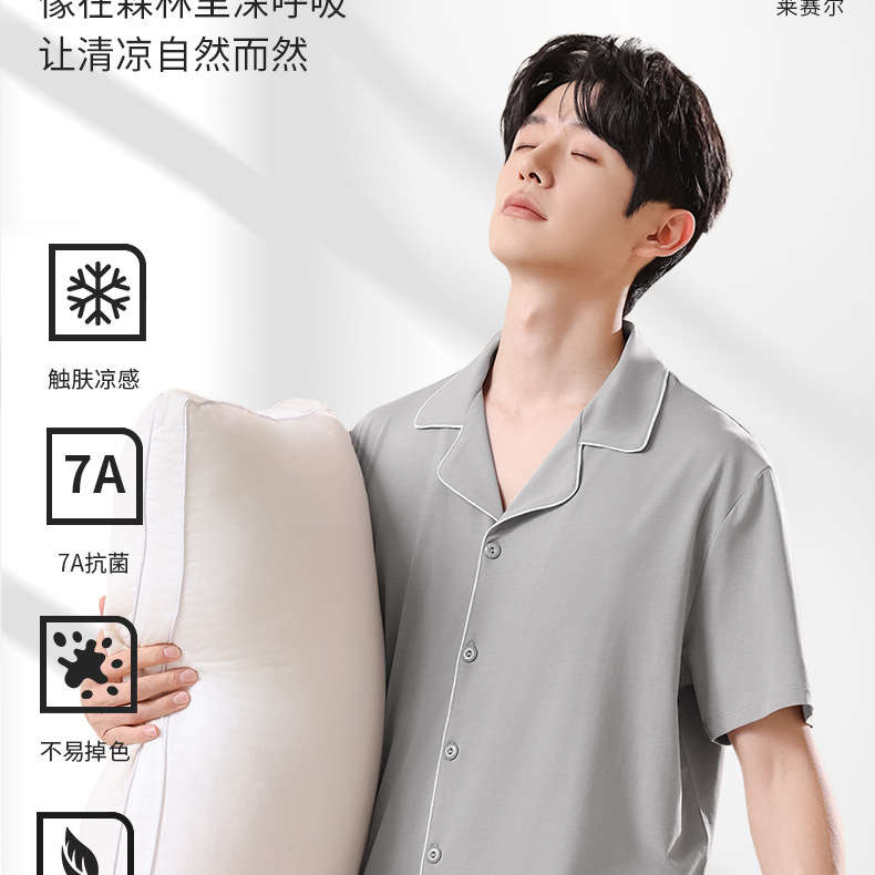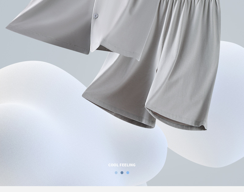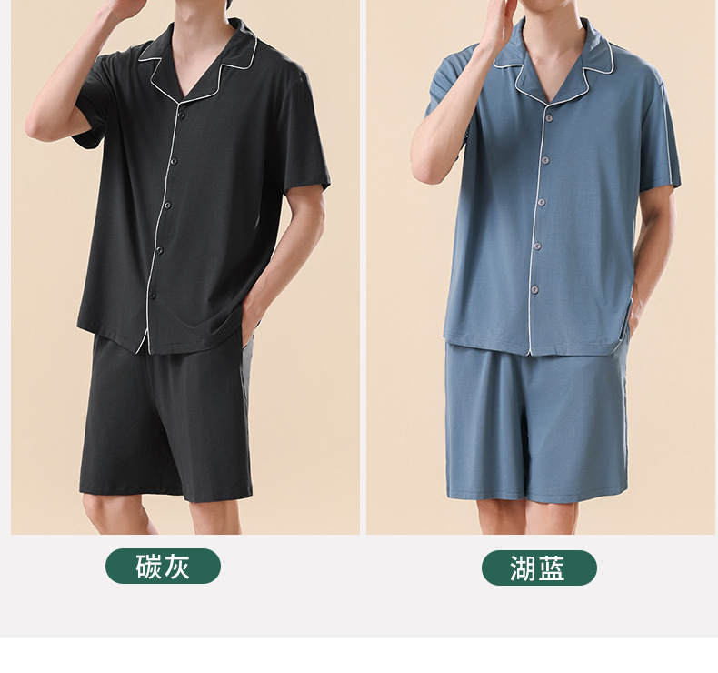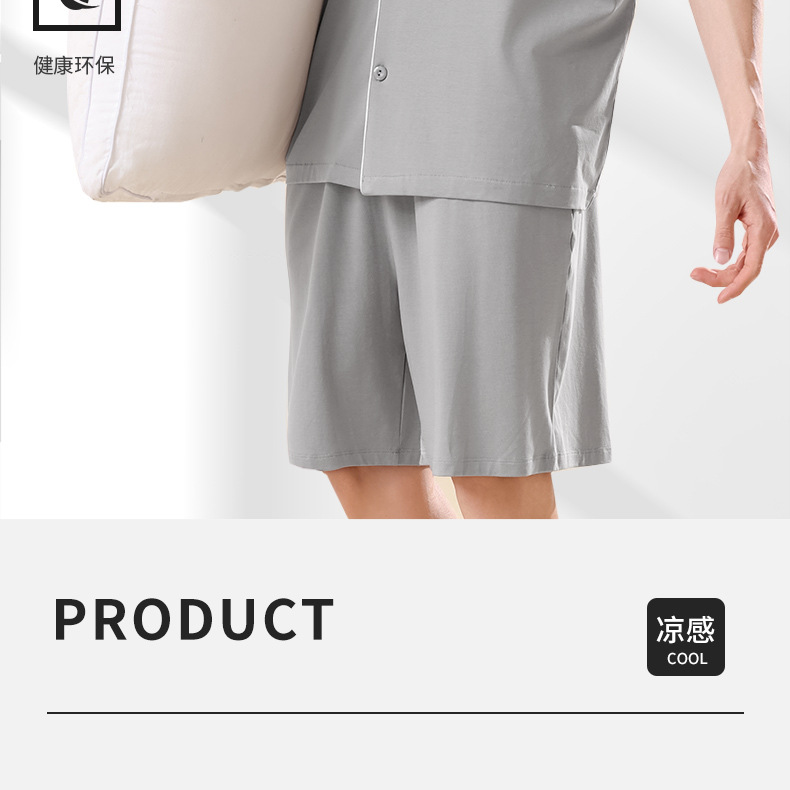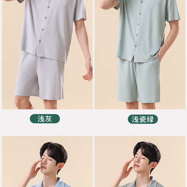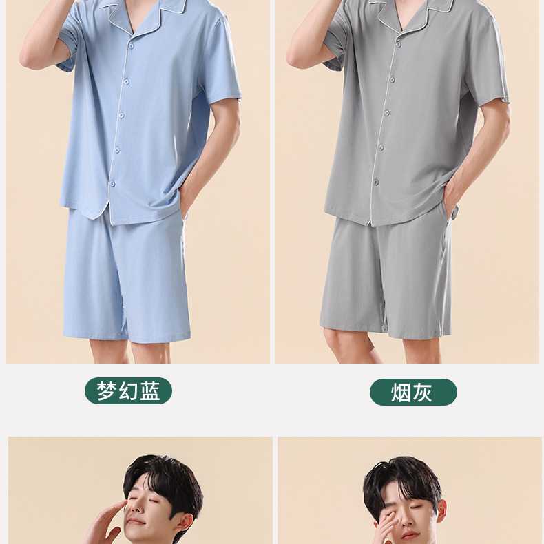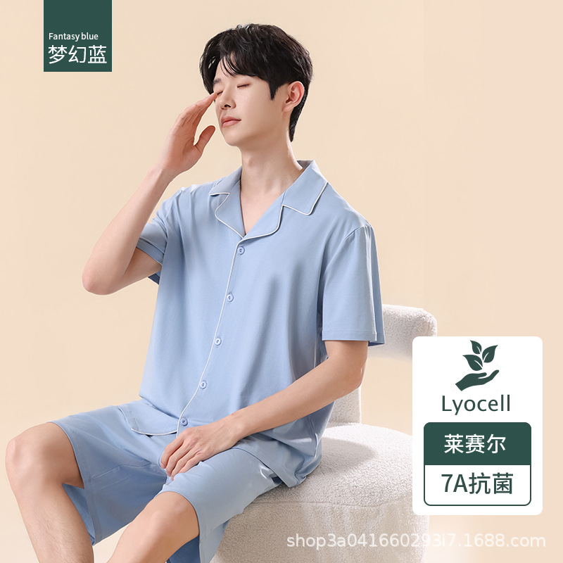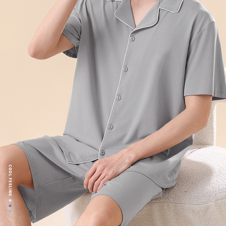남성용 여름 잠옷 라이셀 코튼 반팔 반바지 가디건 세트 남성용 루즈핏 시원하고 통기성 좋은 홈웨어 얇은 스타일스토어 가기