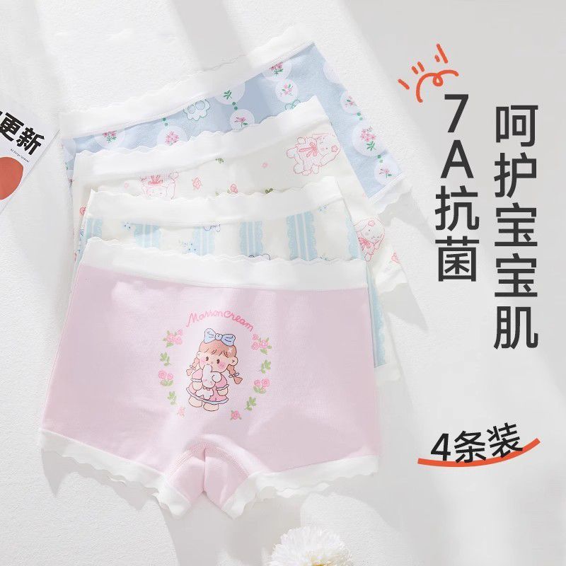 여아 속옷, 아동용 면 사각 팬티, 베이비 A형 사각 팬티, 여아용 큰 아동용 면 신형 노클립 반바지스토어 가기
