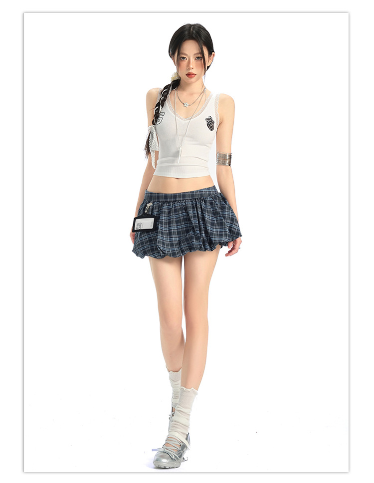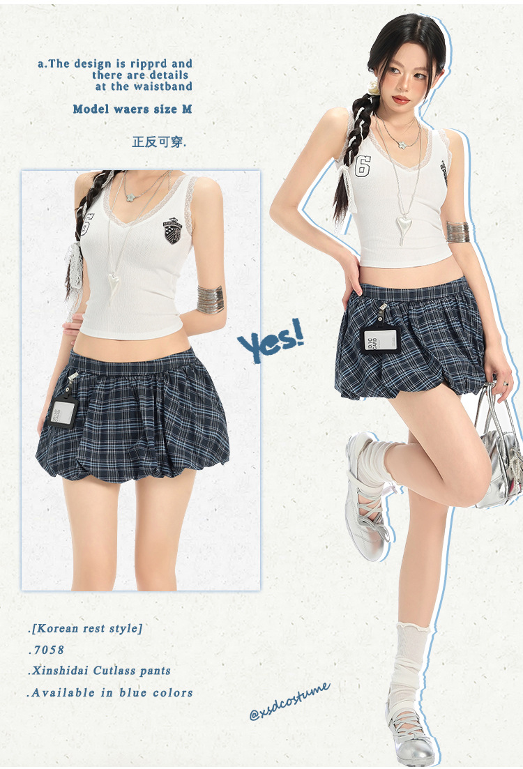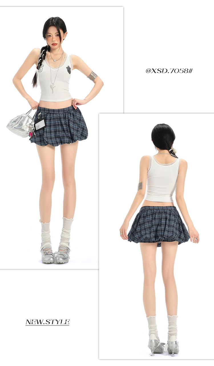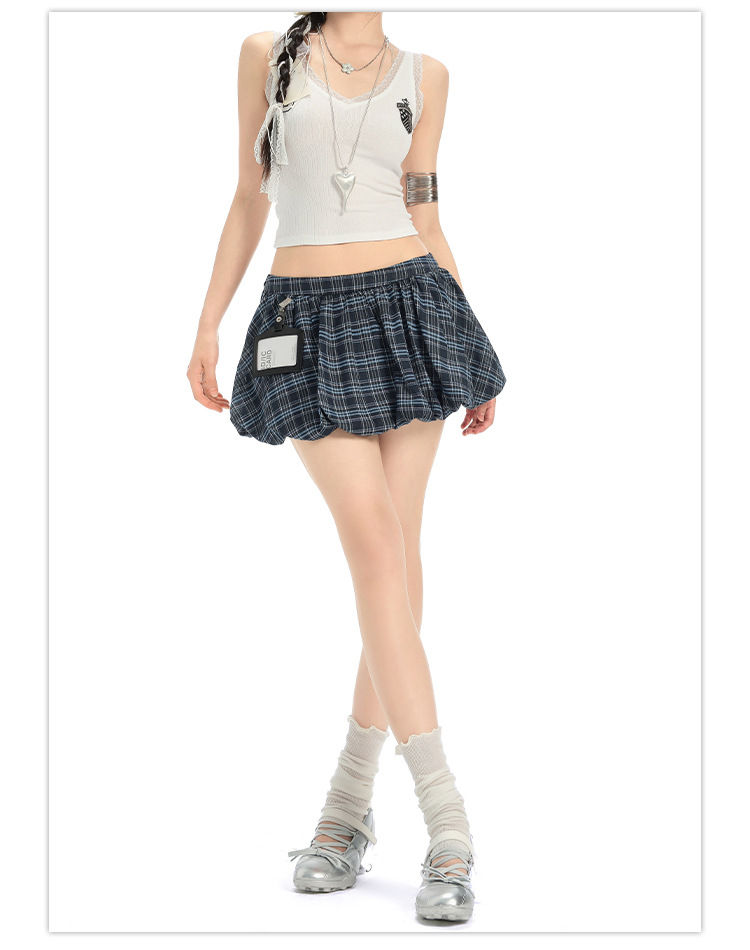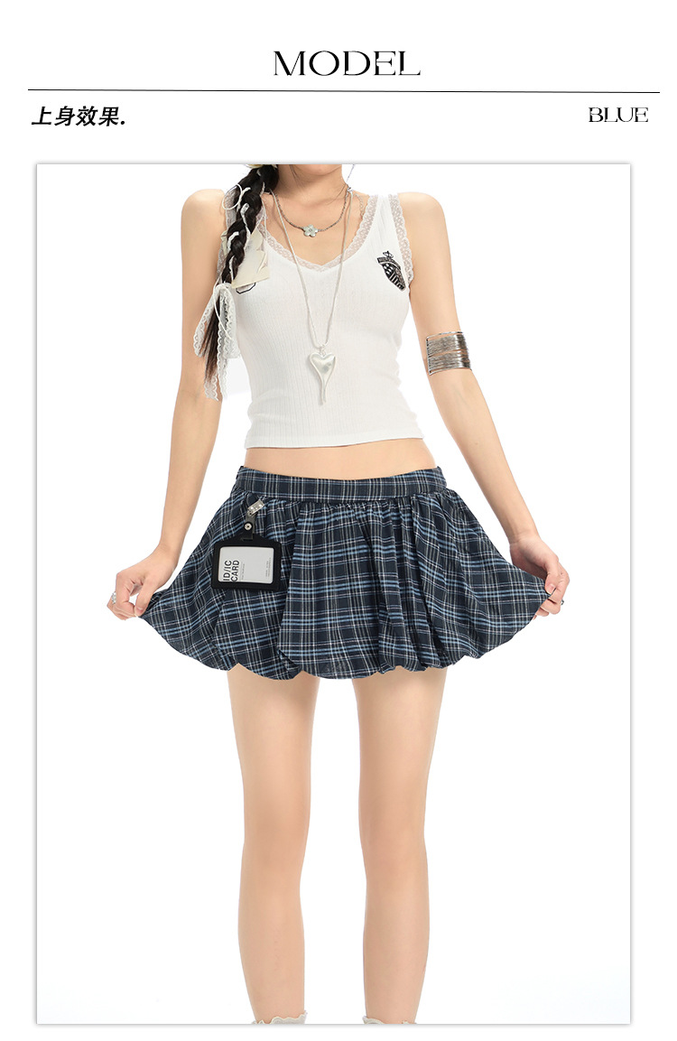리시 # 핫걸 초단발 스커트 포켓 체크무늬 투투 스커트 로우웨이스트 체크무늬 안감 슬리밍 발레 스커트