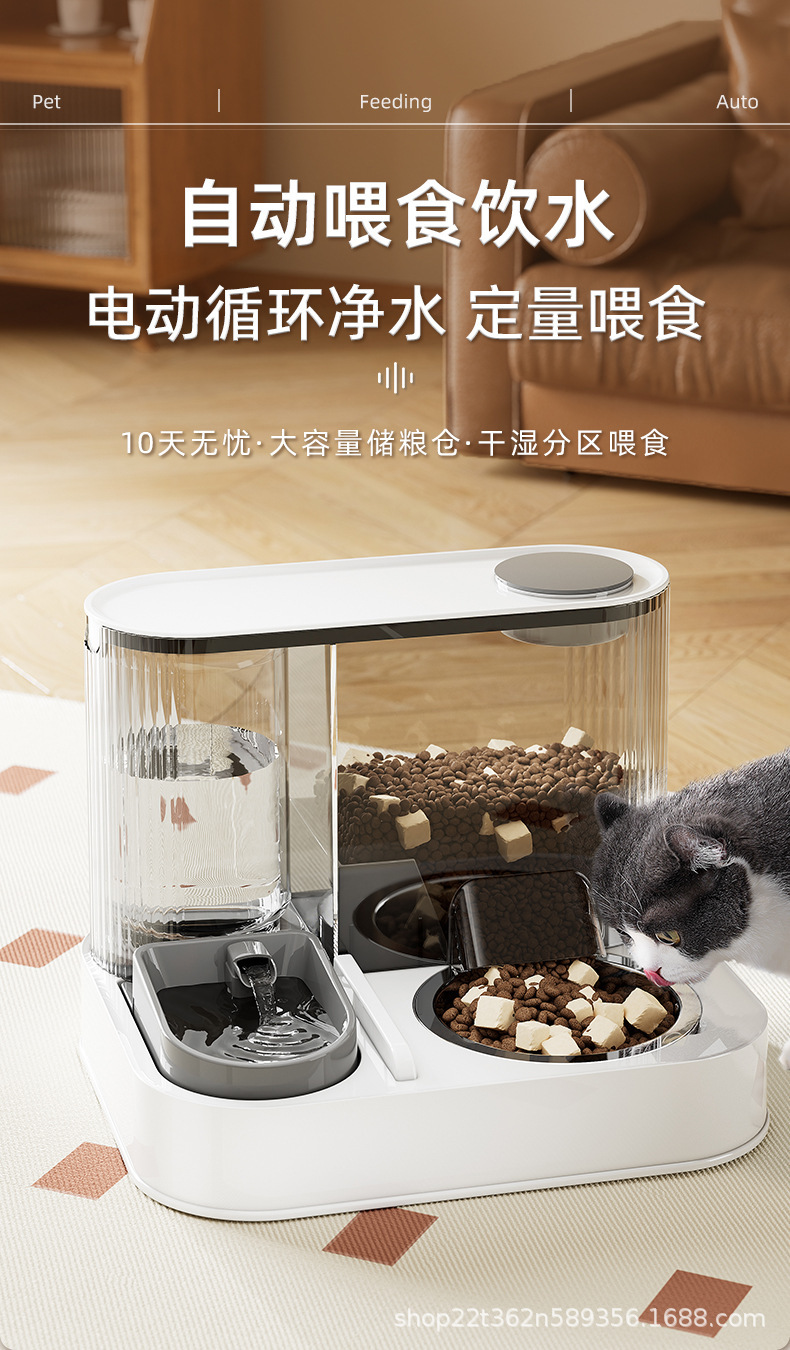 애완동물 식수 및 사료 저장 대용량 물탱크 고양이와 강아지를 위한 자동 순환식 일체형 급수기 및 식수그릇스토어 가기