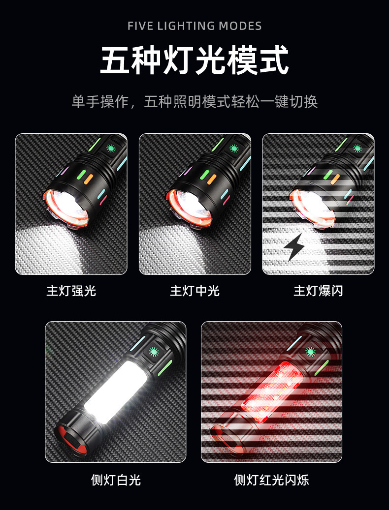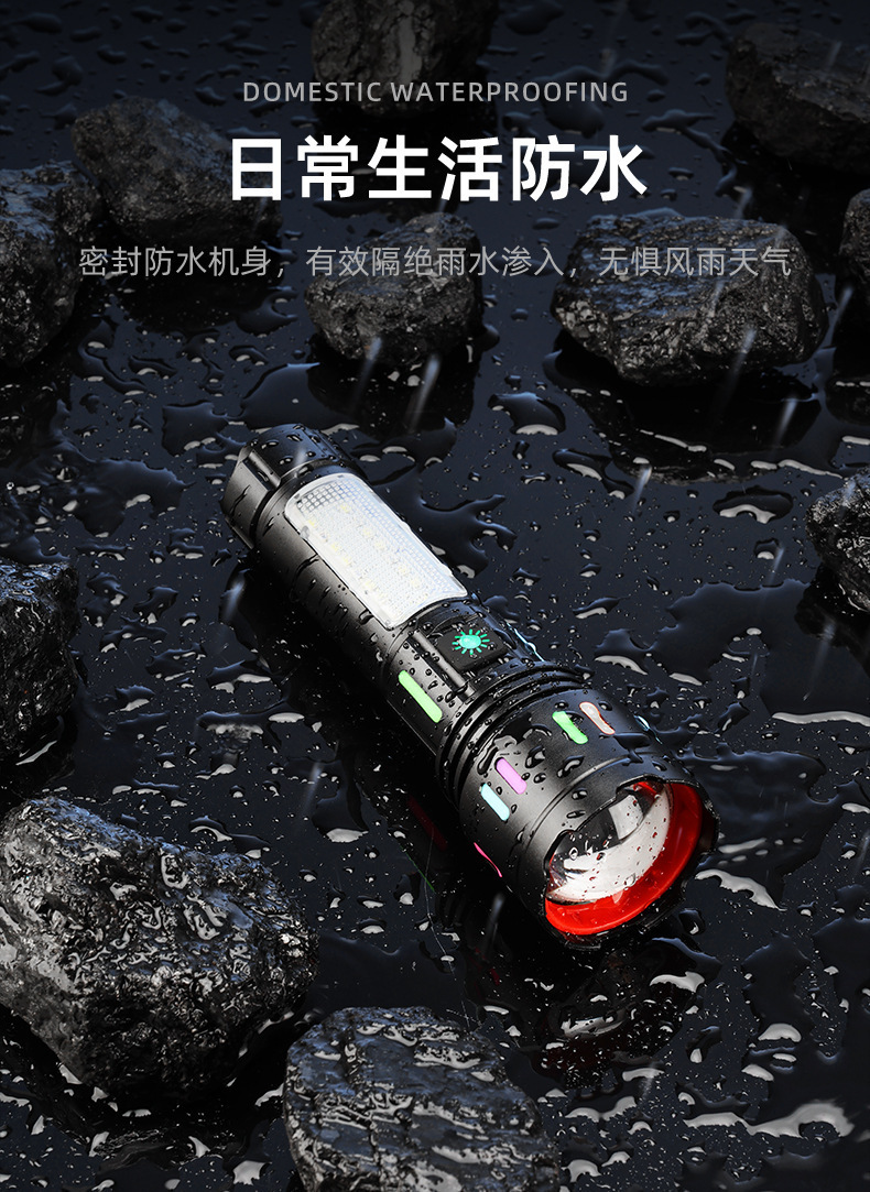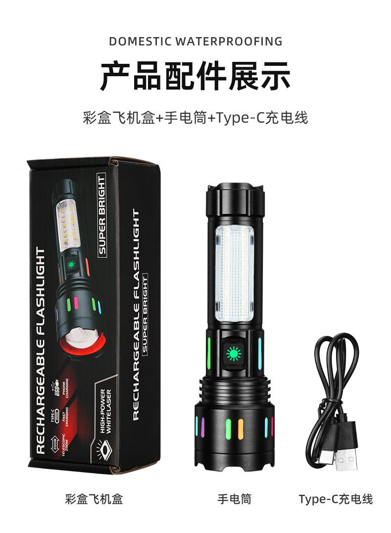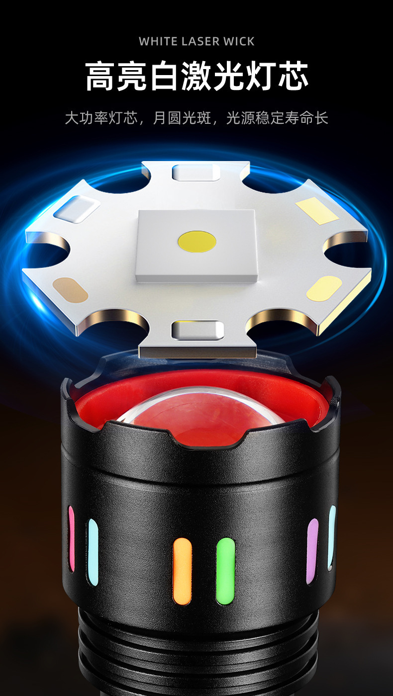 Led 알루미늄 합금 손전등 강한 빛 레이저 총 긴 내구성 야외 충전식 다기능 비상 COB 작업 조명