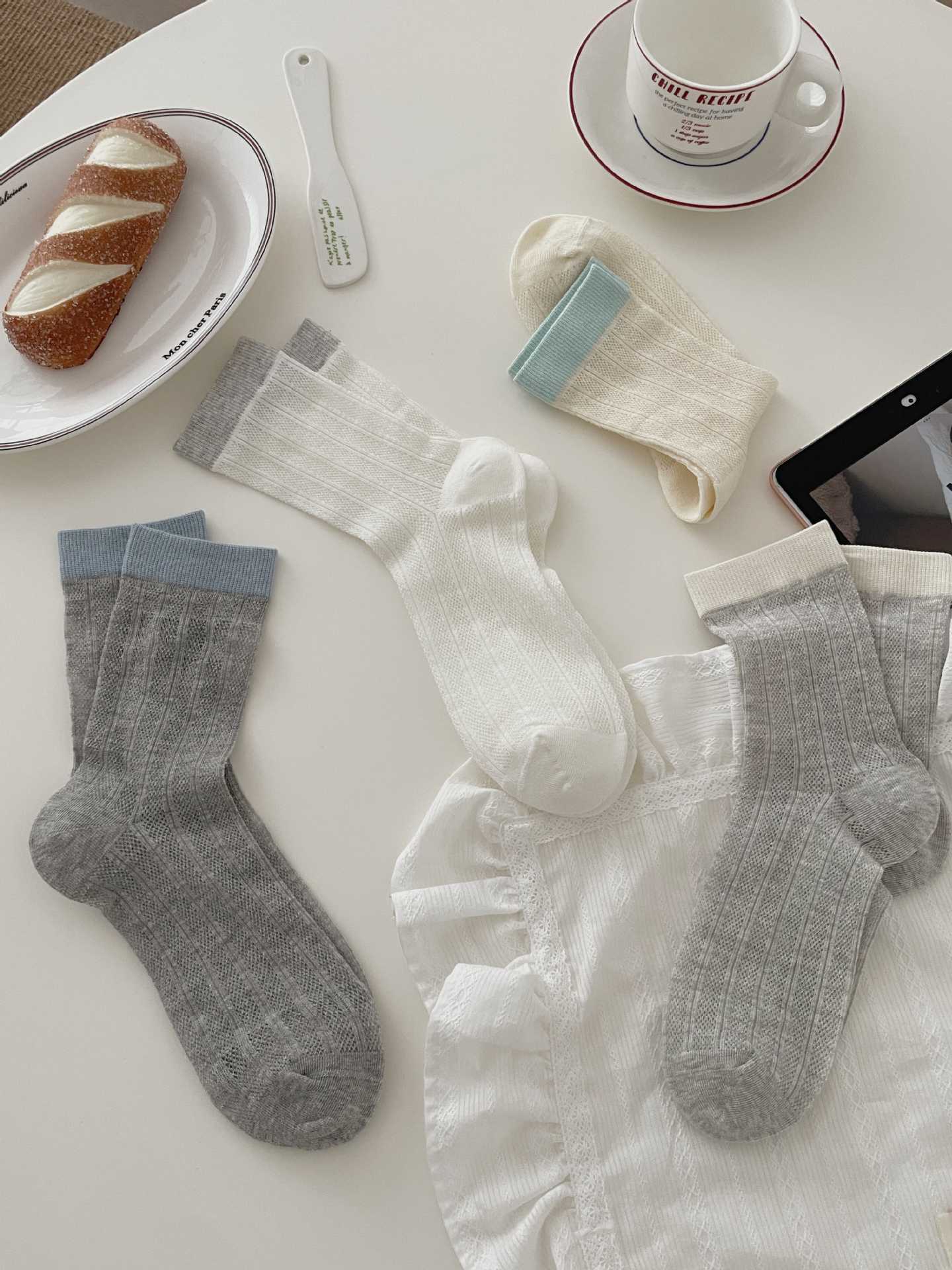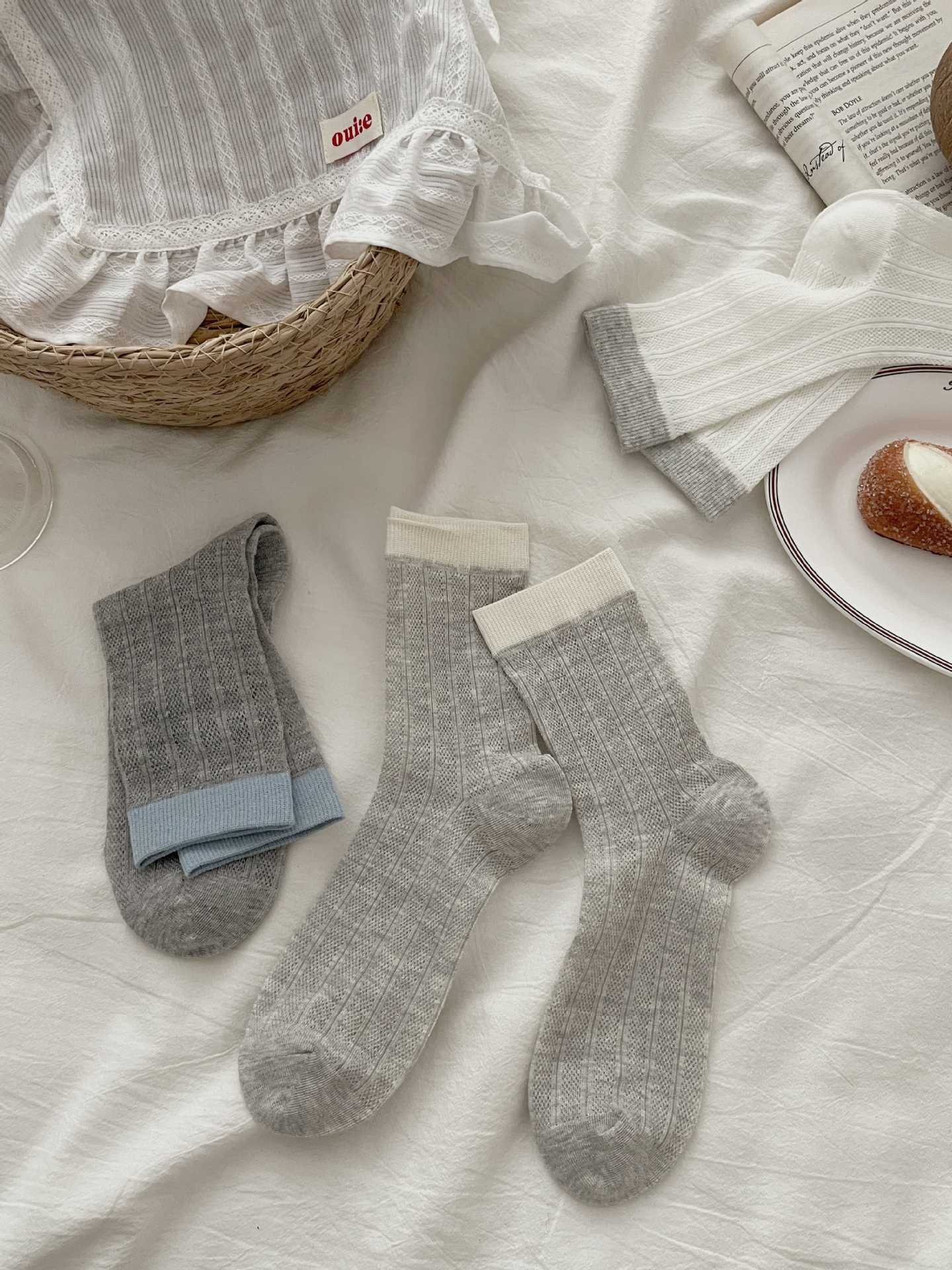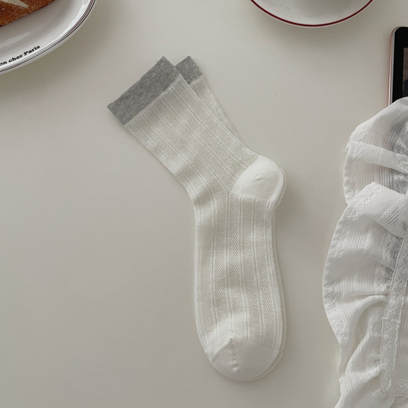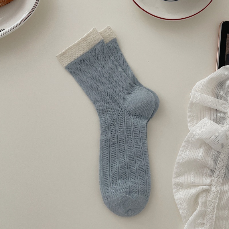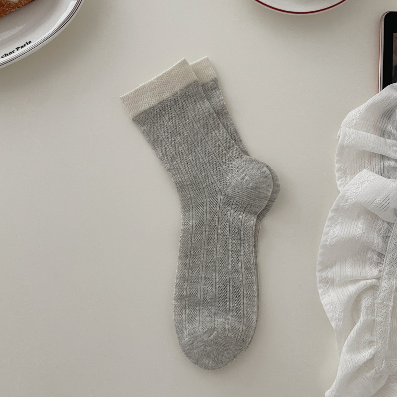 뼈없는 양말 어린이 한국 스타일 색상 매칭 미드 스타킹 양말 봄과 여름 얇은 중공 스타킹 미드 스타킹 쌓은면 양말