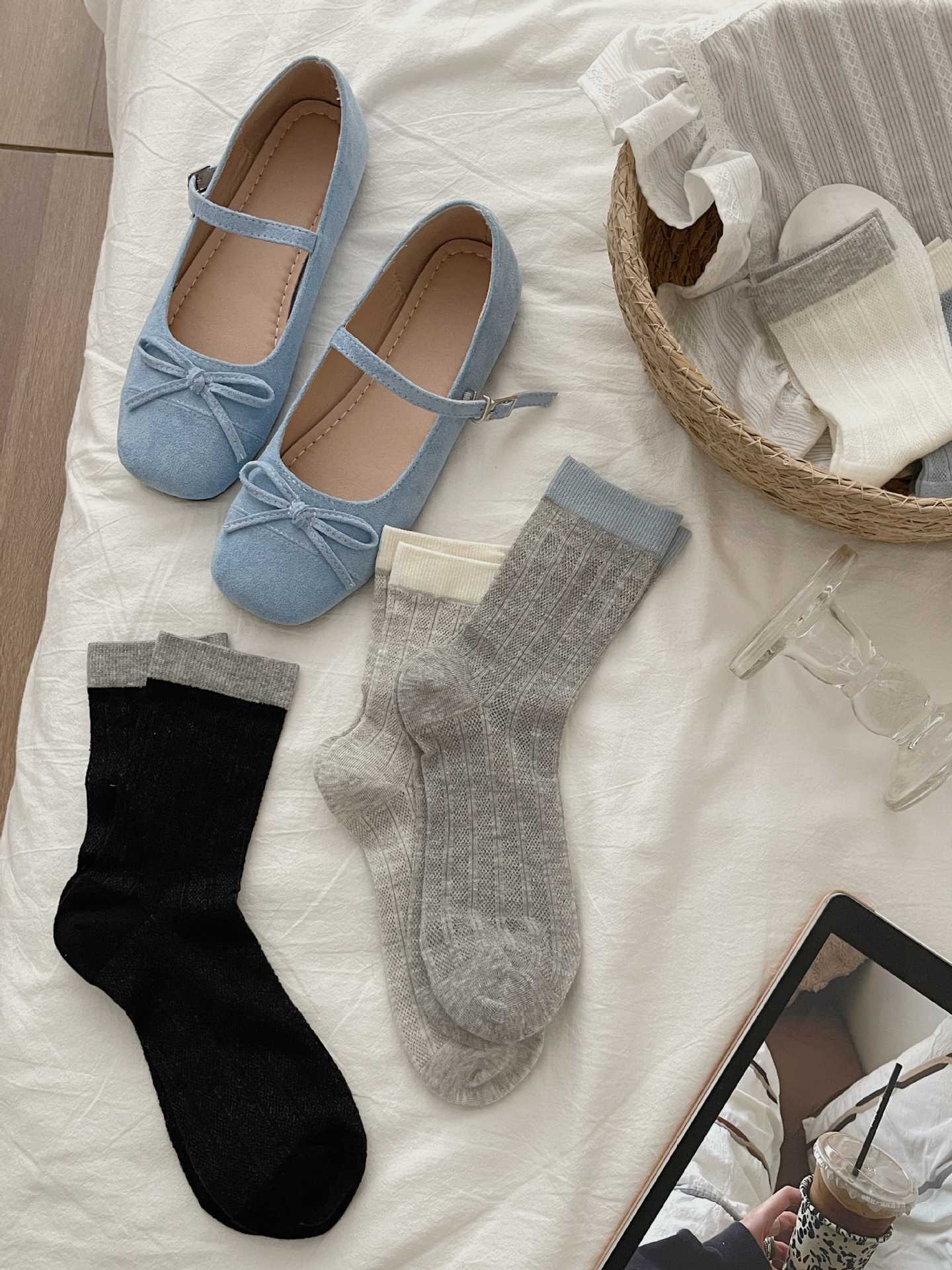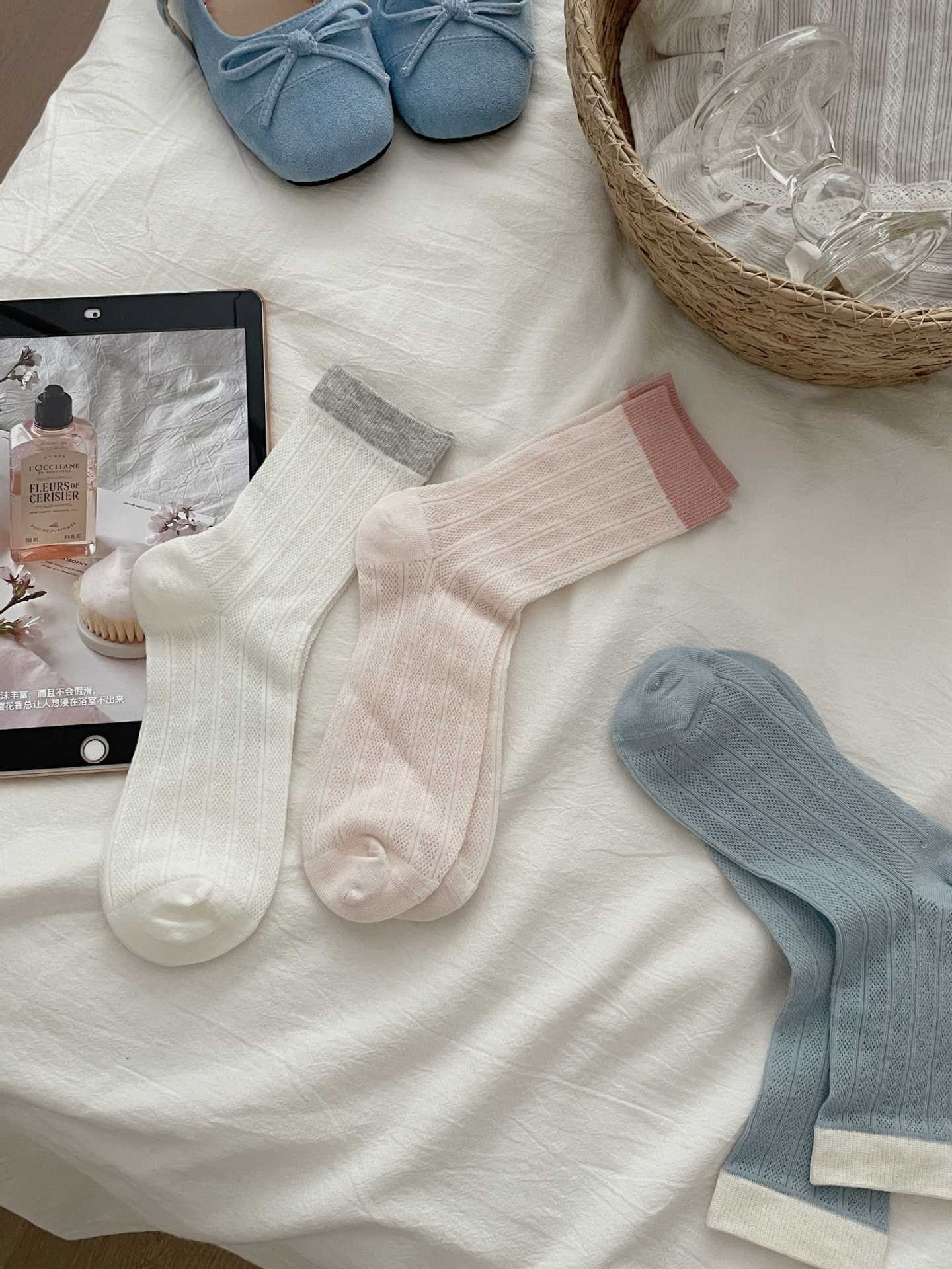 뼈없는 양말 어린이 한국 스타일 색상 매칭 미드 스타킹 양말 봄과 여름 얇은 중공 스타킹 미드 스타킹 쌓은면 양말스토어 가기