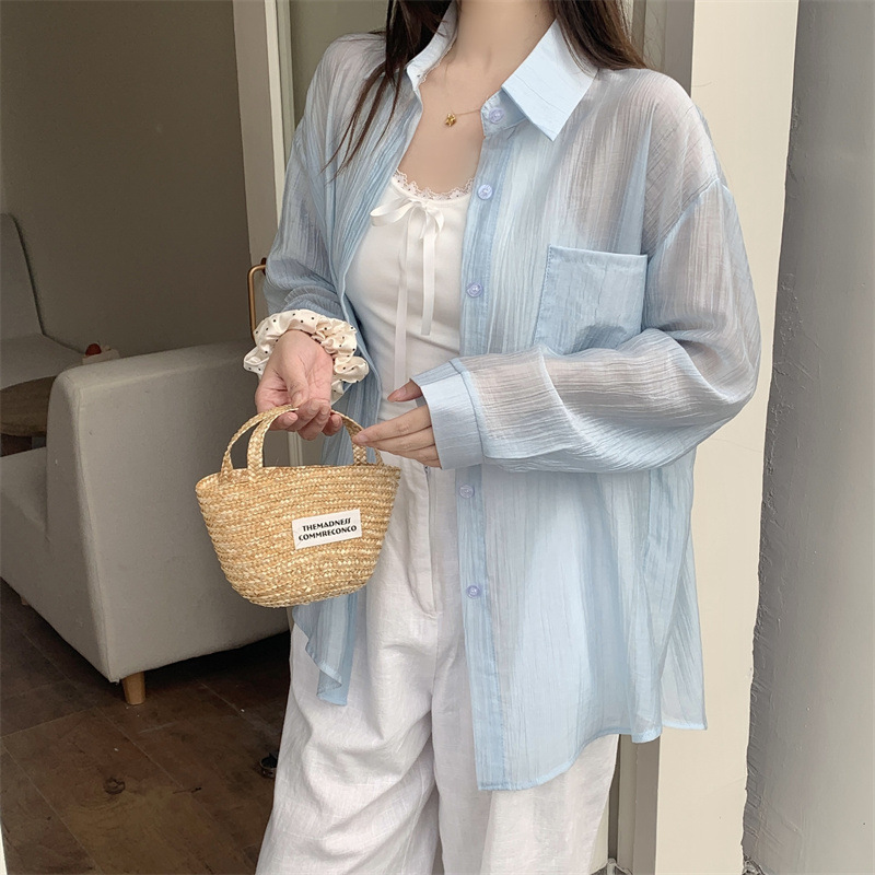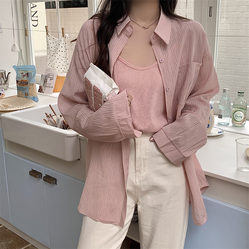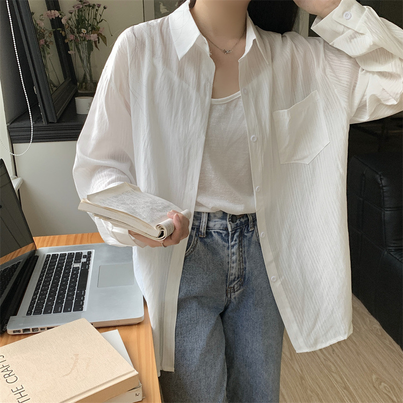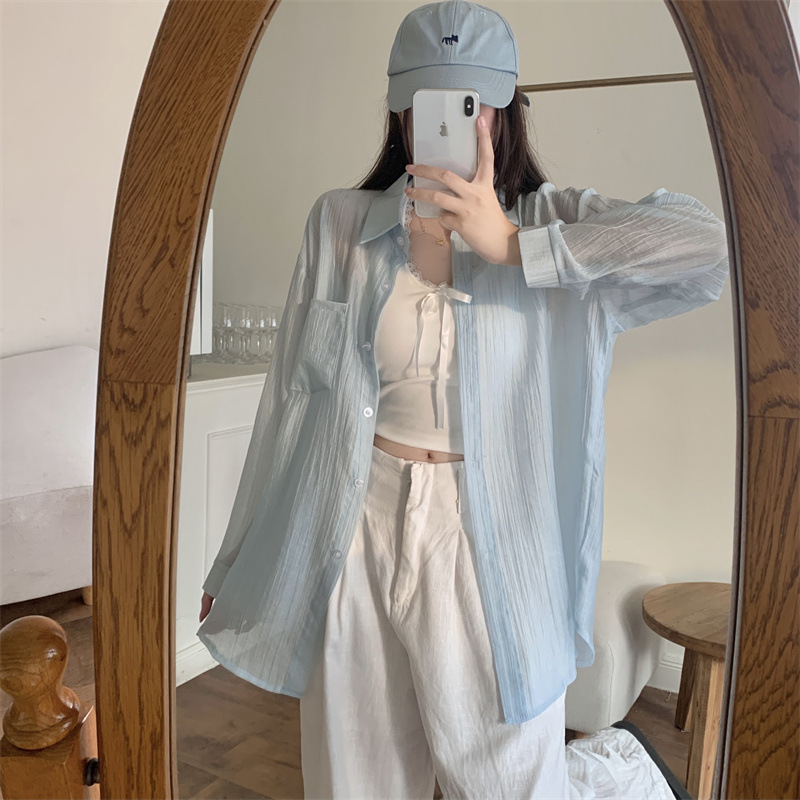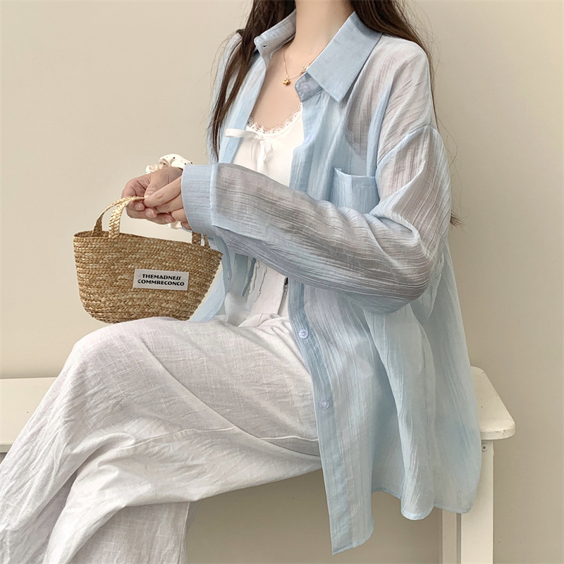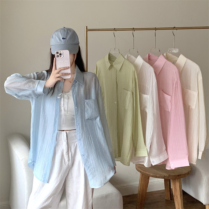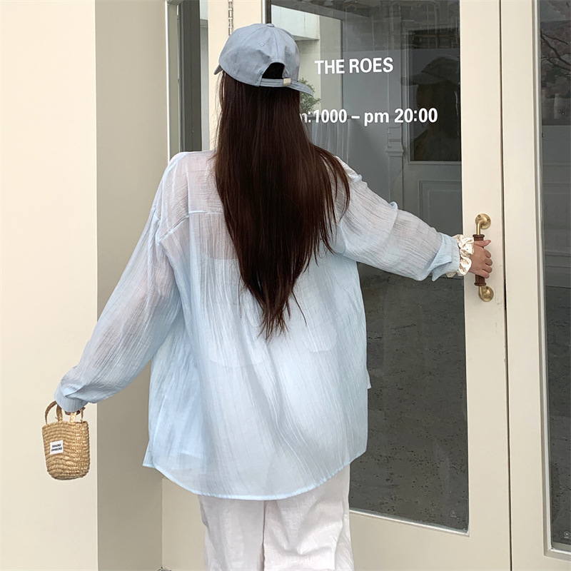 긴팔 카디건 새 셔츠 캐주얼 셔츠 얇은 여름 쉬폰 드레이프 선 스크린 여성의 올해 느슨한 새 셔츠스토어 가기