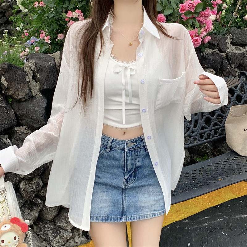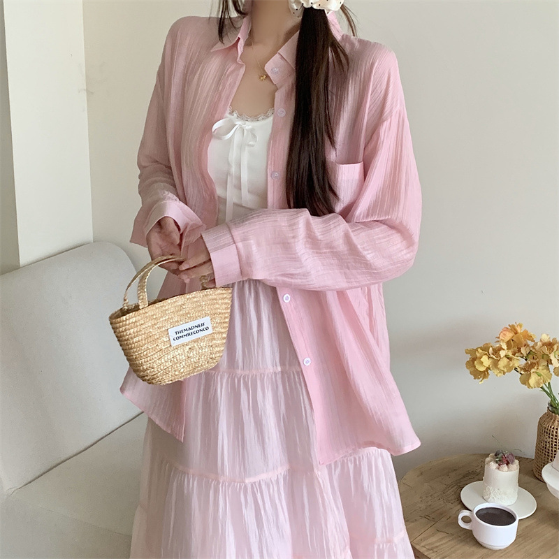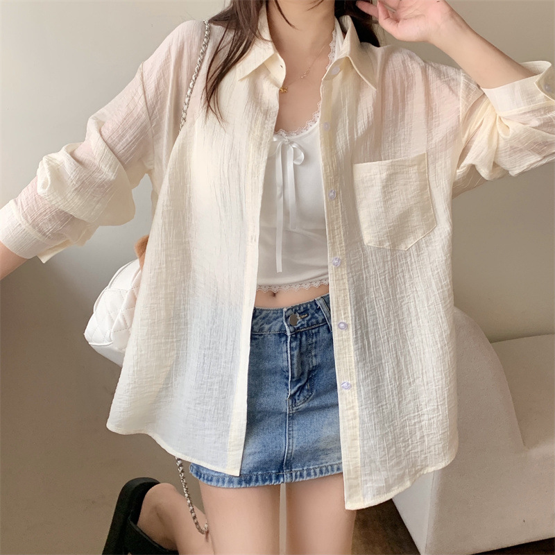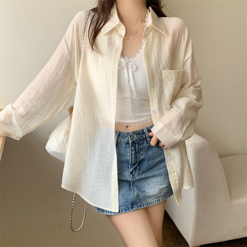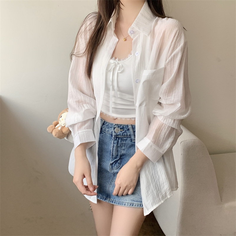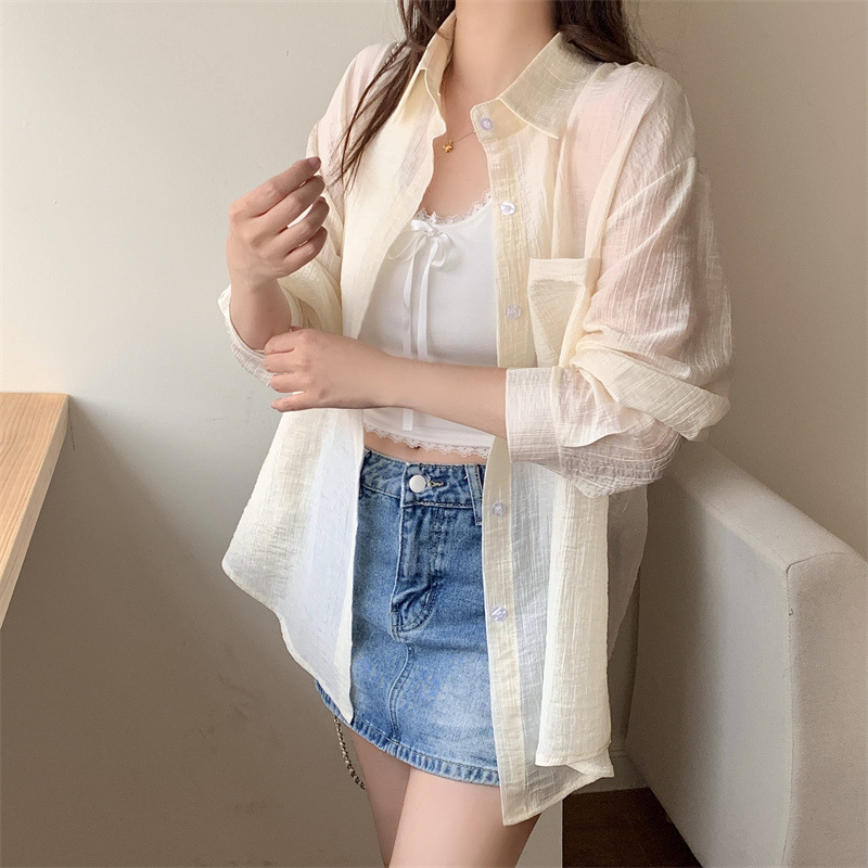 긴팔 카디건 새 셔츠 캐주얼 셔츠 얇은 여름 쉬폰 드레이프 선 스크린 여성의 올해 느슨한 새 셔츠스토어 가기