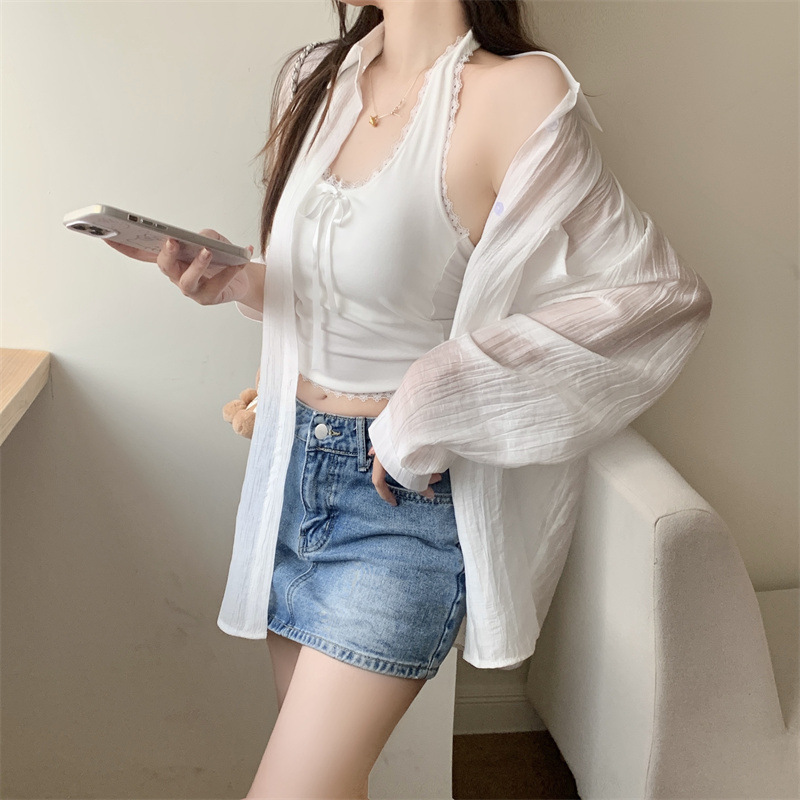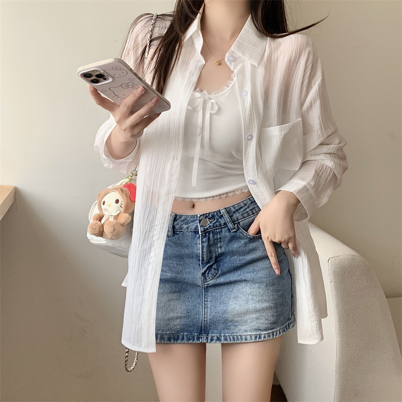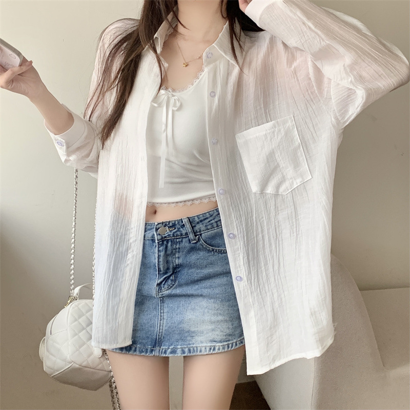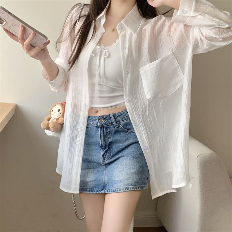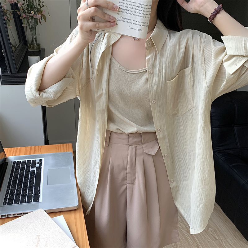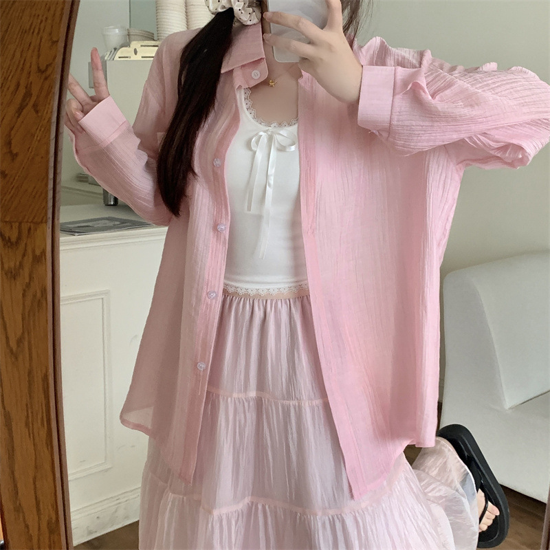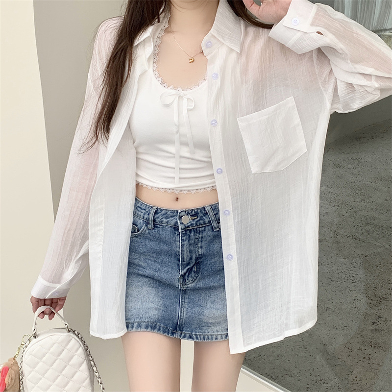 긴팔 카디건 새 셔츠 캐주얼 셔츠 얇은 여름 쉬폰 드레이프 선 스크린 여성의 올해 느슨한 새 셔츠스토어 가기