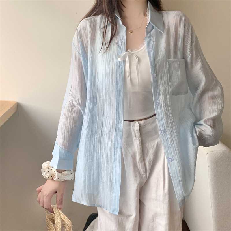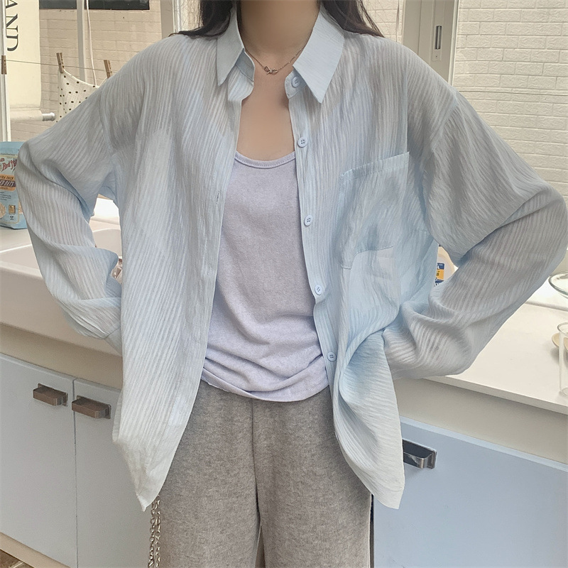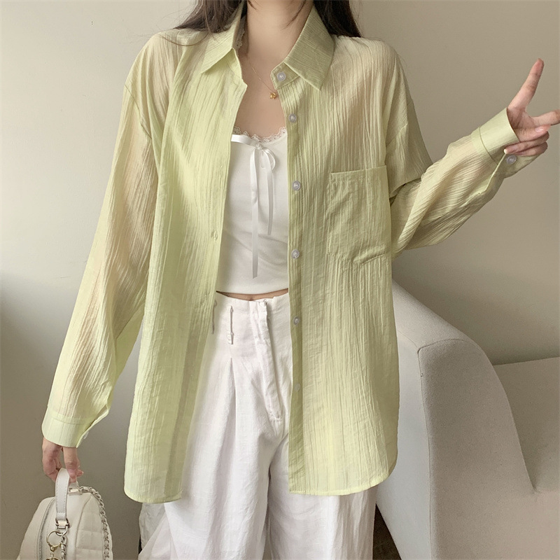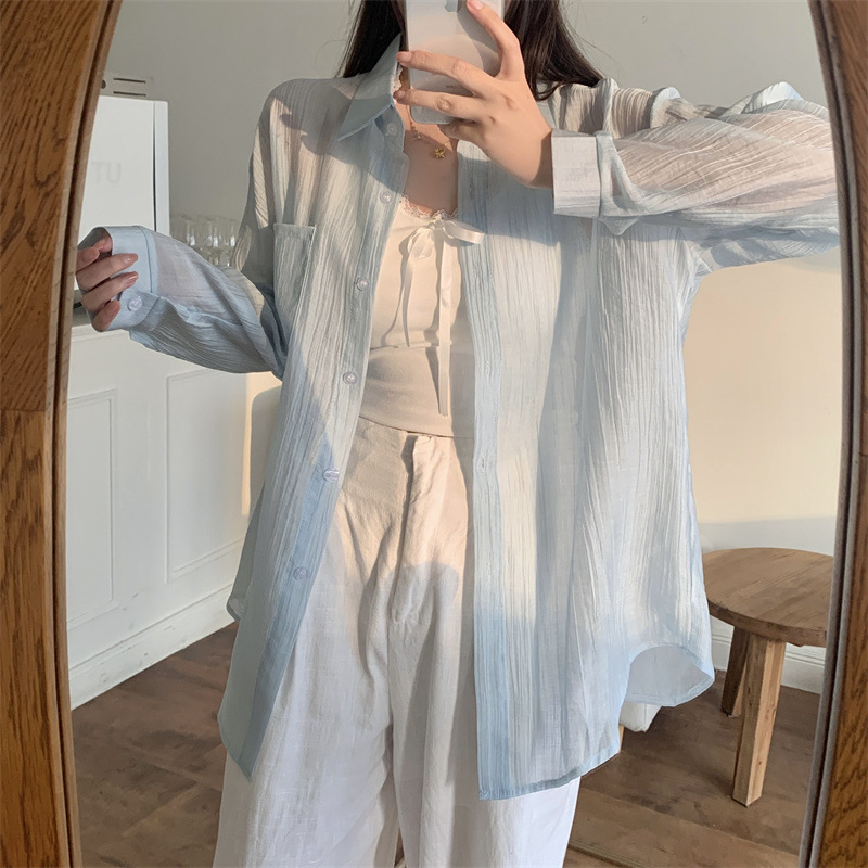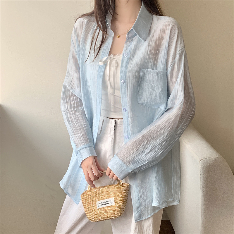 긴팔 카디건 새 셔츠 캐주얼 셔츠 얇은 여름 쉬폰 드레이프 선 스크린 여성의 올해 느슨한 새 셔츠