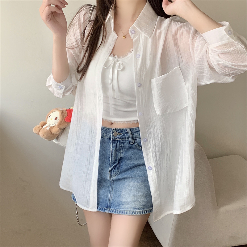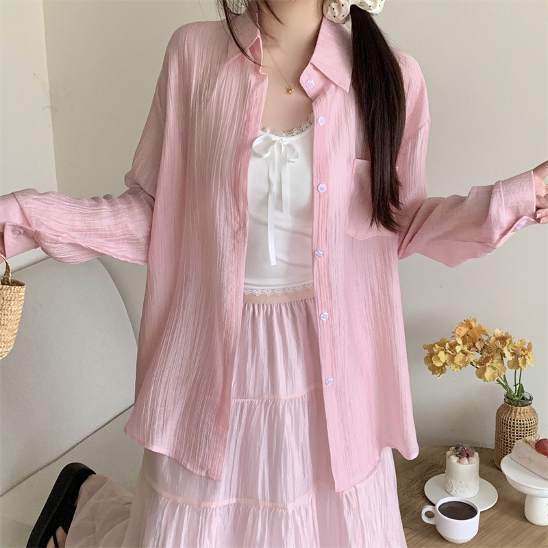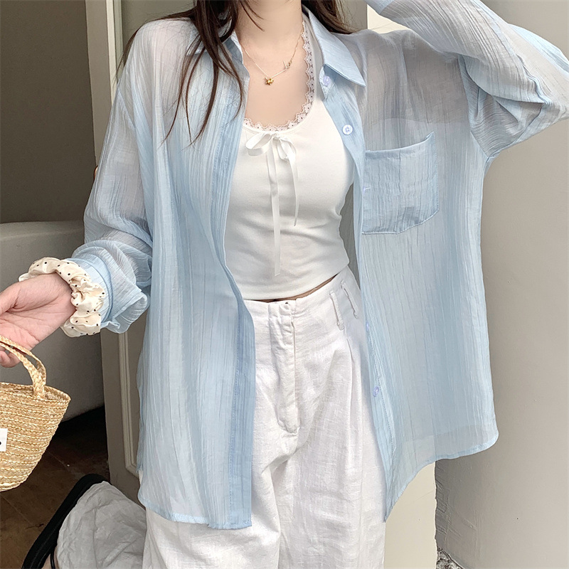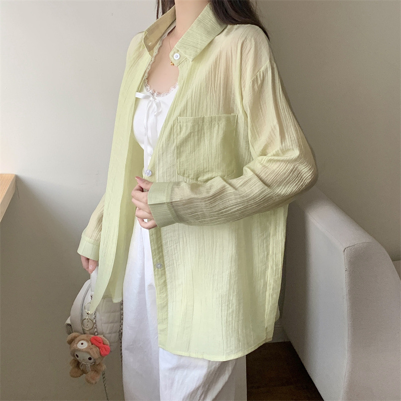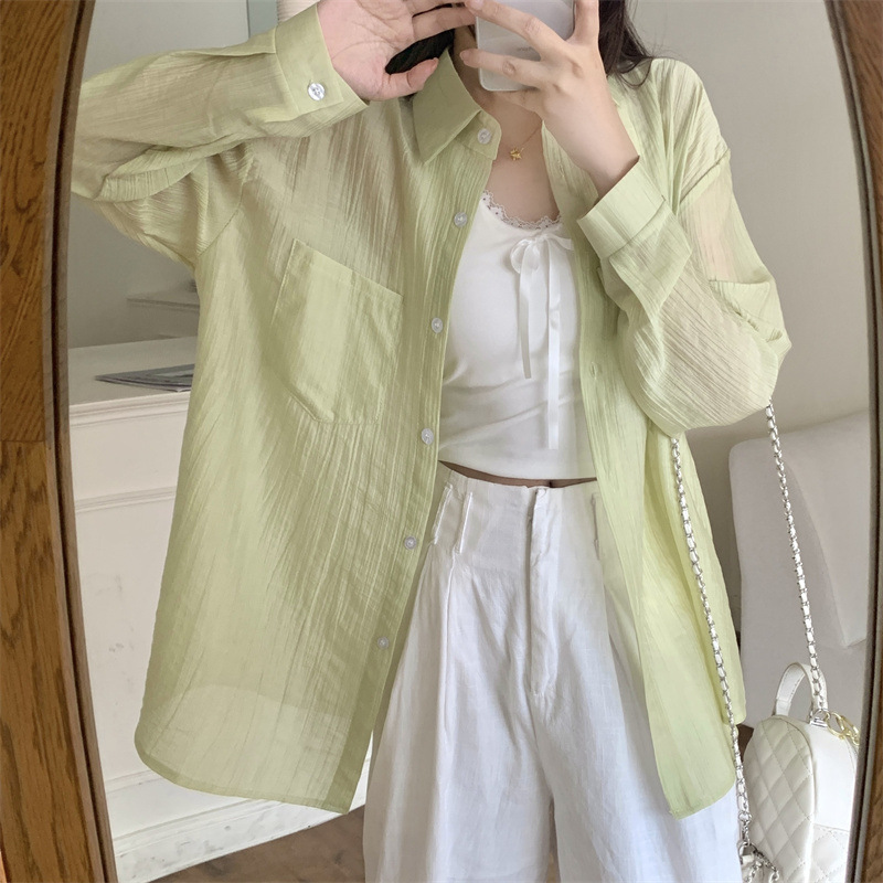 긴팔 카디건 새 셔츠 캐주얼 셔츠 얇은 여름 쉬폰 드레이프 선 스크린 여성의 올해 느슨한 새 셔츠