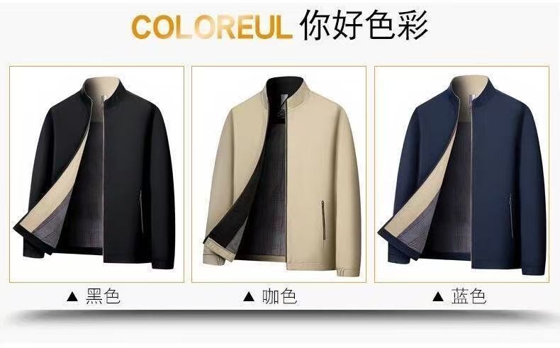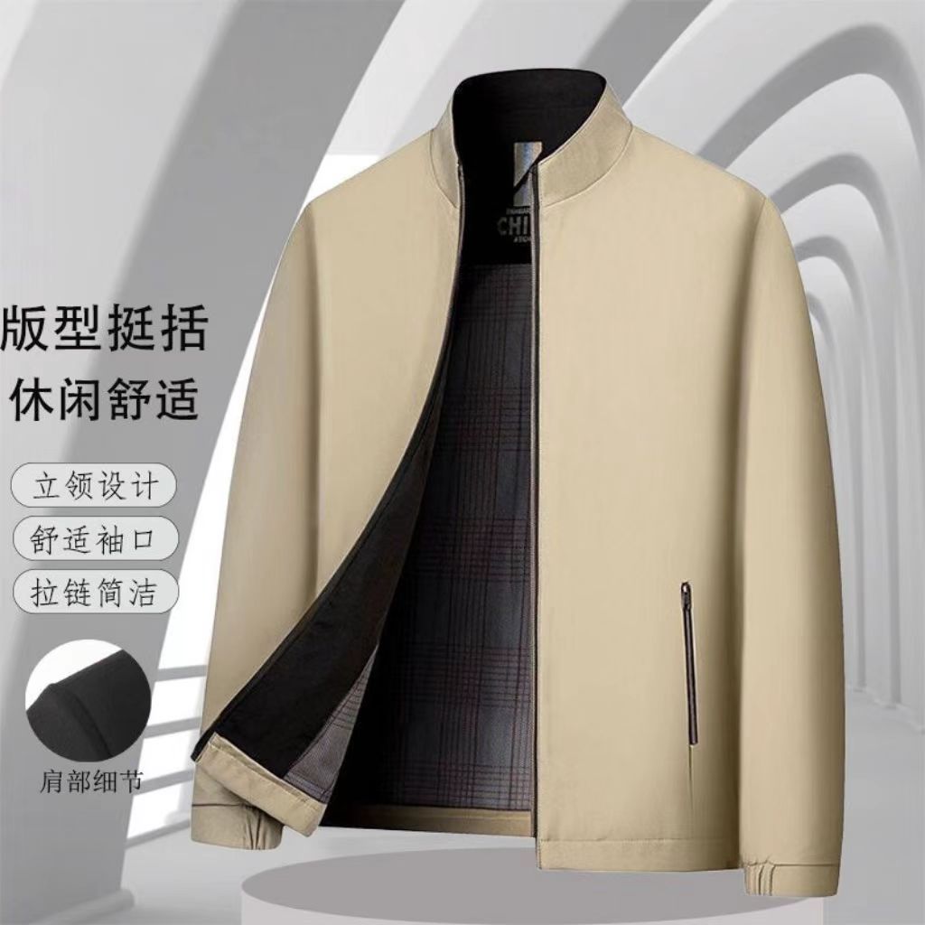 봄가을 아빠 재킷 중년 노년 남성 비즈니스 캐주얼 스탠드 칼라 재킷 방풍형 2025 슬림핏 스탠드 칼라