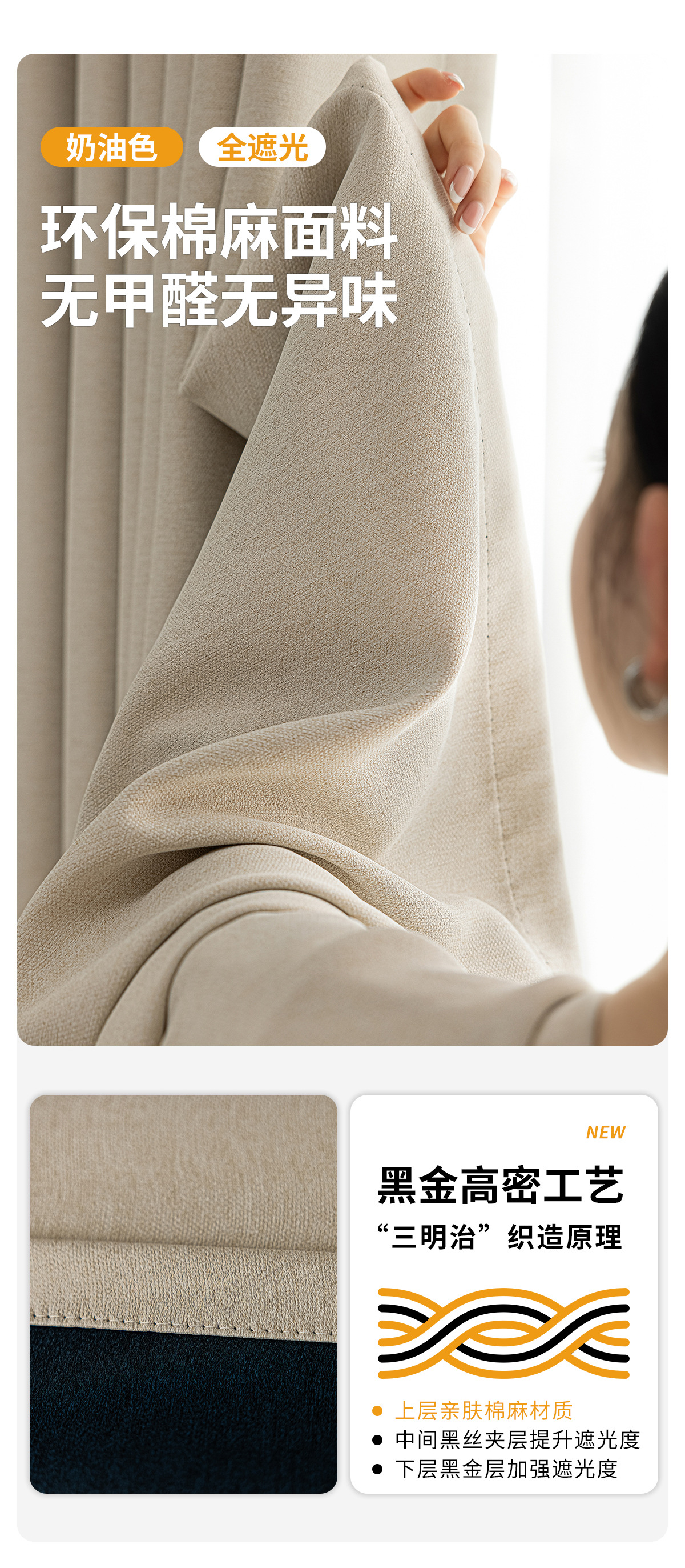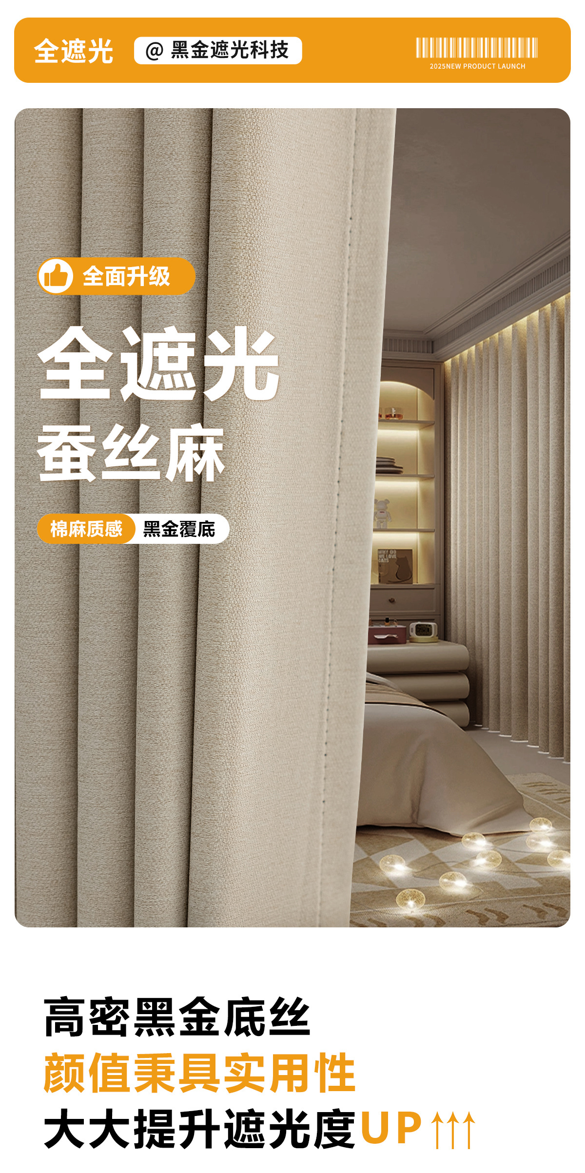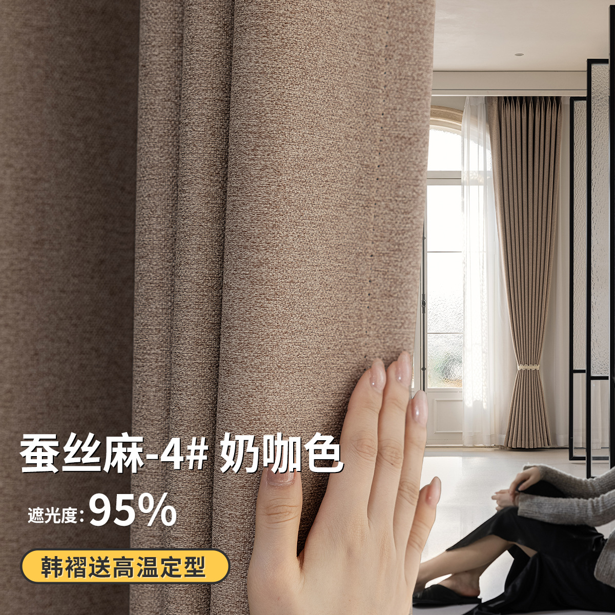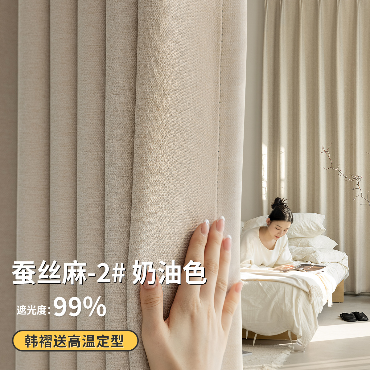 커튼 완전 차광 2025 새로운 실크 및 린넨 하이 엔드 프렌치 크림 스타일 거실 침실 단열 차양 커튼스토어 가기