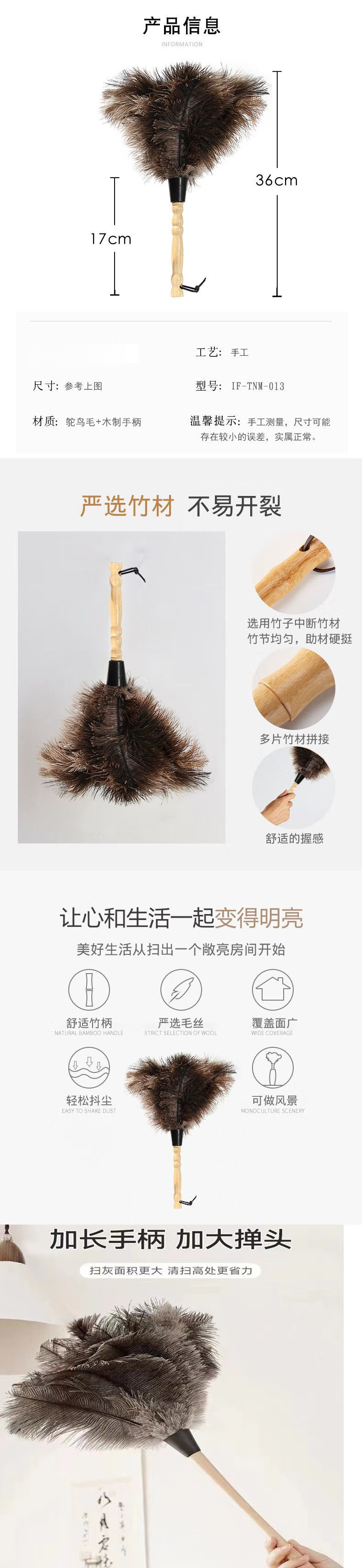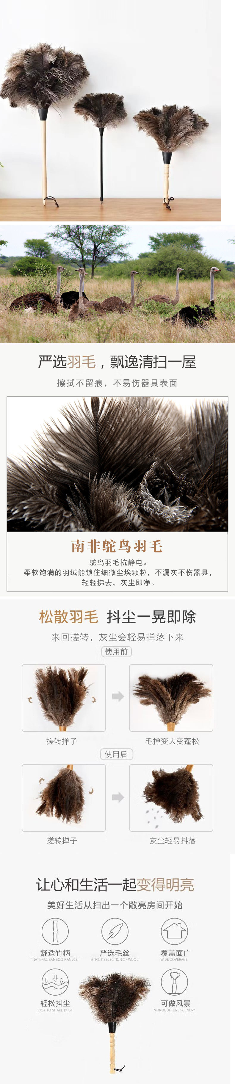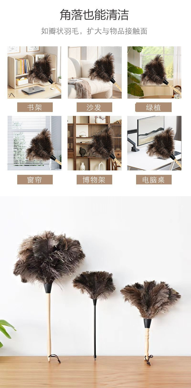 가정용 먼지 제거용 고품질 타조 먼지떨이, 정전기 방지 청소 및 청소용 두꺼운 청소 도구스토어 가기