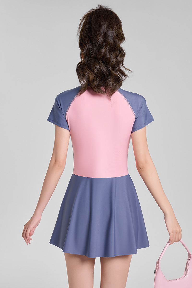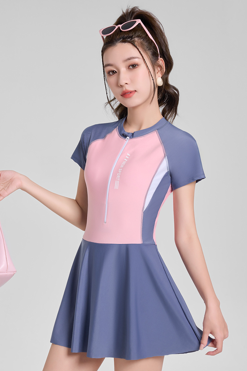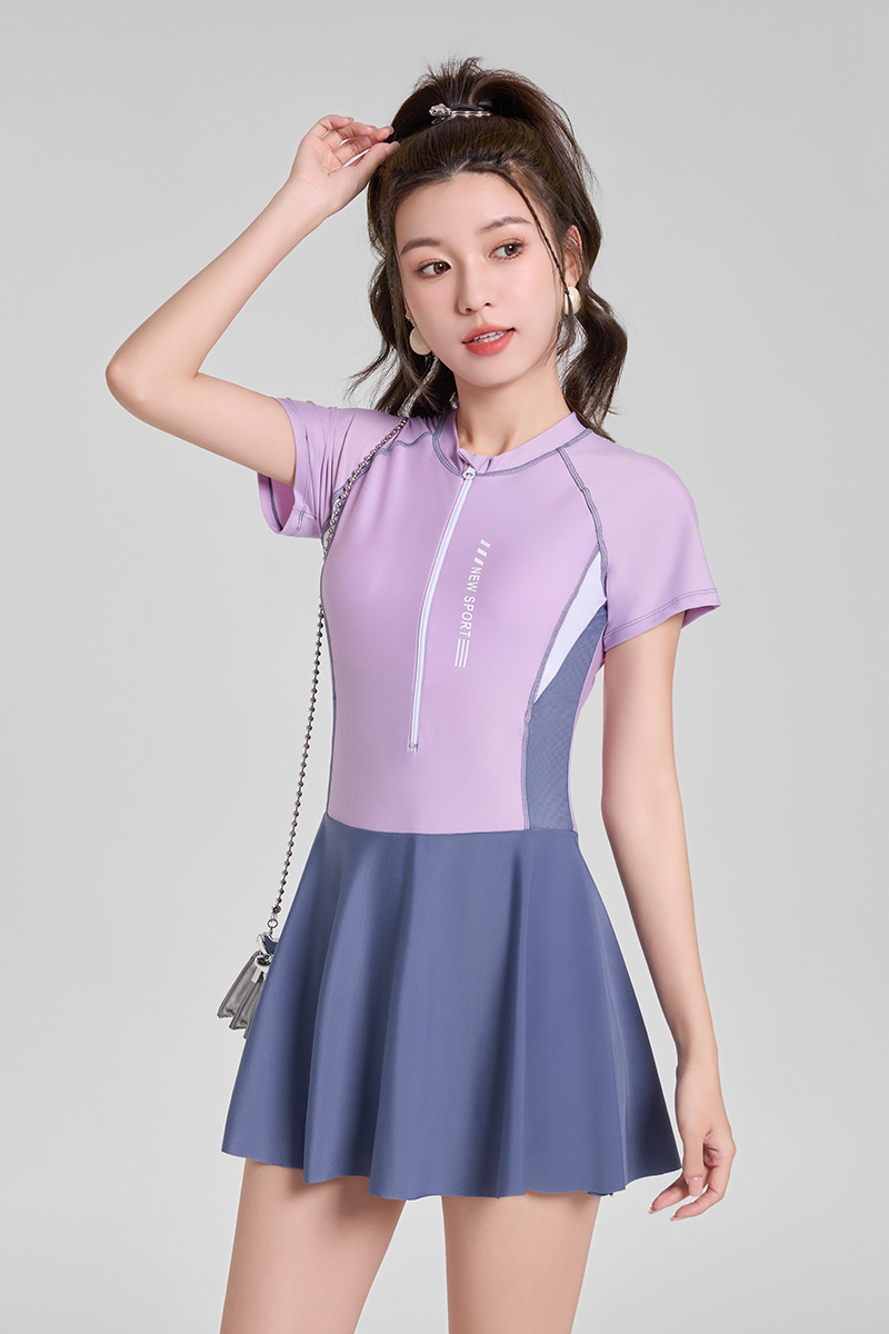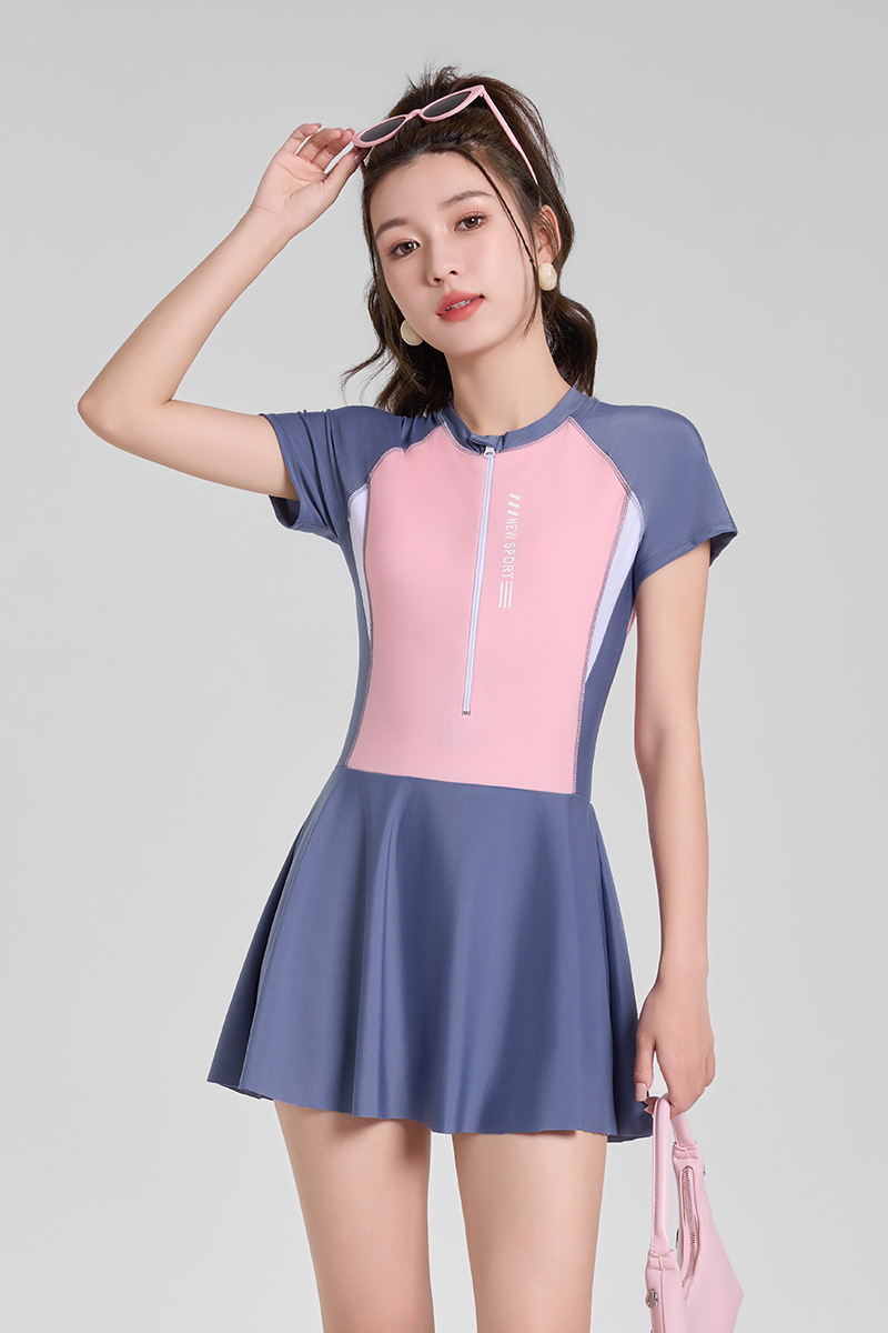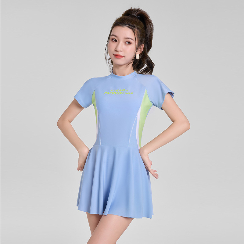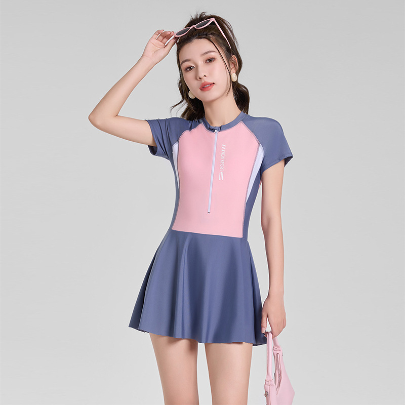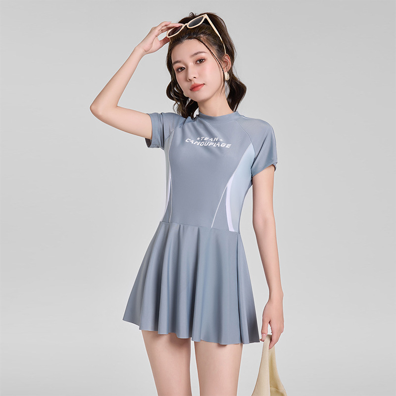 수영복 여성 스포츠 보수적 인 배 커버 슬리밍 원피스 스커트 수영복 2025 컬러 매칭 온천 수영복 도매