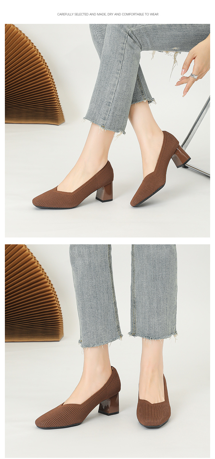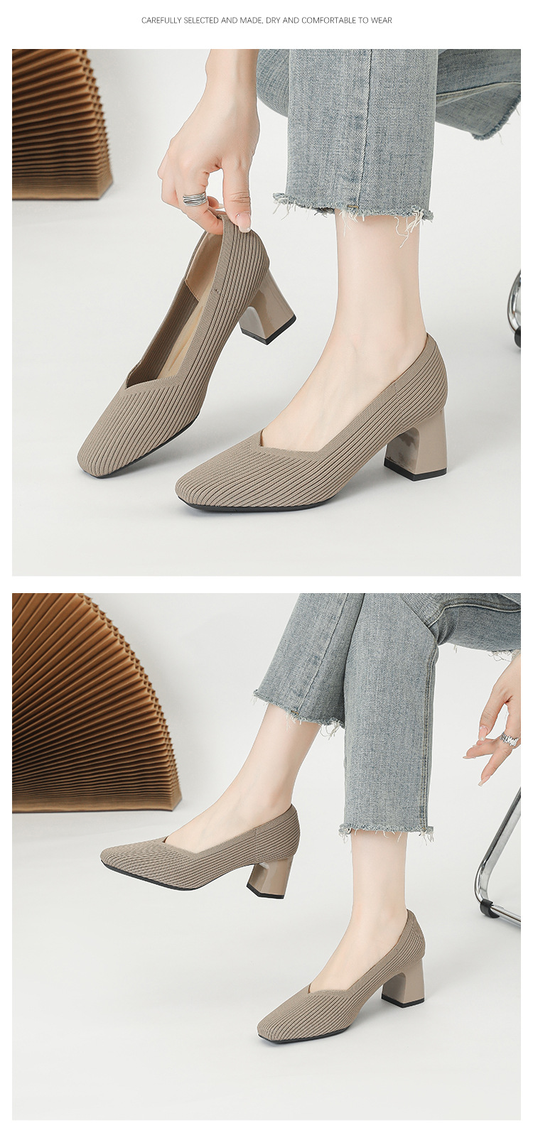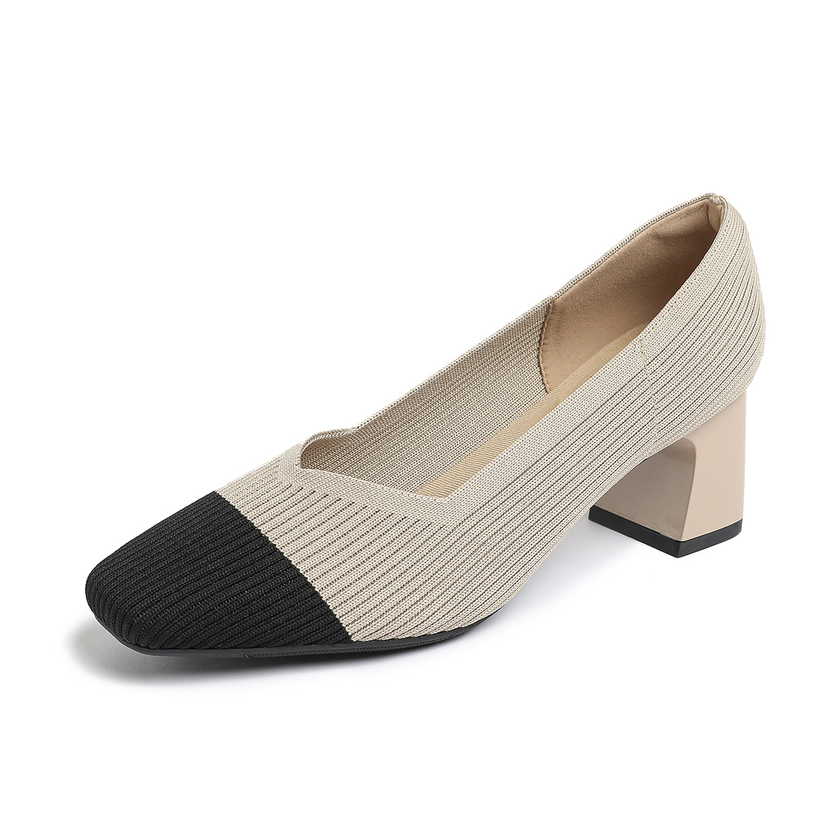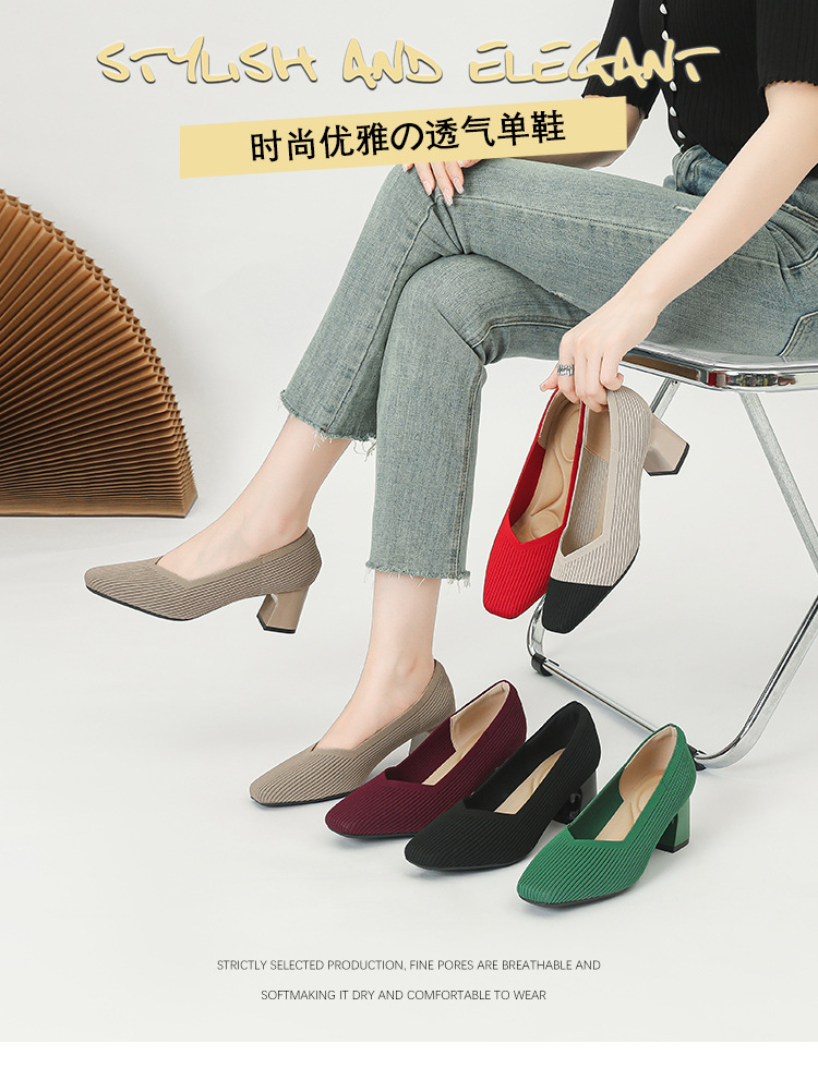 일본풍 공주풍 여성용 단화, 스퀘어토 굽 높은 통기성 좋은 신발, 편안하고 다재다능한 통근용 하이힐