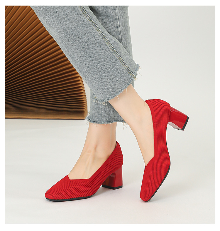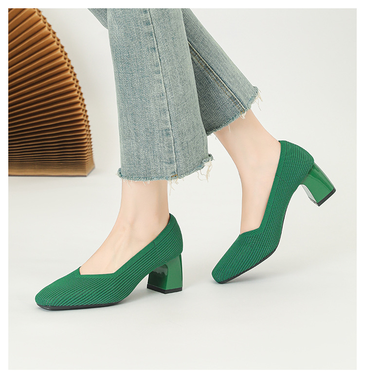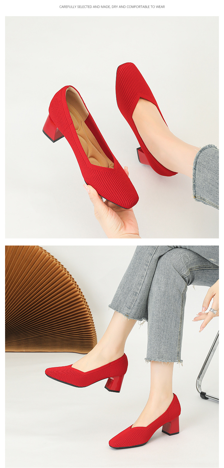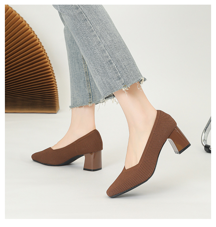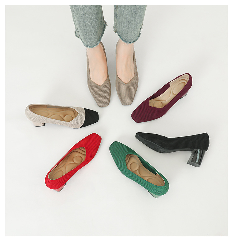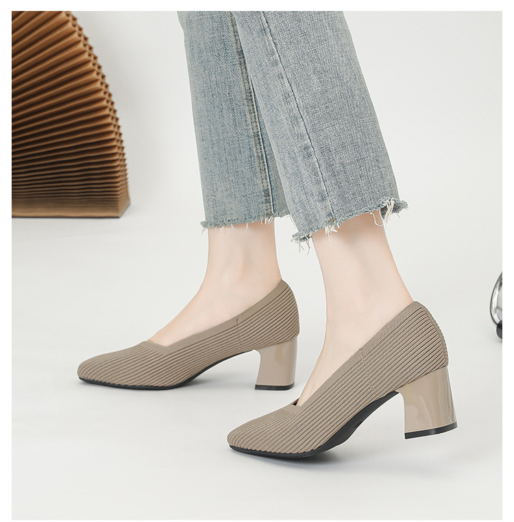 일본풍 공주풍 여성용 단화, 스퀘어토 굽 높은 통기성 좋은 신발, 편안하고 다재다능한 통근용 하이힐