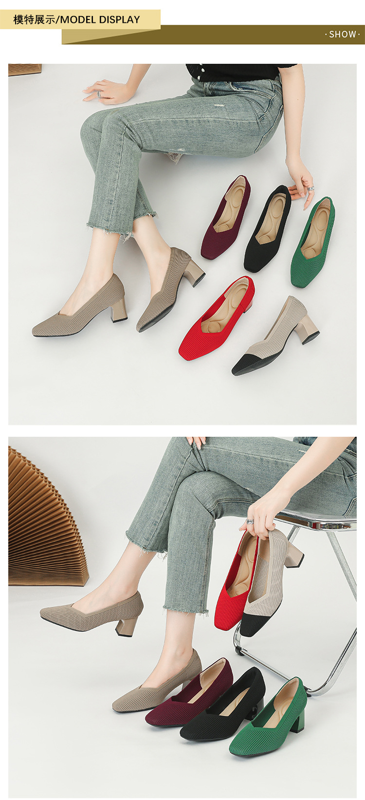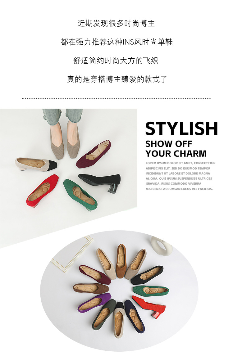 일본풍 공주풍 여성용 단화, 스퀘어토 굽 높은 통기성 좋은 신발, 편안하고 다재다능한 통근용 하이힐스토어 가기