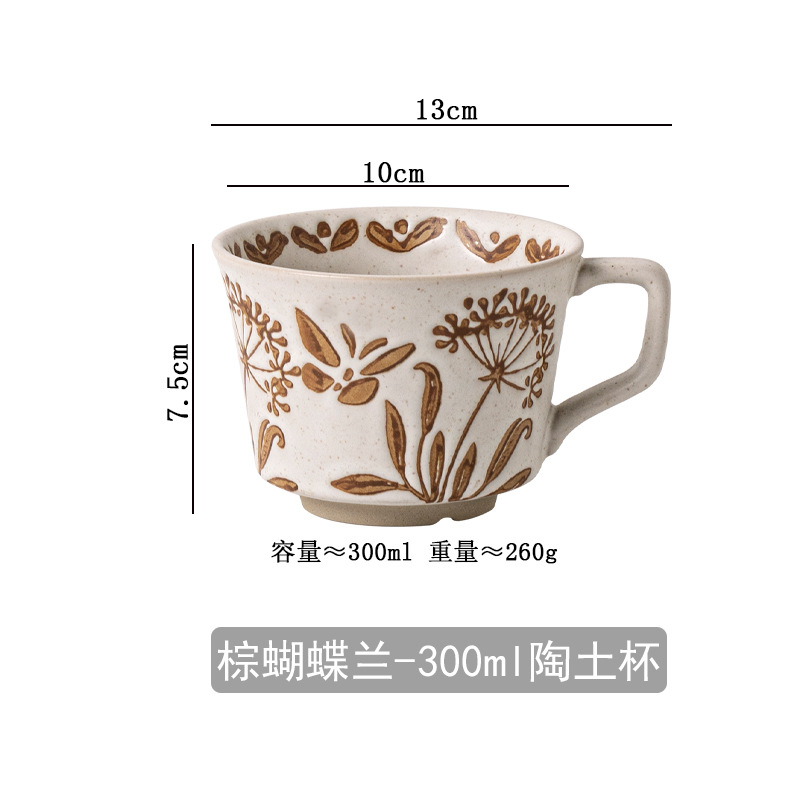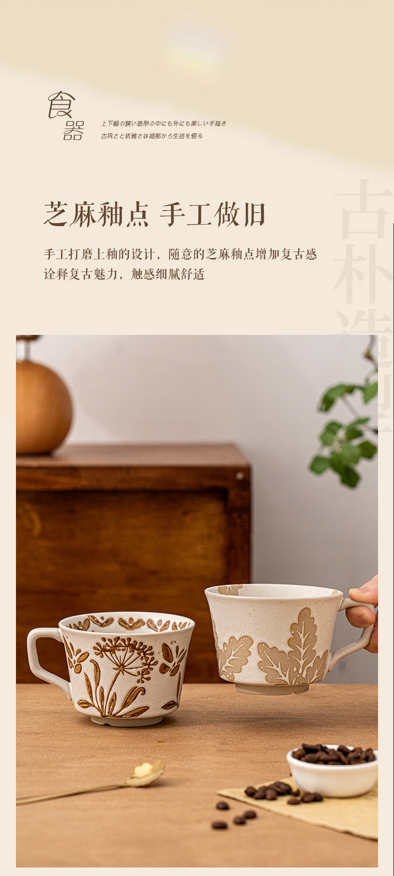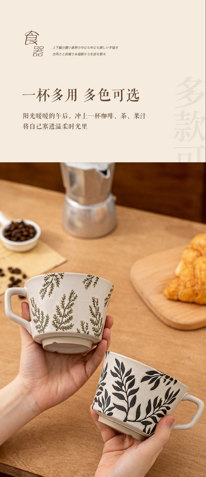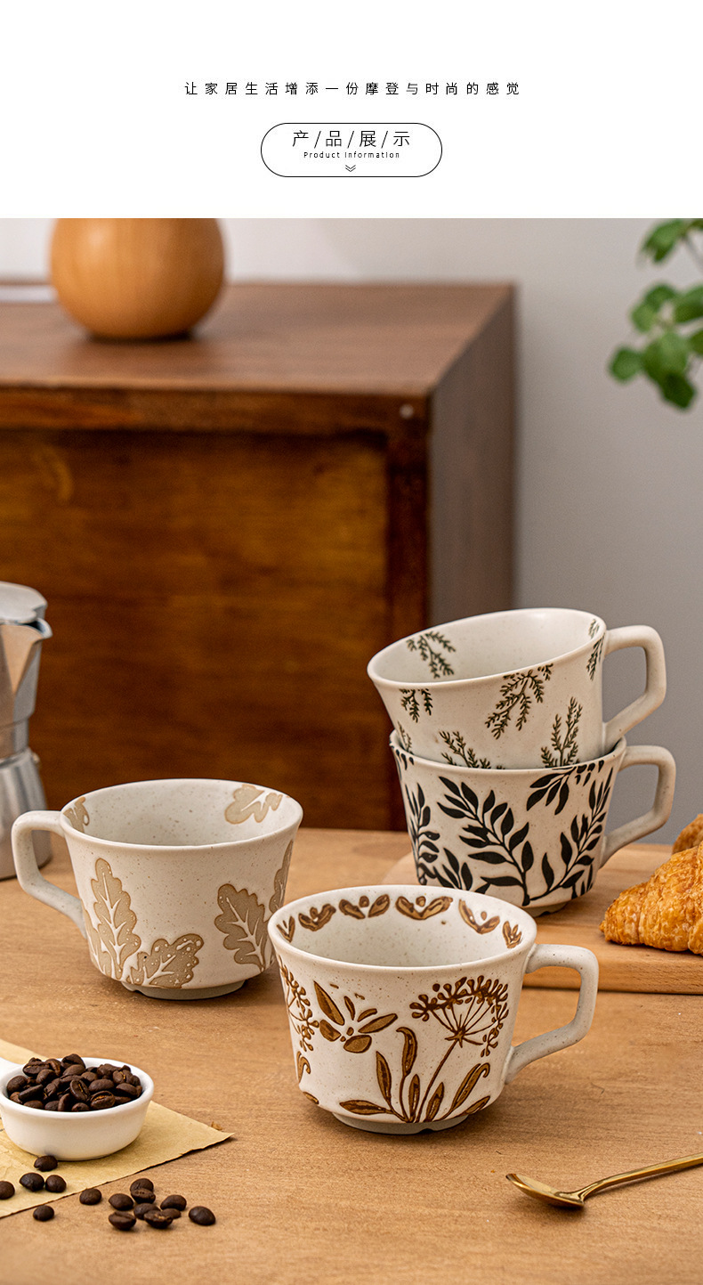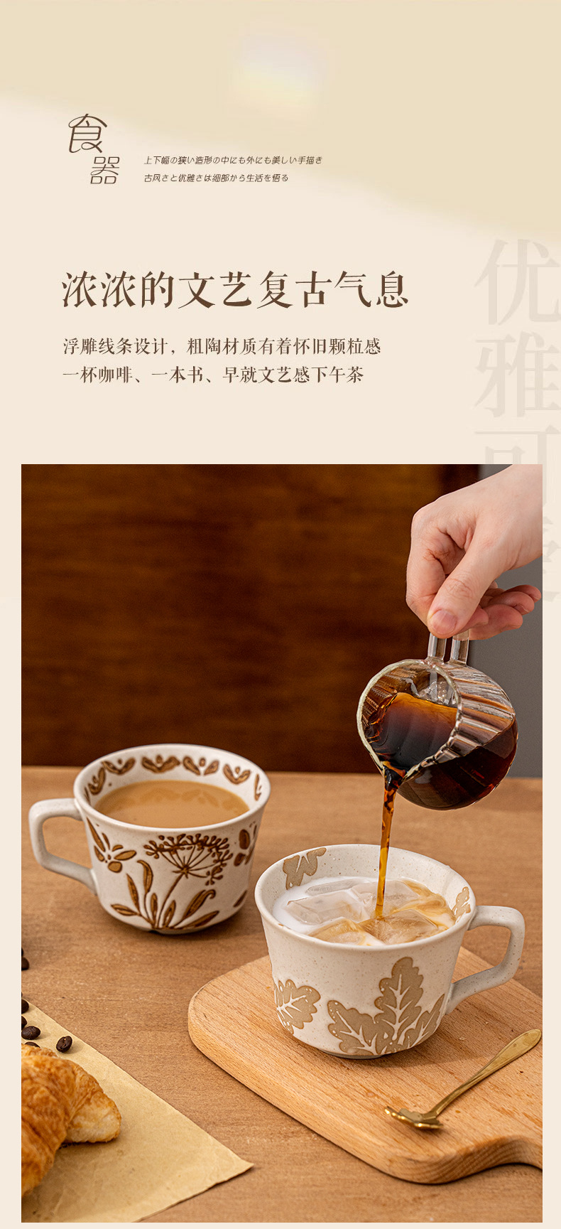 손으로 그린 거친 도자기 커피 컵, 복고풍 세라믹 머그잔, 프랑스 꽃 양각, 맞춤형 유약 컬러 워터 컵, 아침 식사 컵스토어 가기